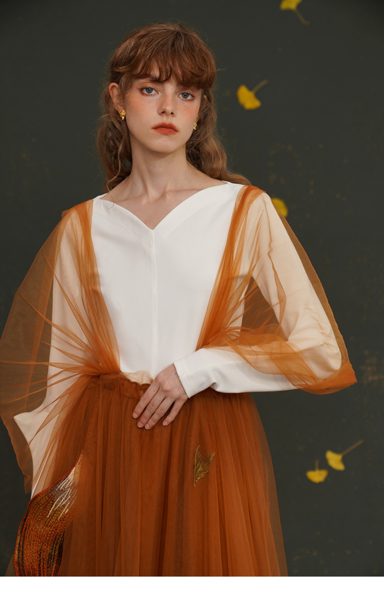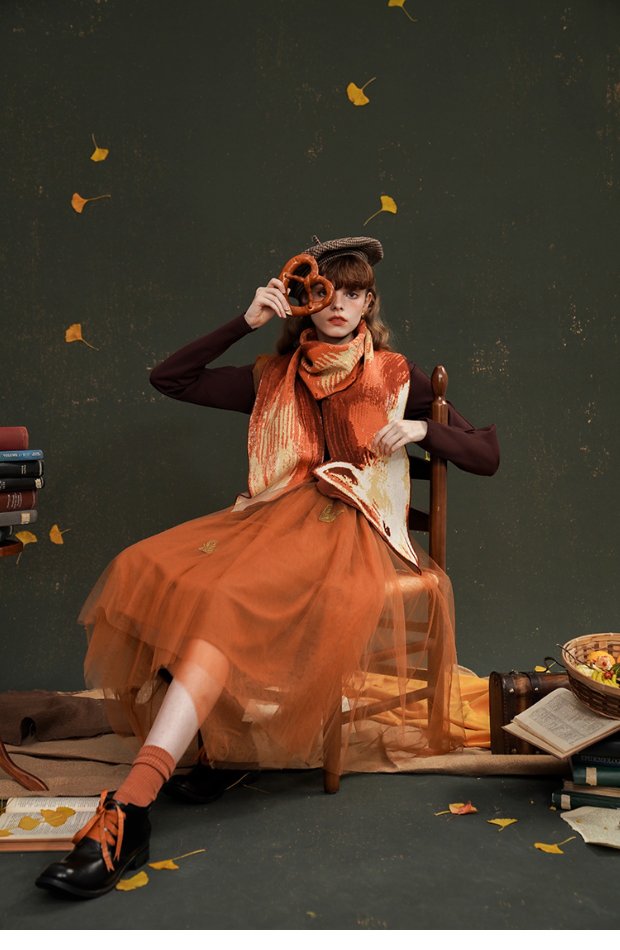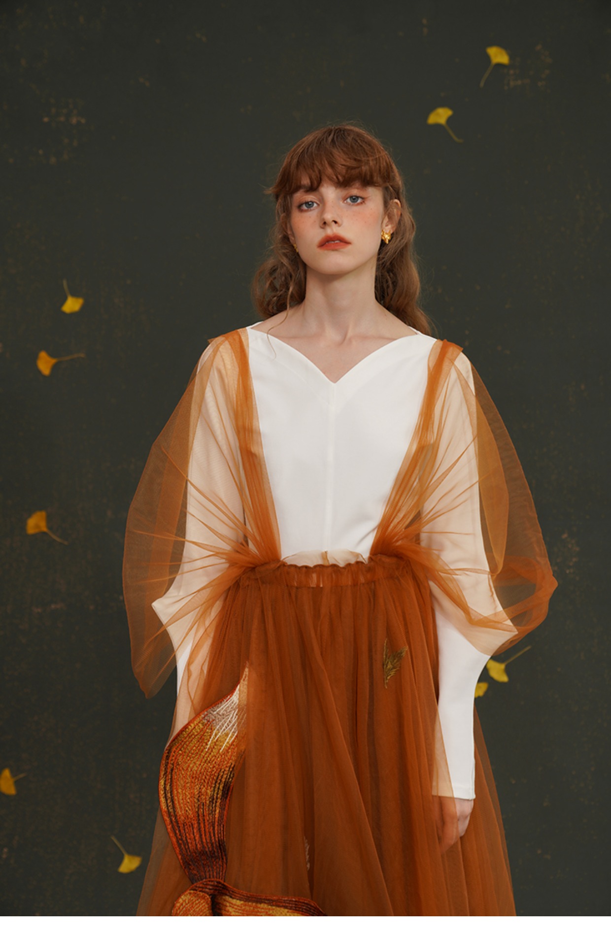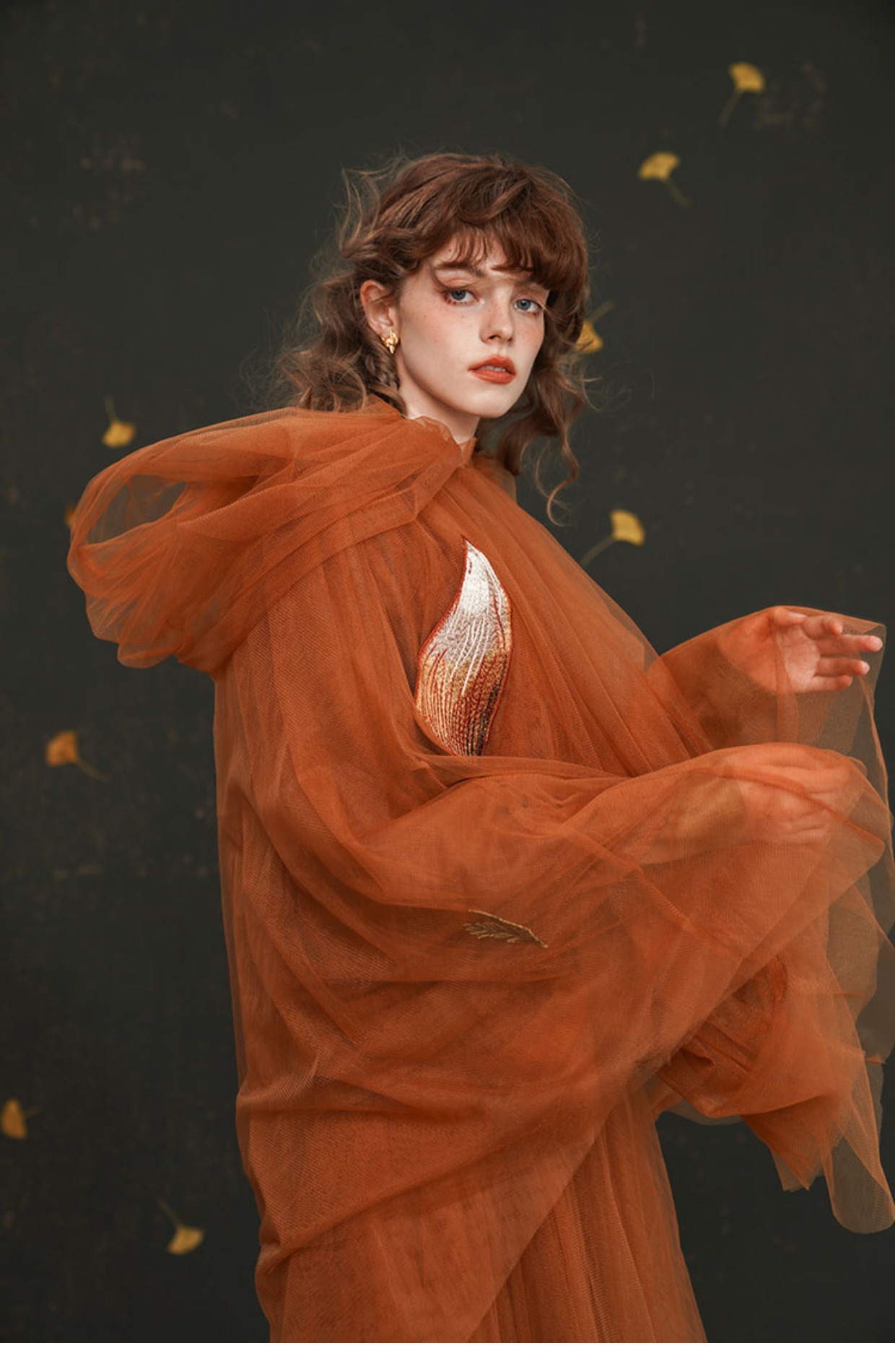 狐狸刺繡層層薄紗吊帶裙 B3374