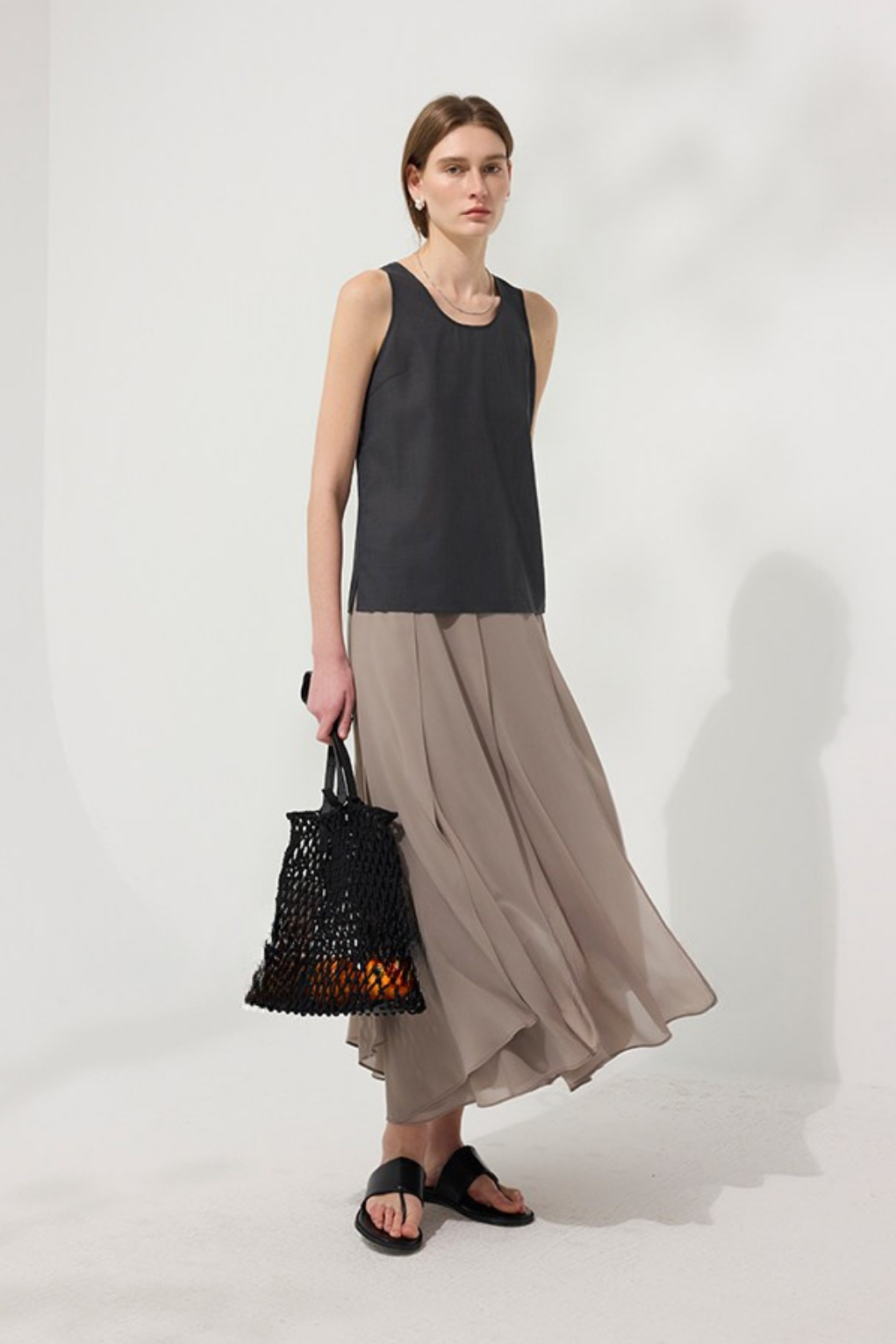 シフォンアシンメトリーミディスカート B4750