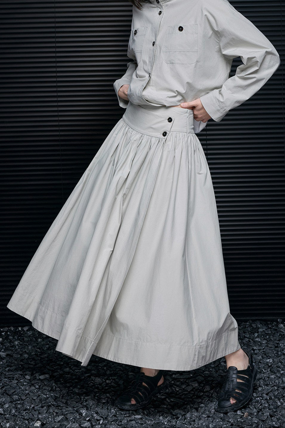 グレーイレギュラーウエストストレートワイドパンツ B4626