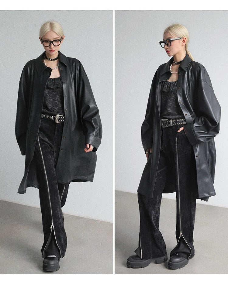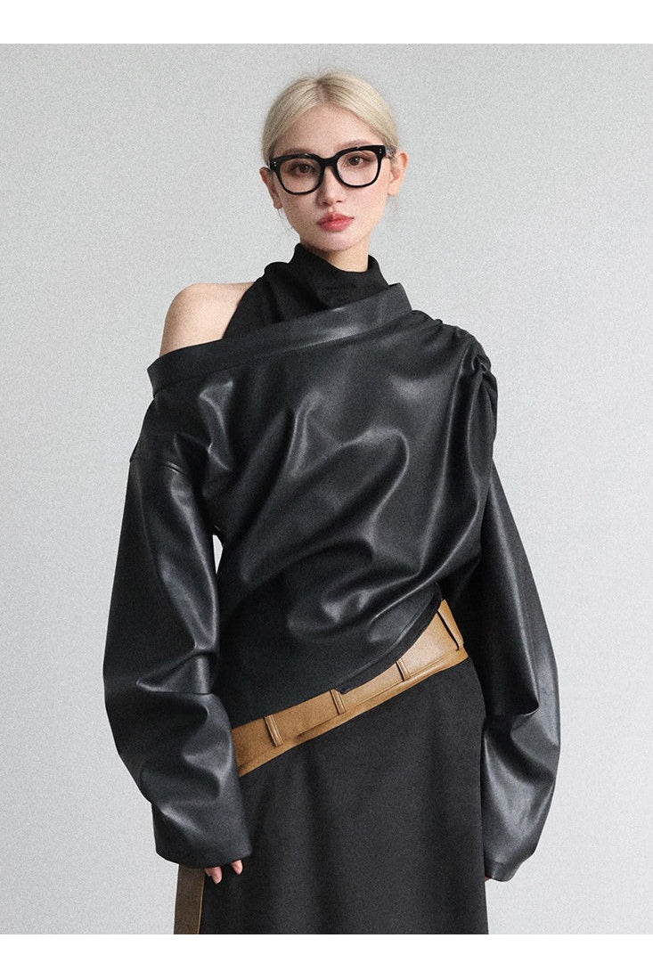 PUアシメトリー斜め襟カバーアップトップス B4647