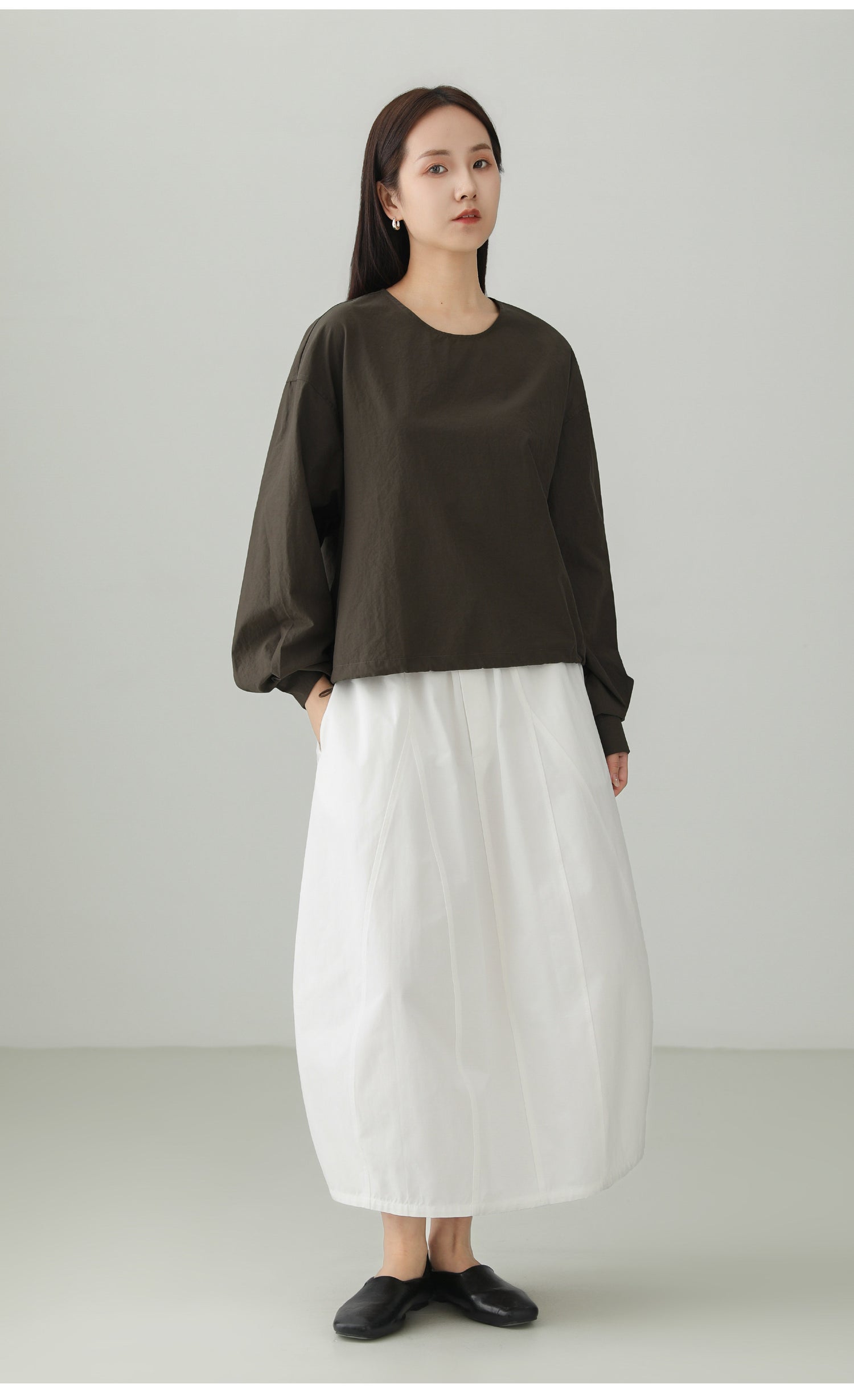 コットンストレッチミニマルルーズ長袖Tシャツ B4727