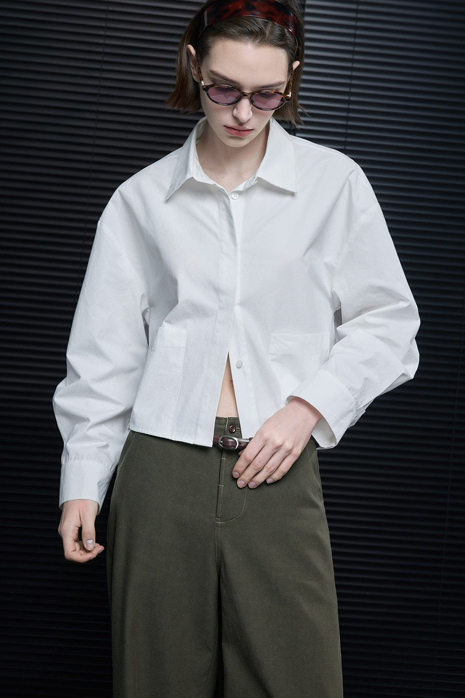 ホワイトコットンミニマリストショートシャツ B4674
