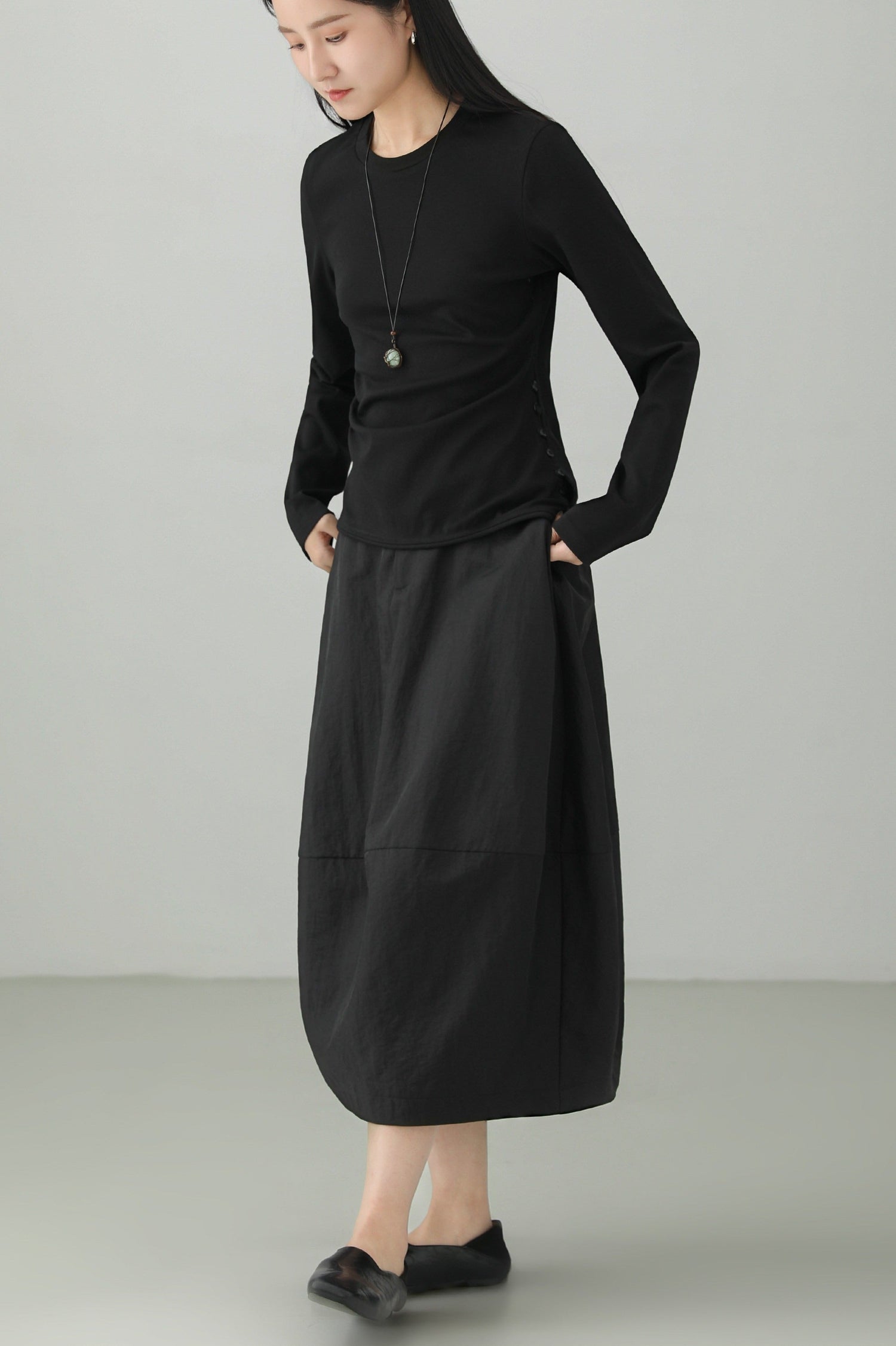 リヨセル混ハイネックロングドレス B4664