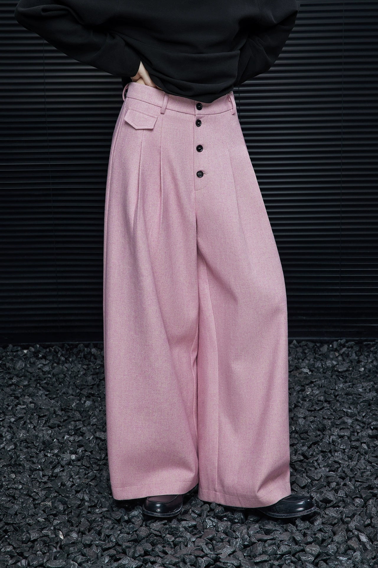 アシメトリー立体プリーツワイドパンツ B4316