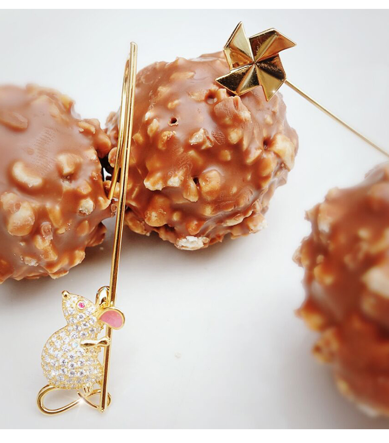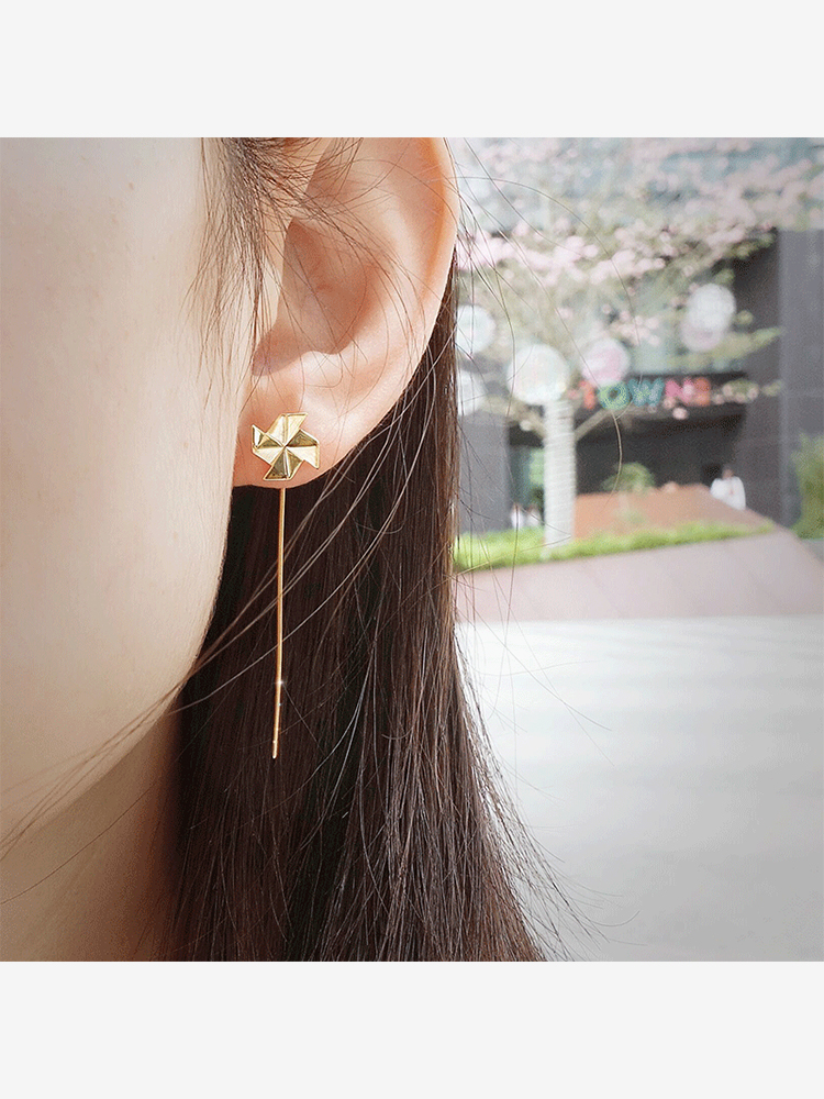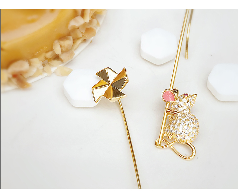 S925 Windmill Small Animal Asymmetrical Earrings B3232