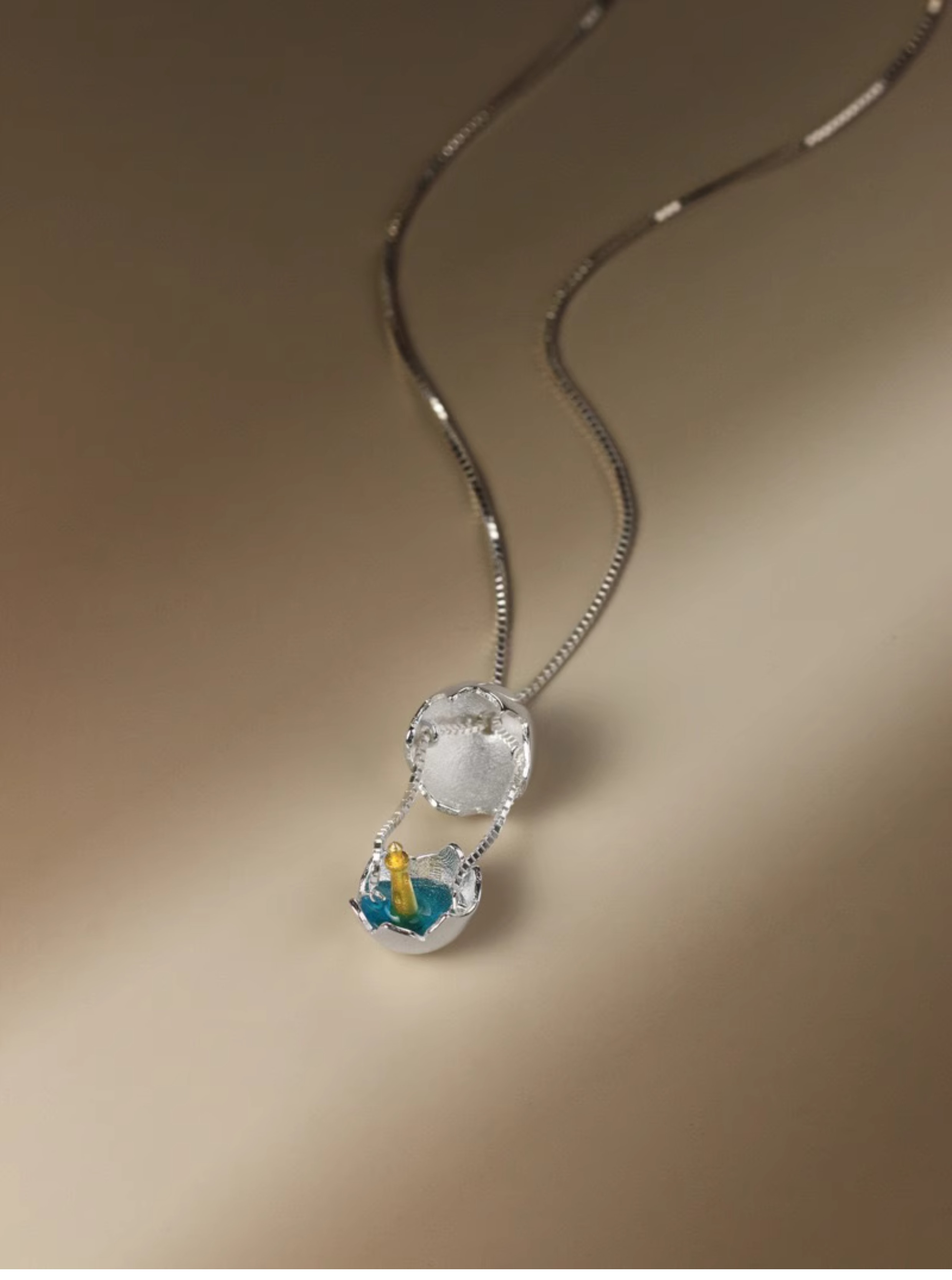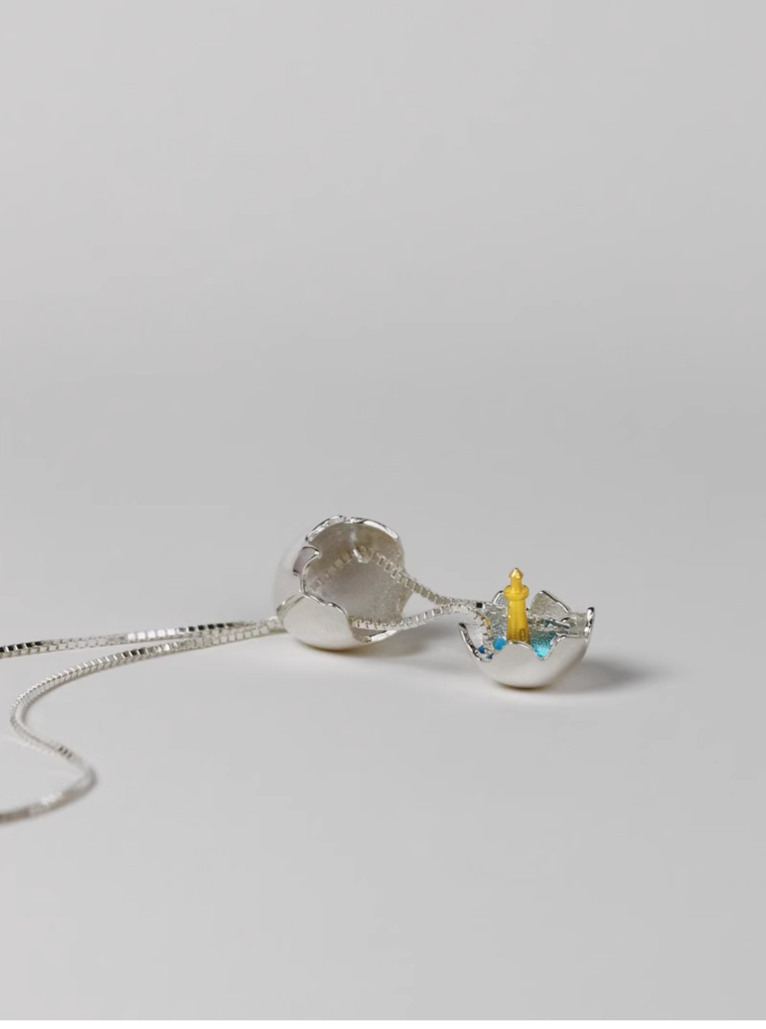 S925 Sea and Lighthouse Egg Pendant Necklace B3486