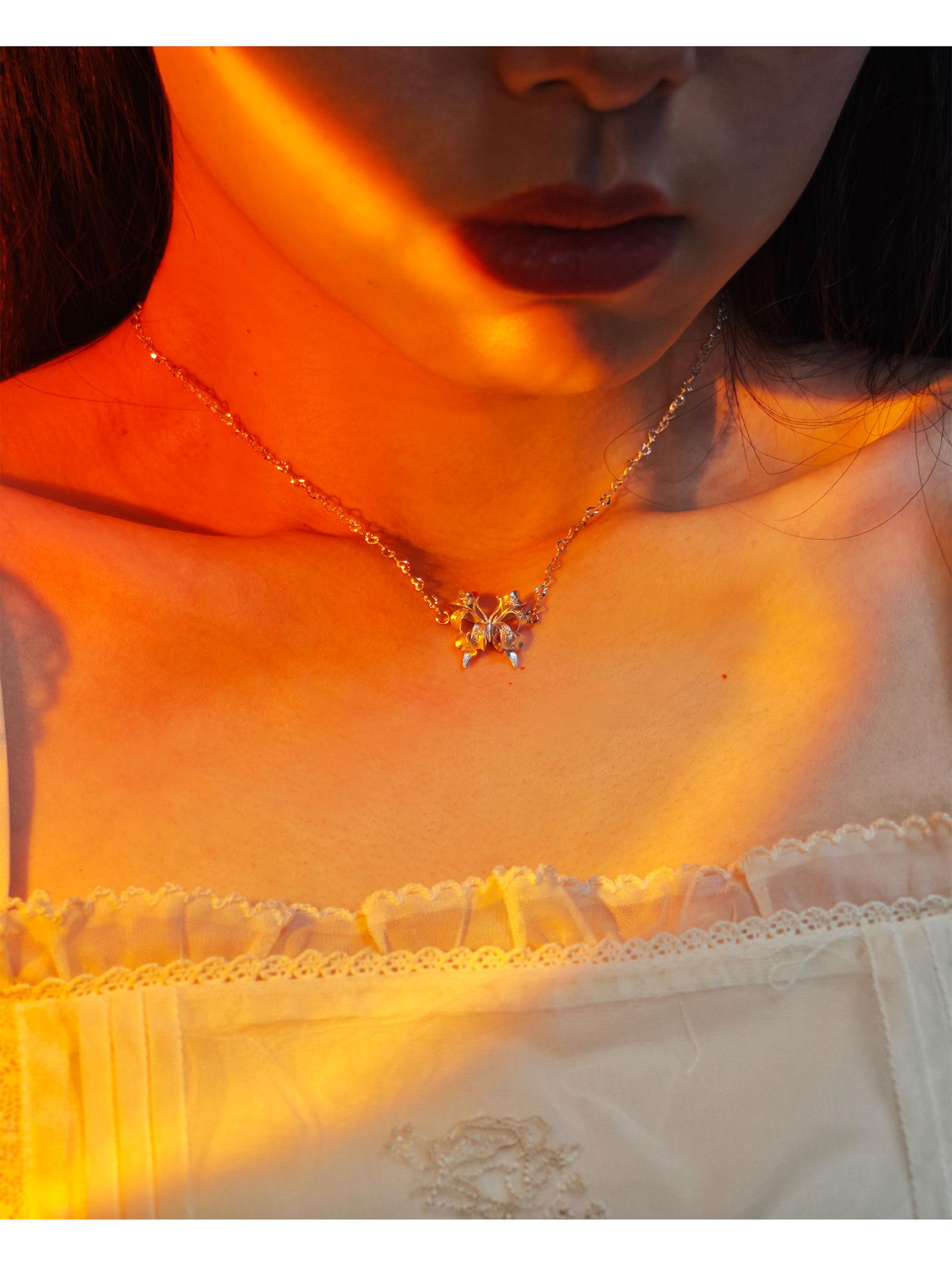 S925 Ribbon Butterfly Romantic Necklace B3840