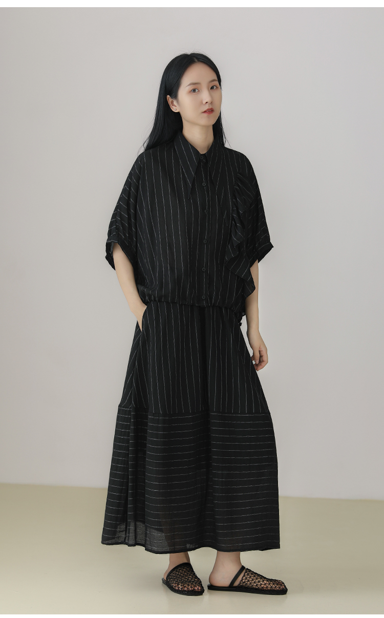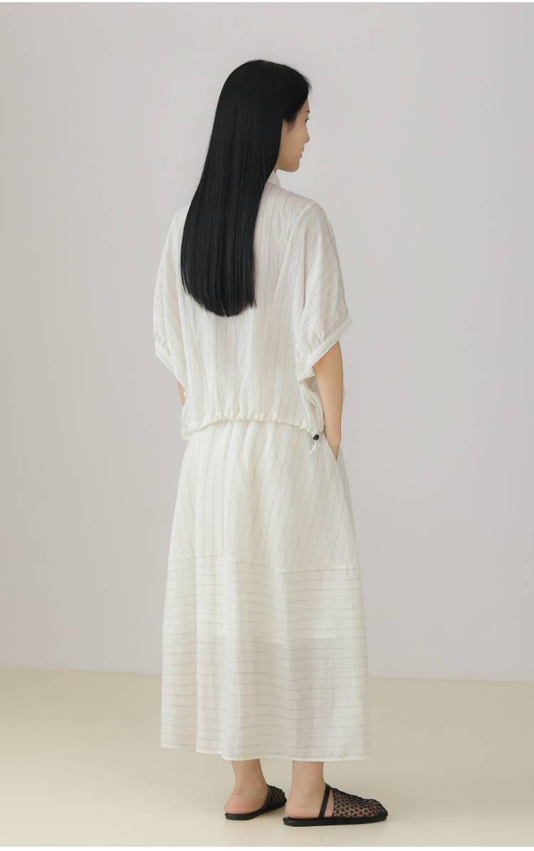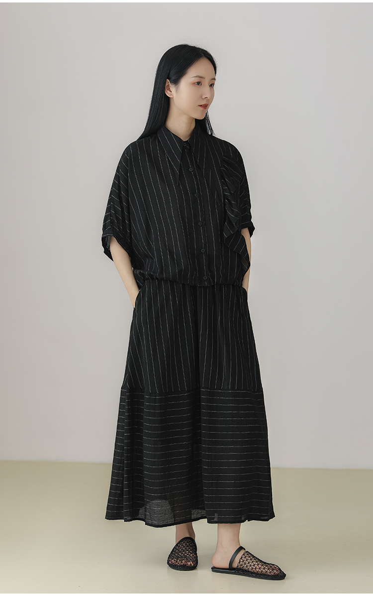 Viscose, made from natural wood pulp, is drapeable and soft to the touch, and the linen blend keeps you cool♪