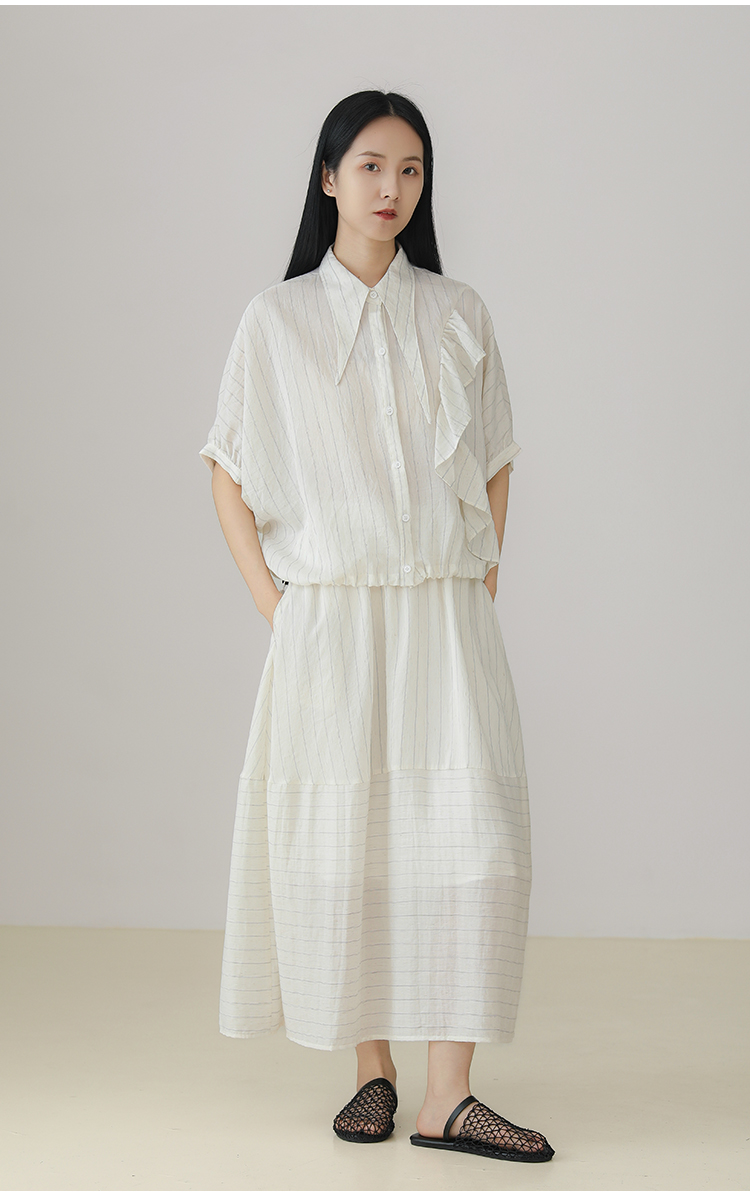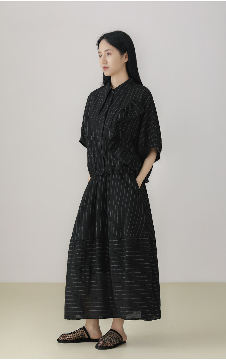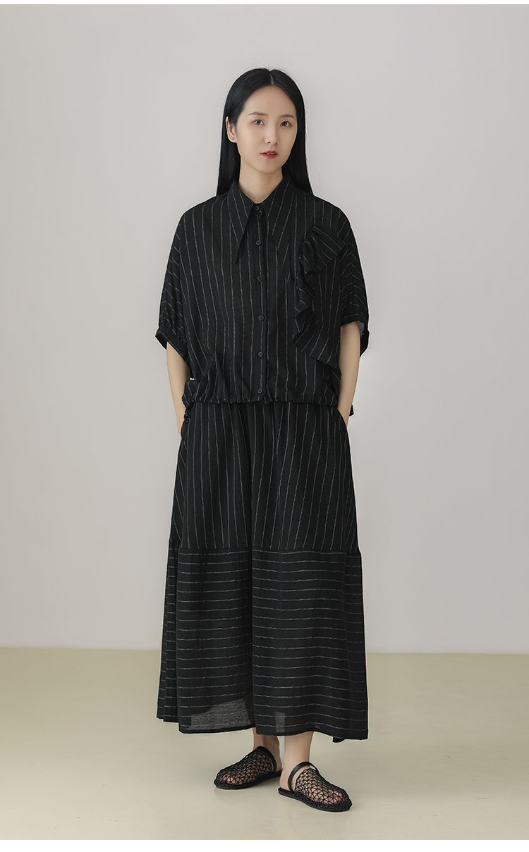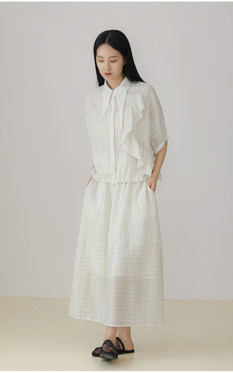 Viscose, made from natural wood pulp, is drapeable and soft to the touch, and the linen blend keeps you cool♪