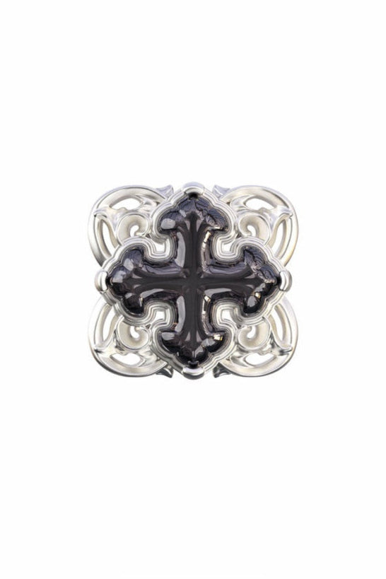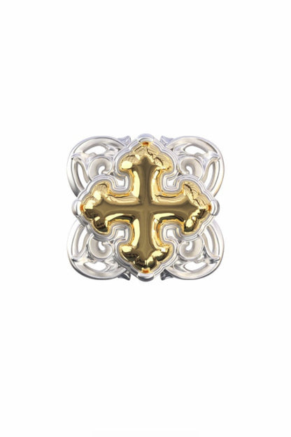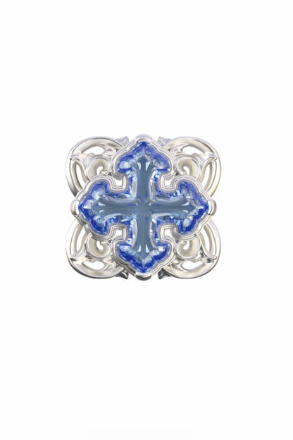 S925 Iris Cross 3D Relief Stud Earrings (Single) B4123