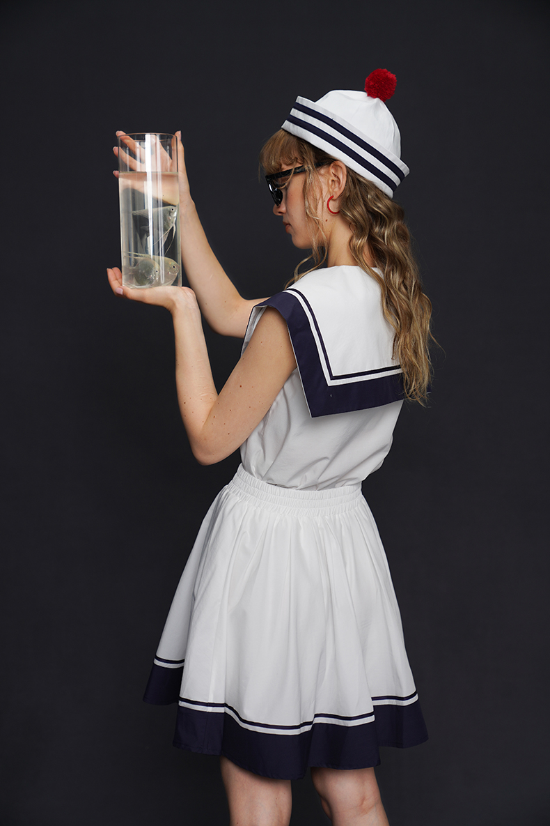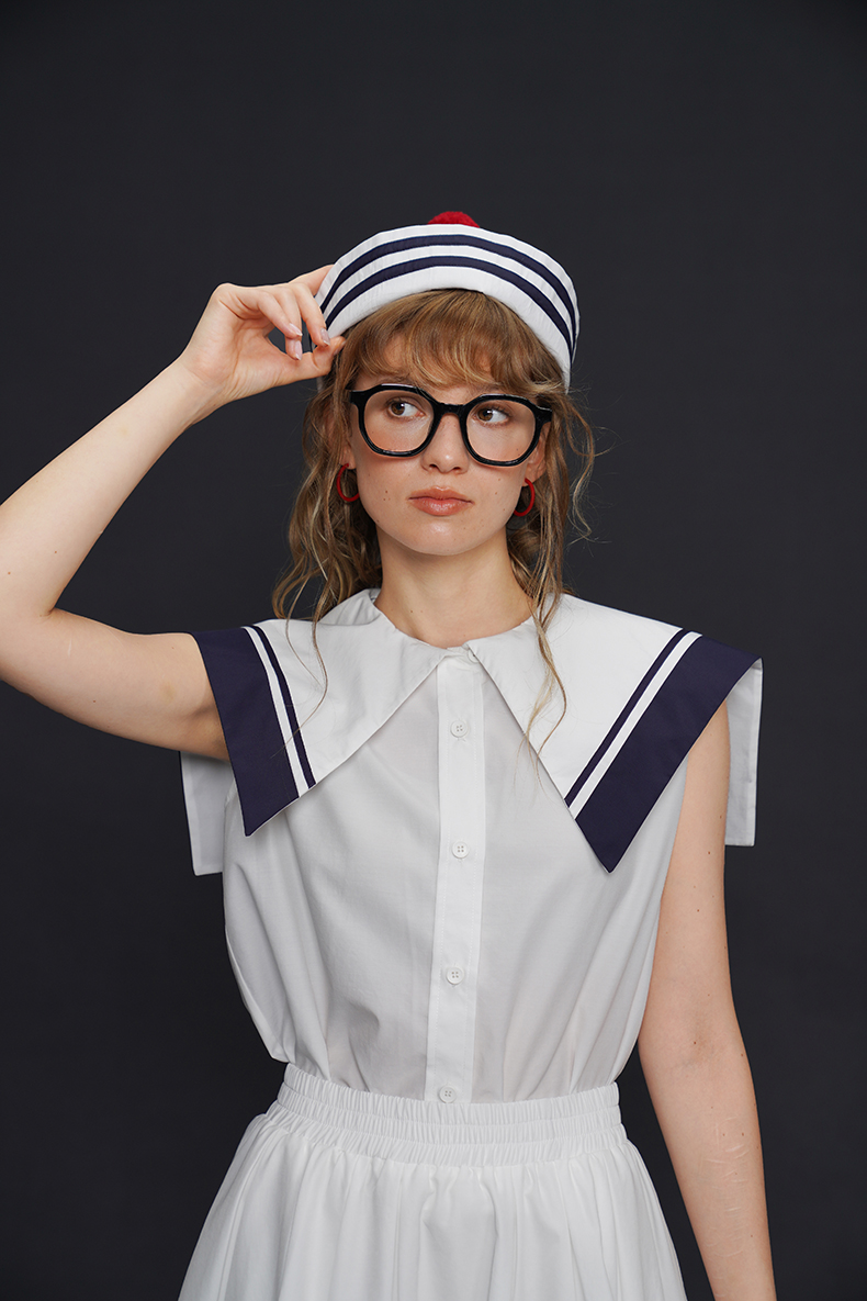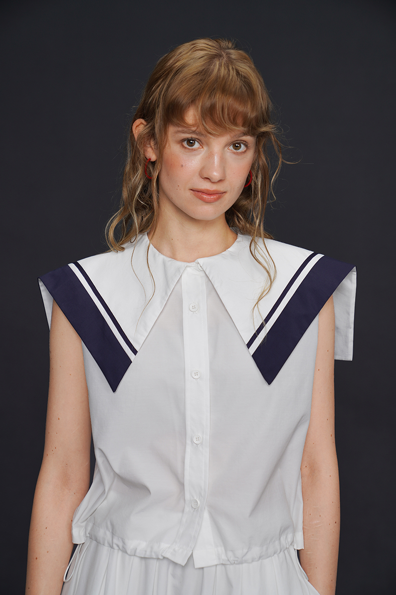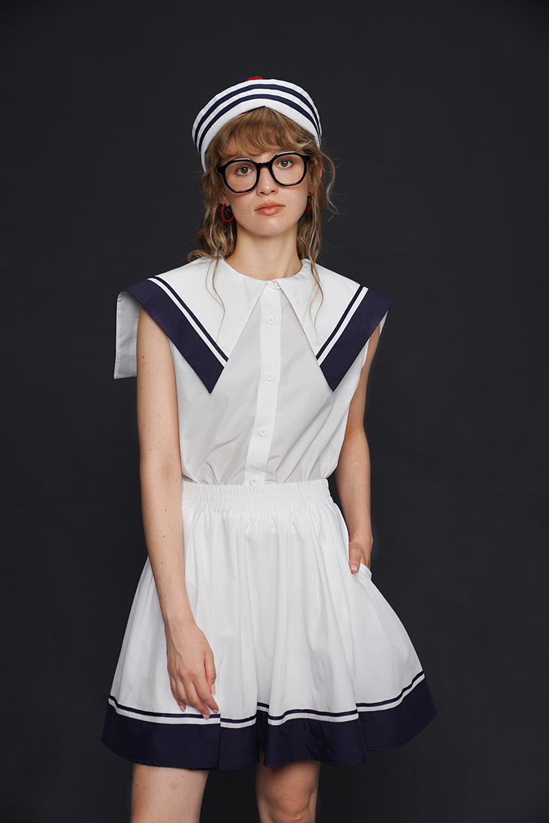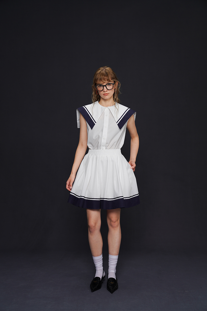 Marine sailor collar sleeveless top, skirt and suit B4155