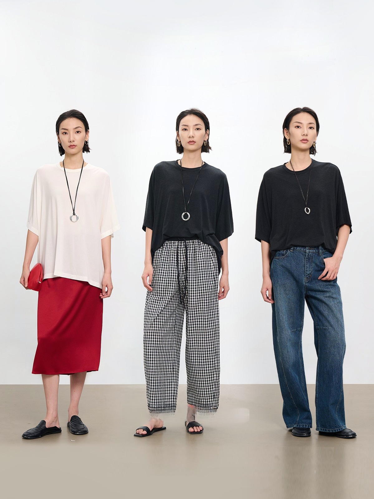 Summer Tencel wool 5/8 sleeve loose T-shirt B4179