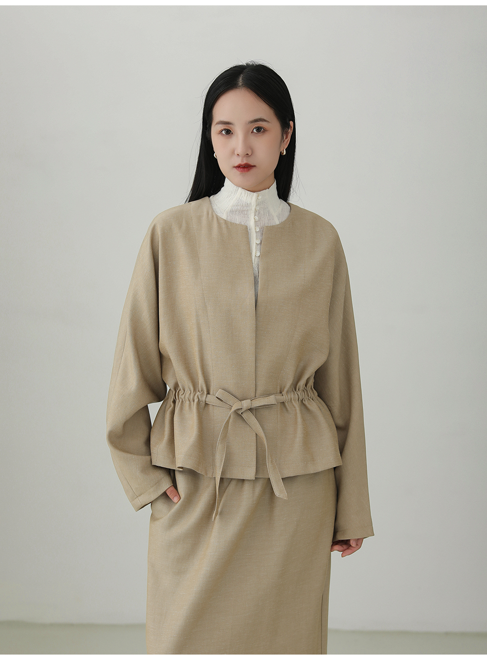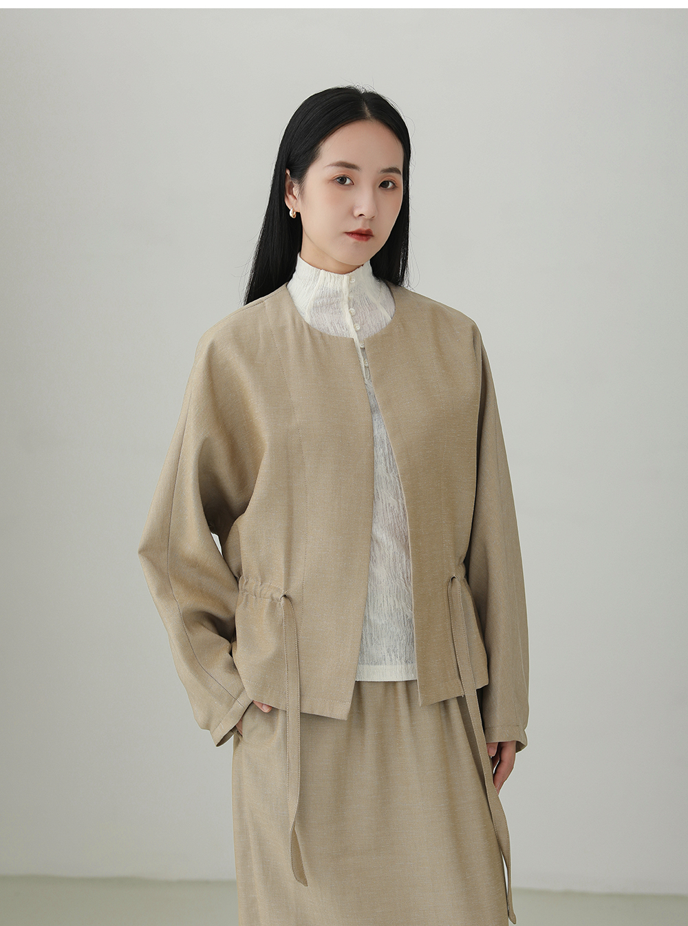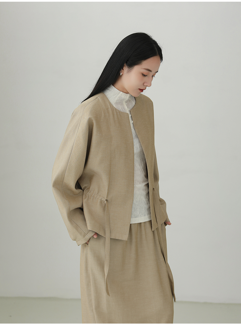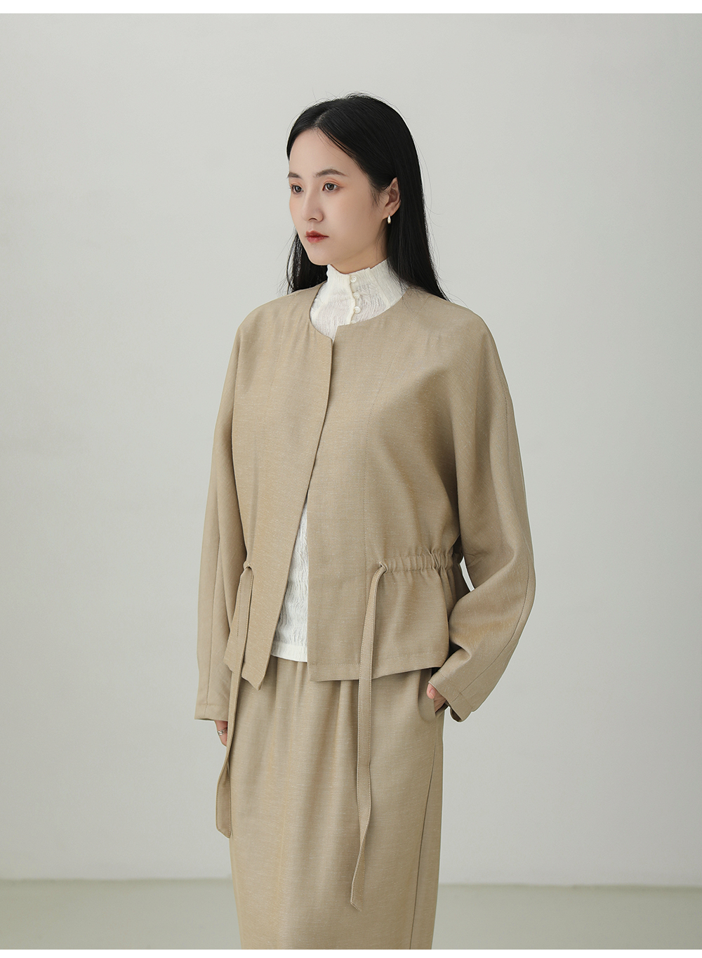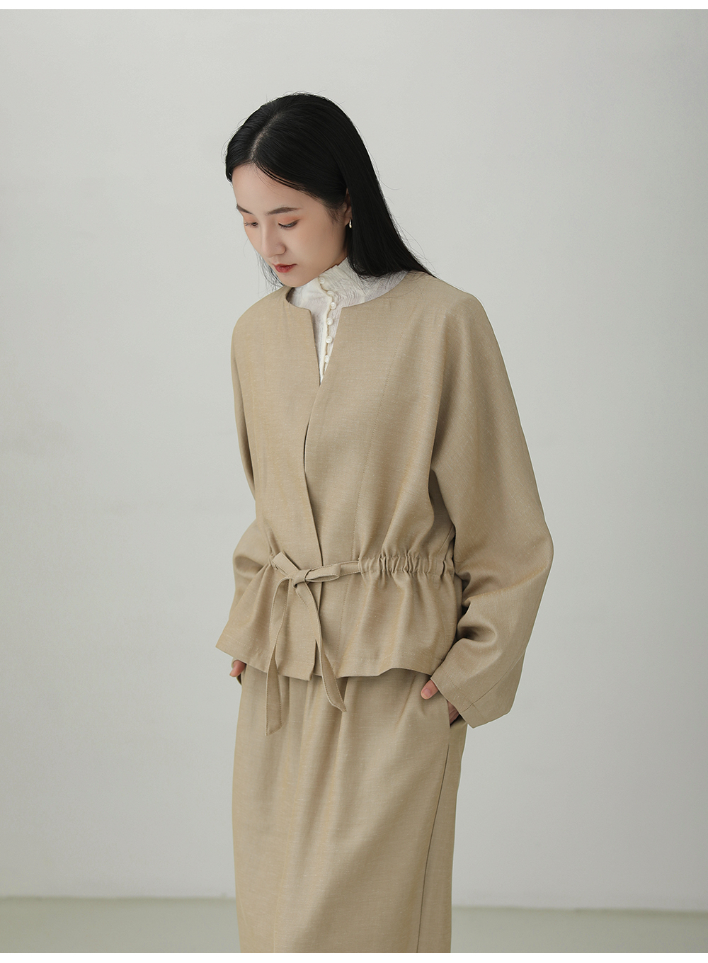 Tencel linen drawstring waist jacket B4281