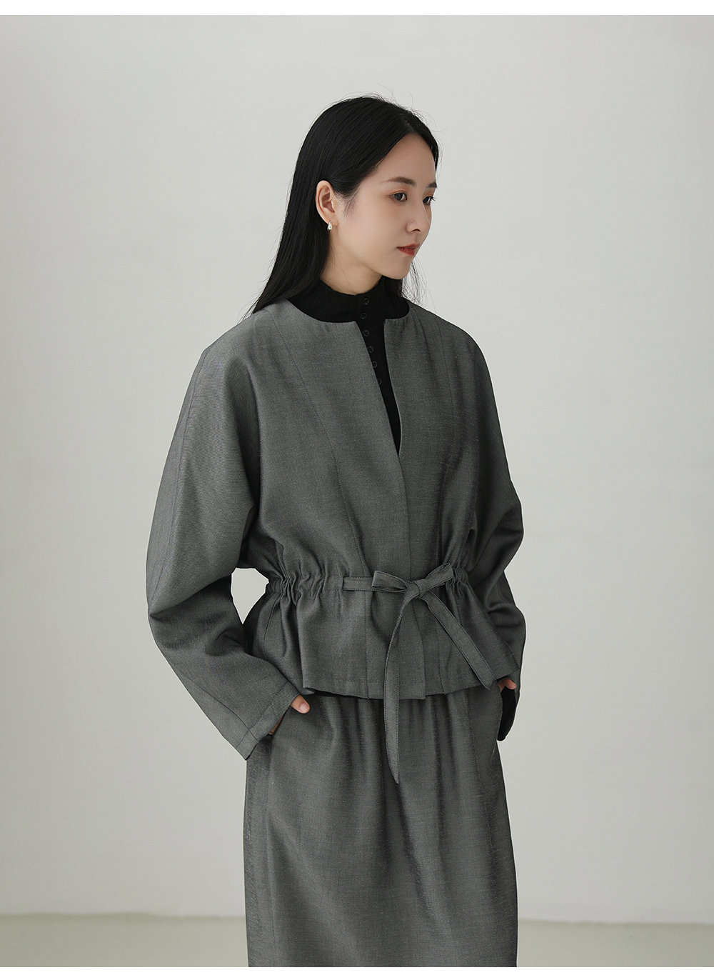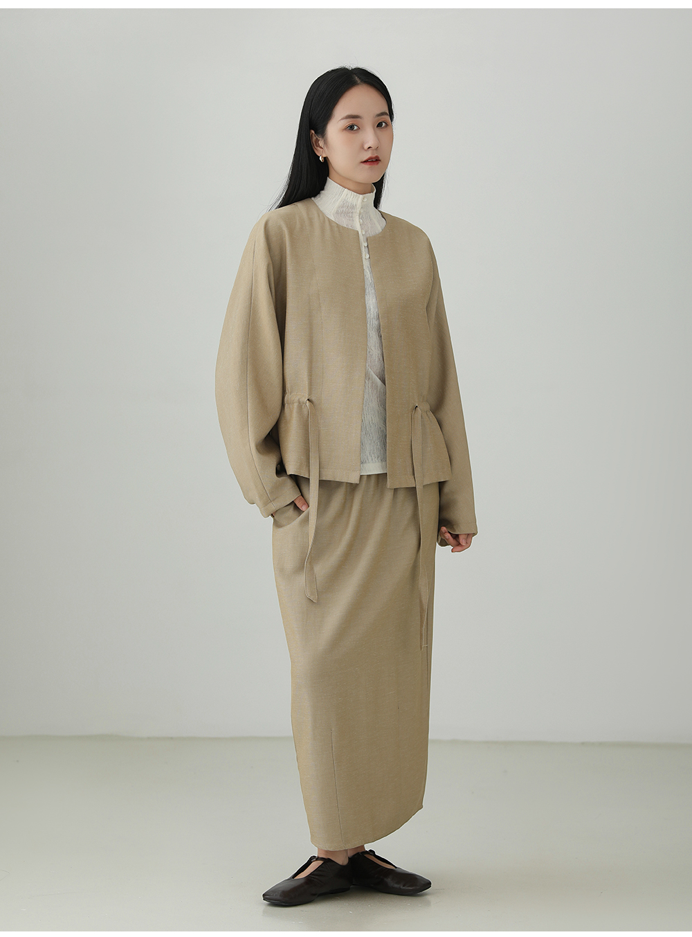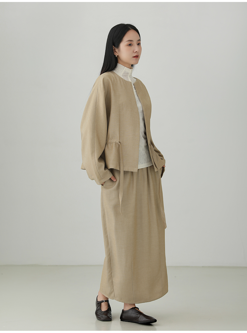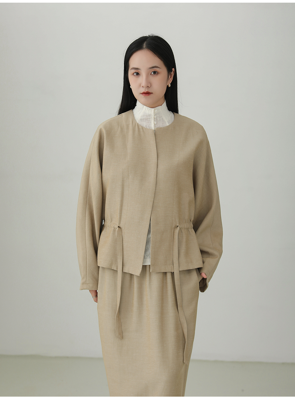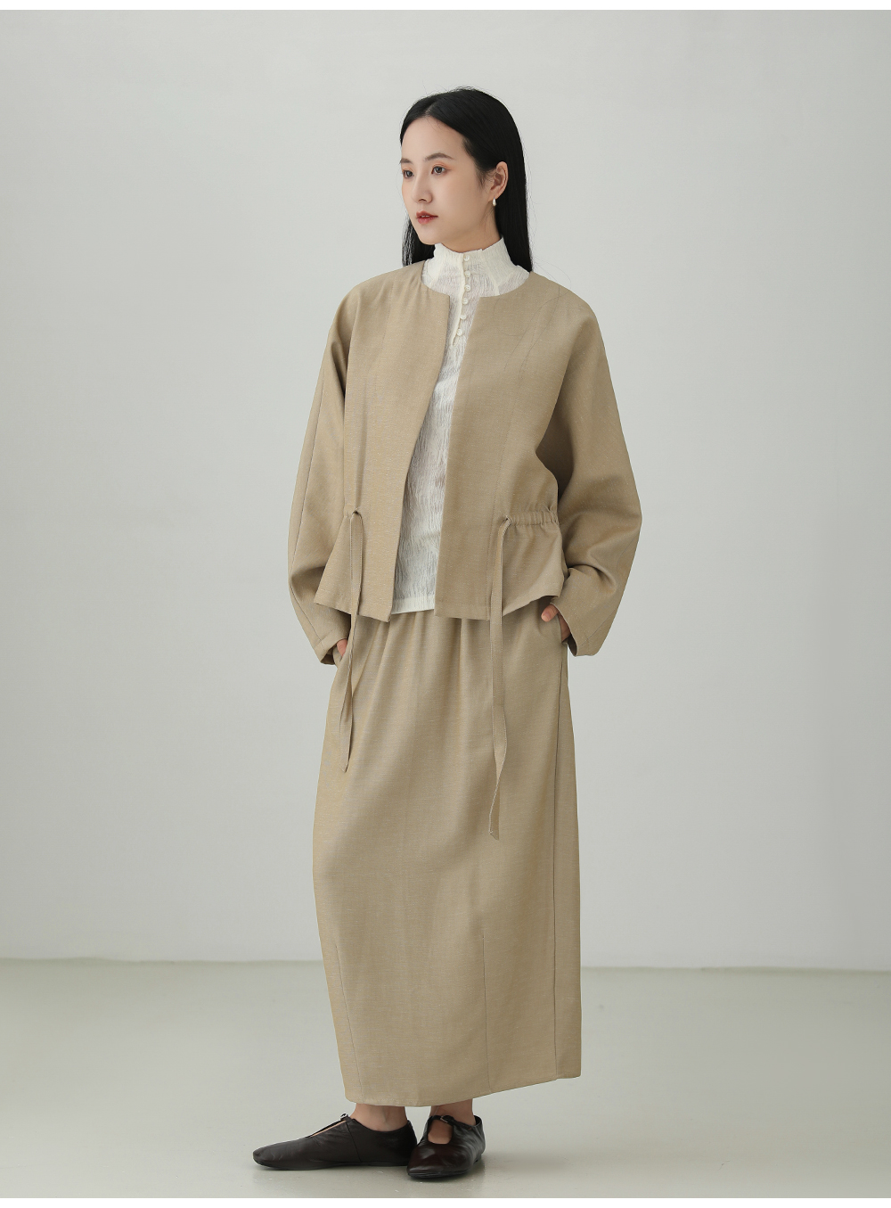 Tencel linen drawstring waist jacket B4281