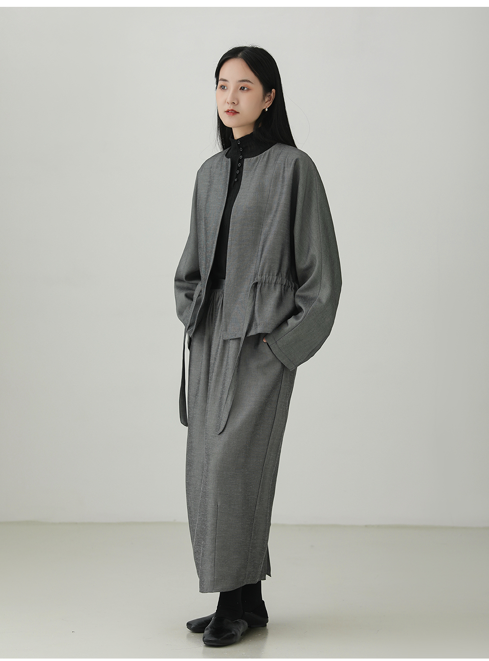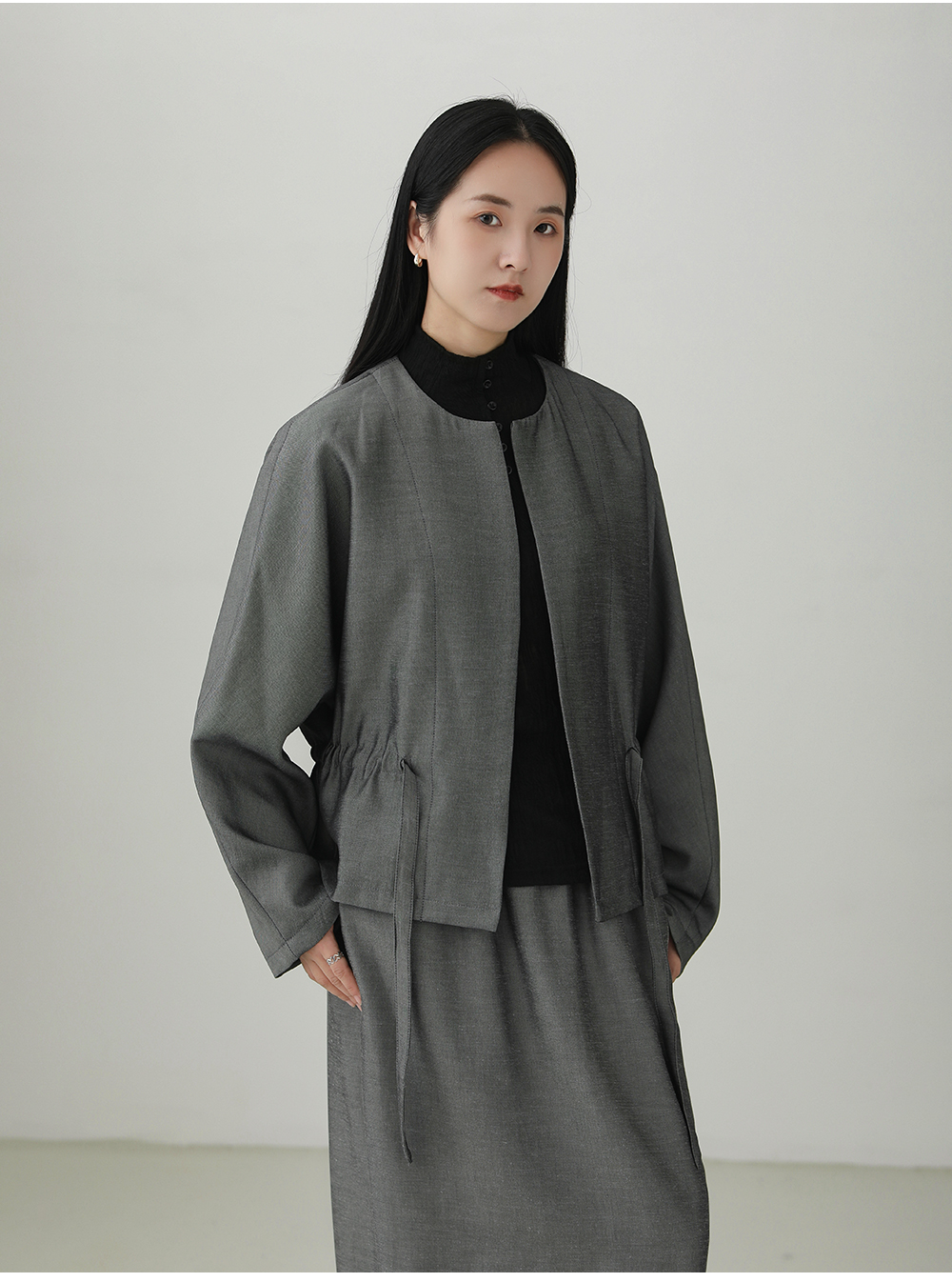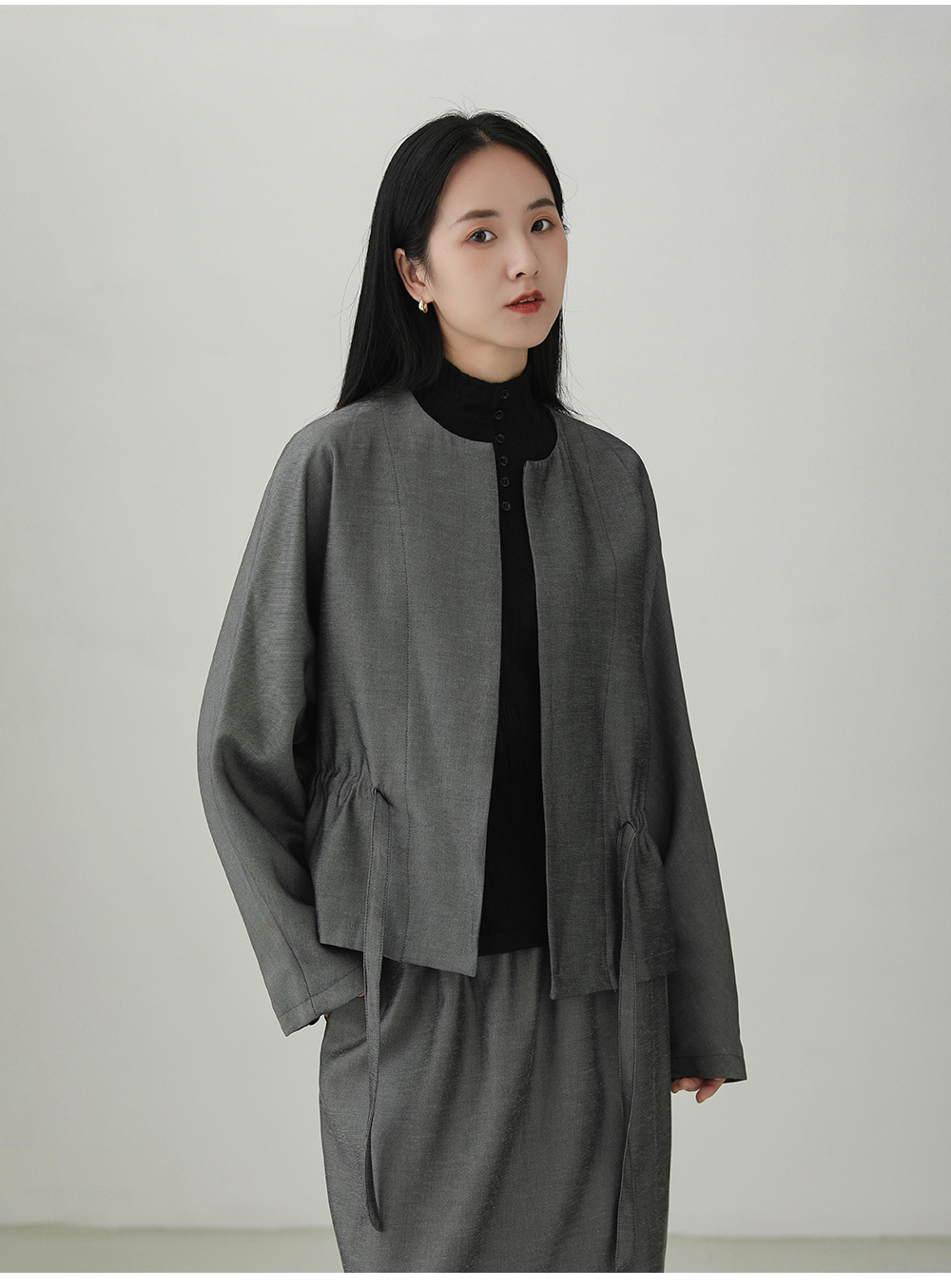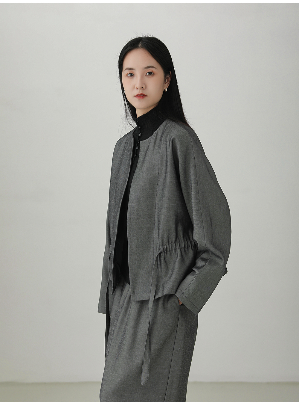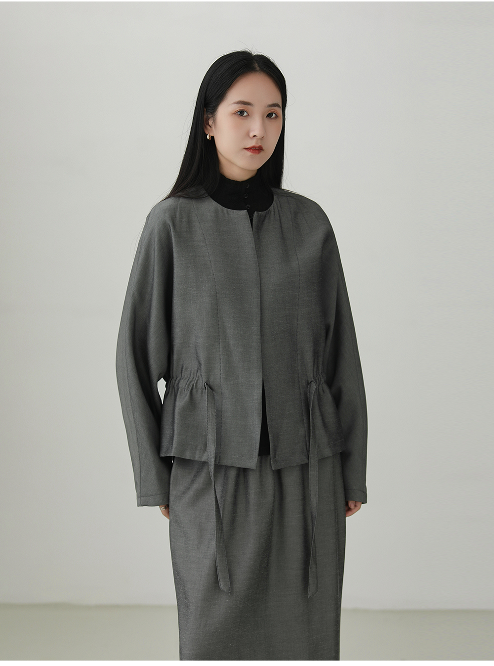Tencel linen drawstring waist jacket B4281