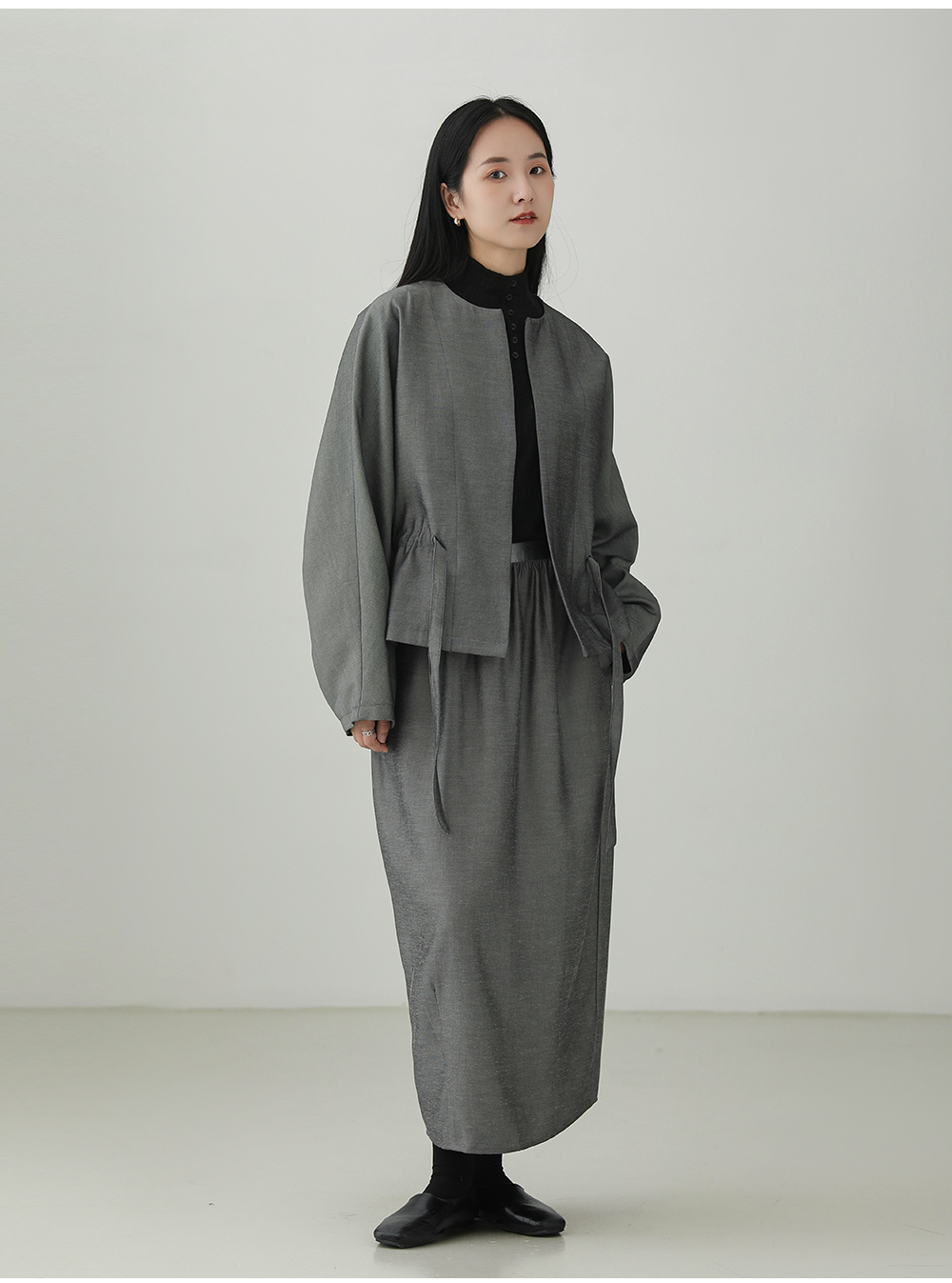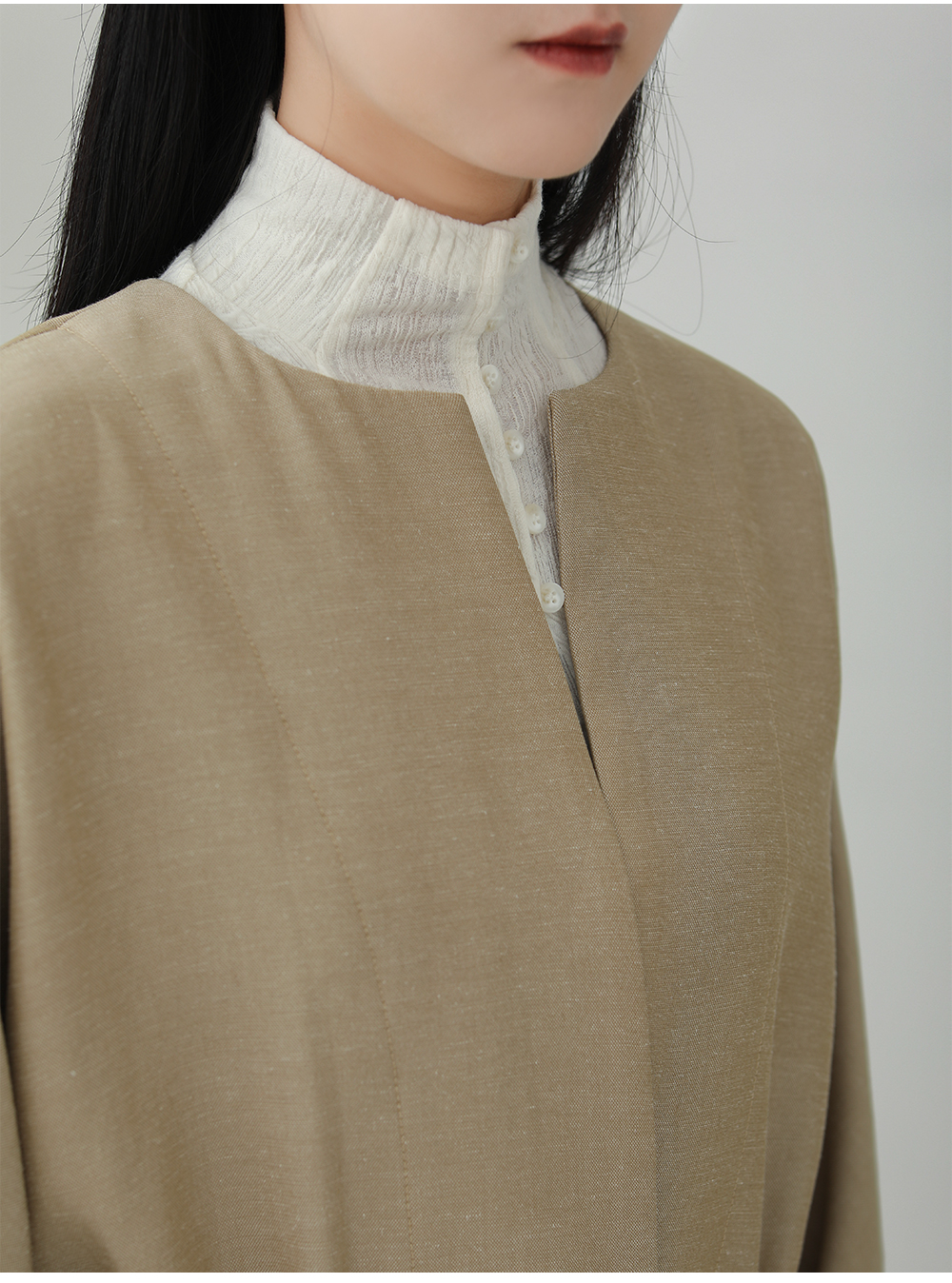 Collarless jacket (comfortable with raglan sleeves)