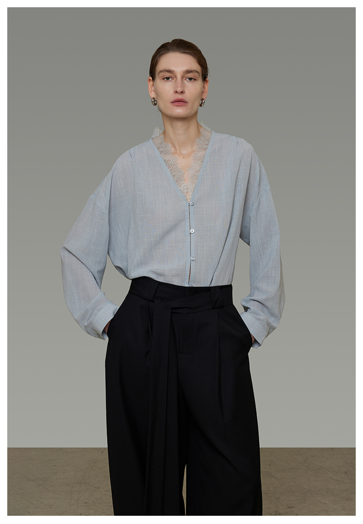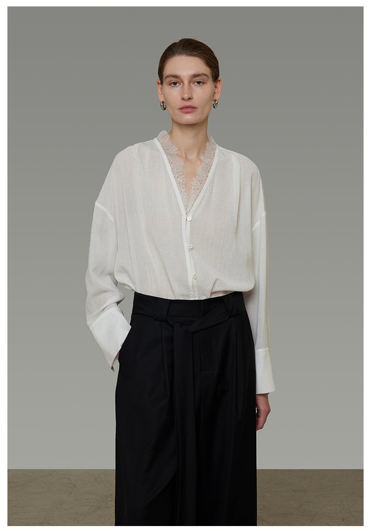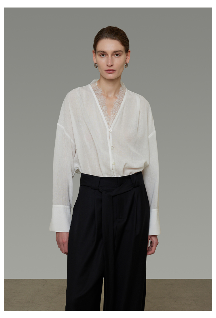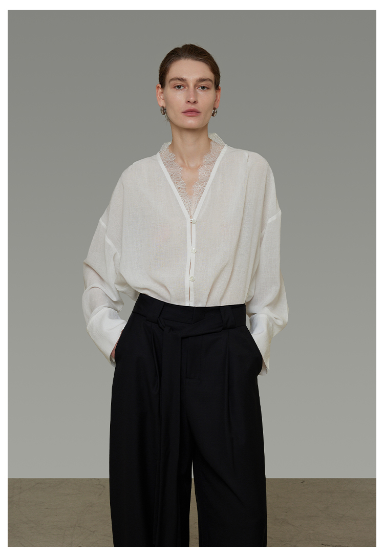 Lace V-neck loose blouse B4293