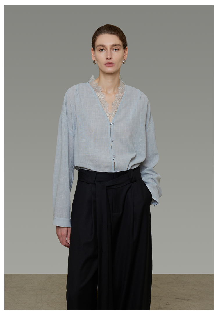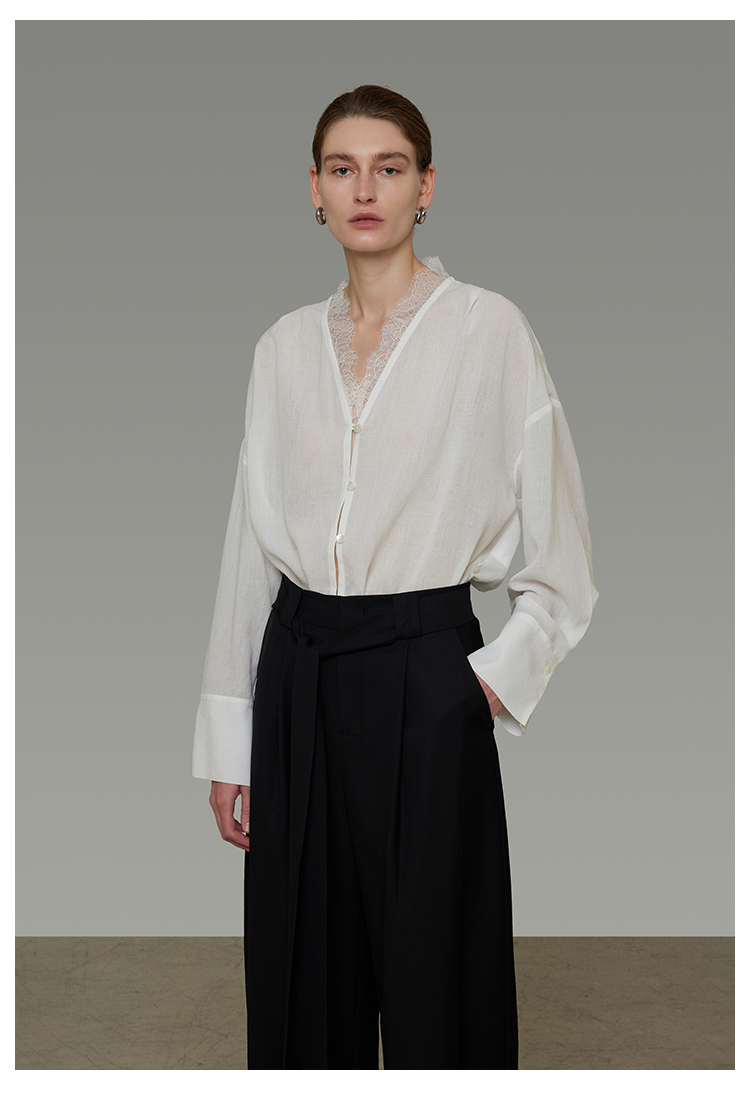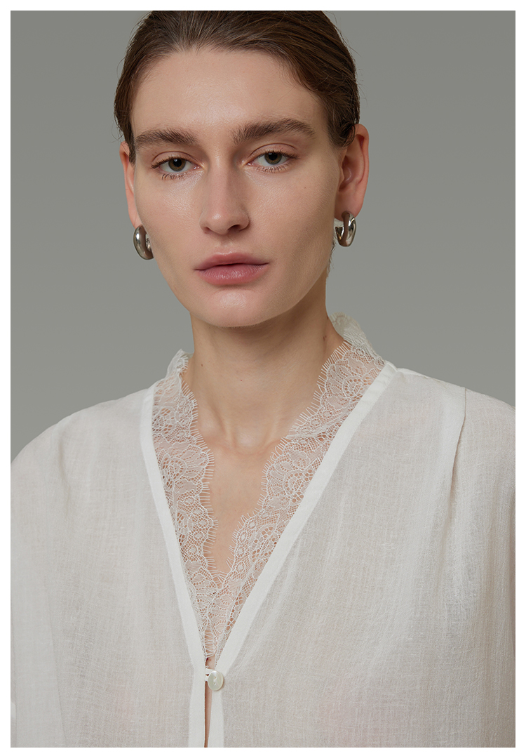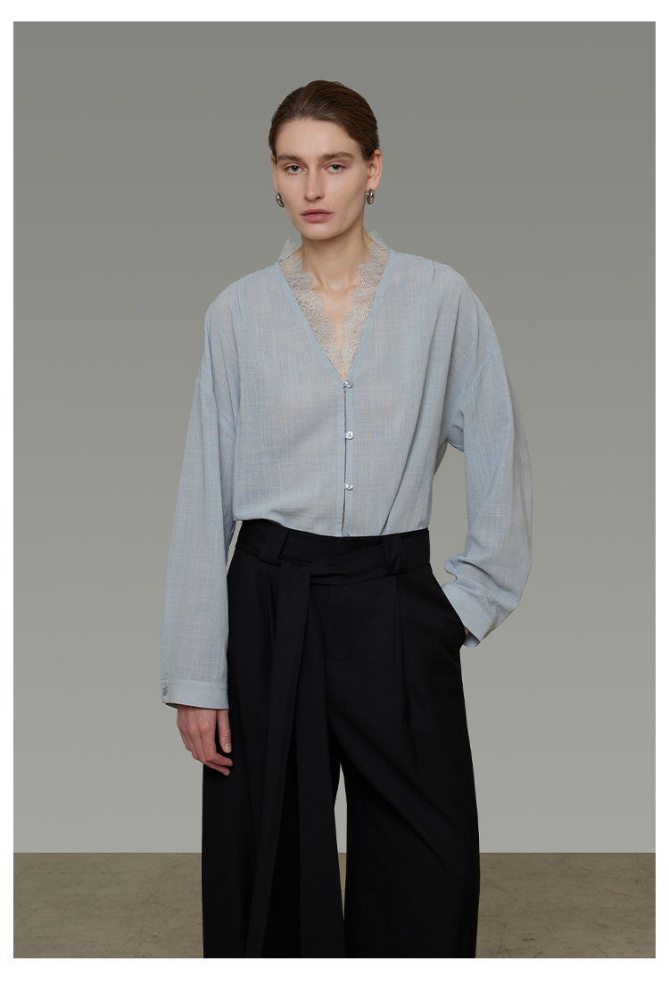 Lace V-neck loose blouse B4293