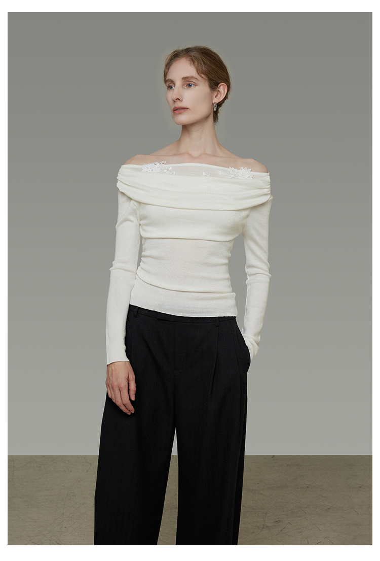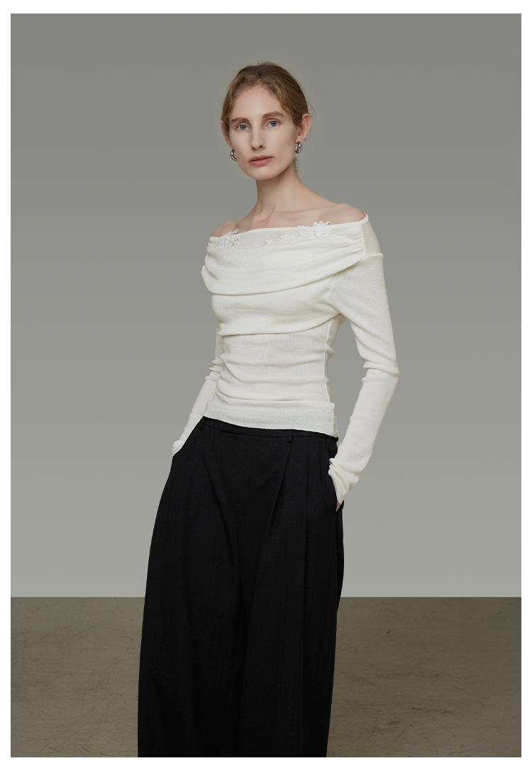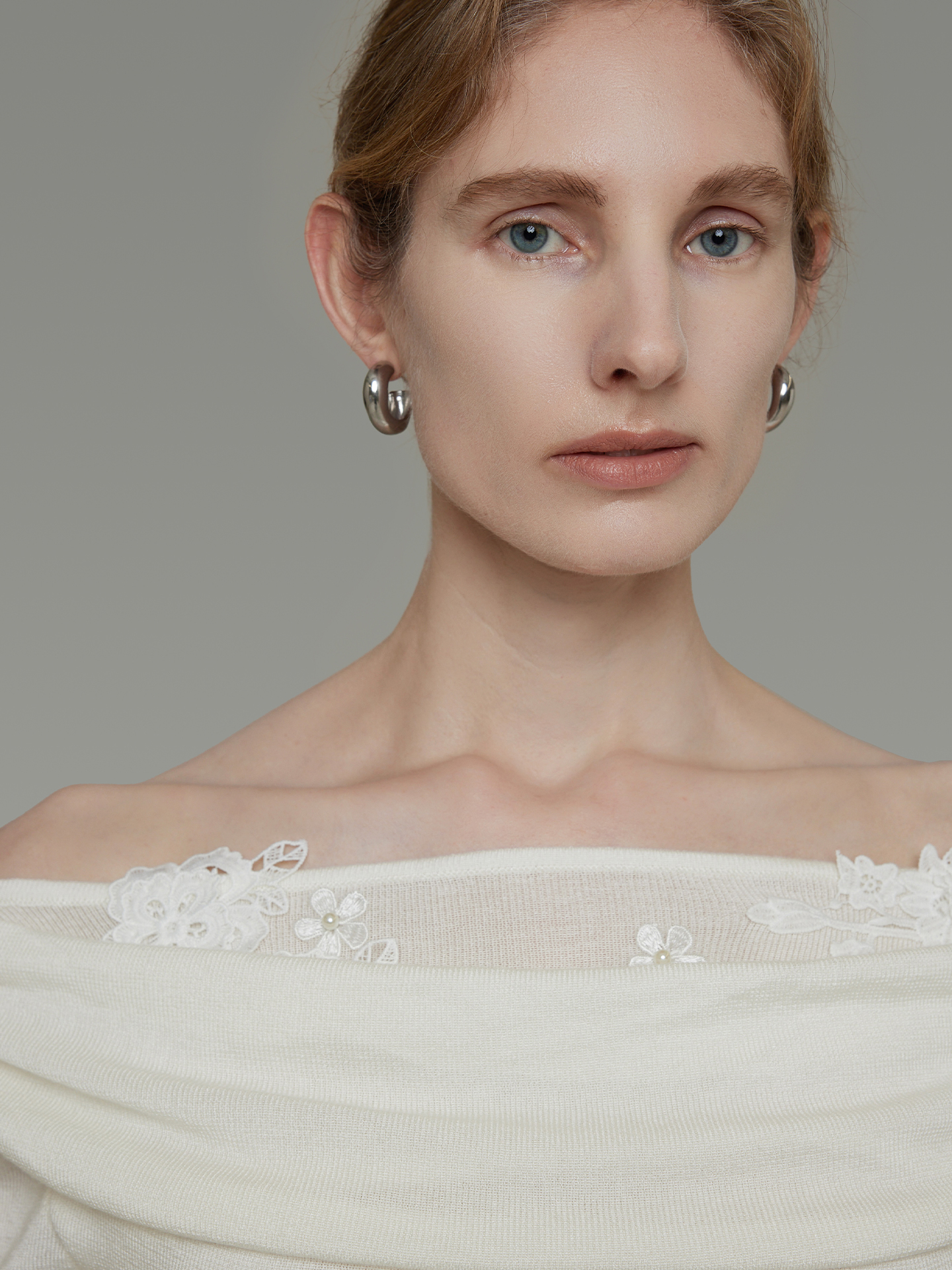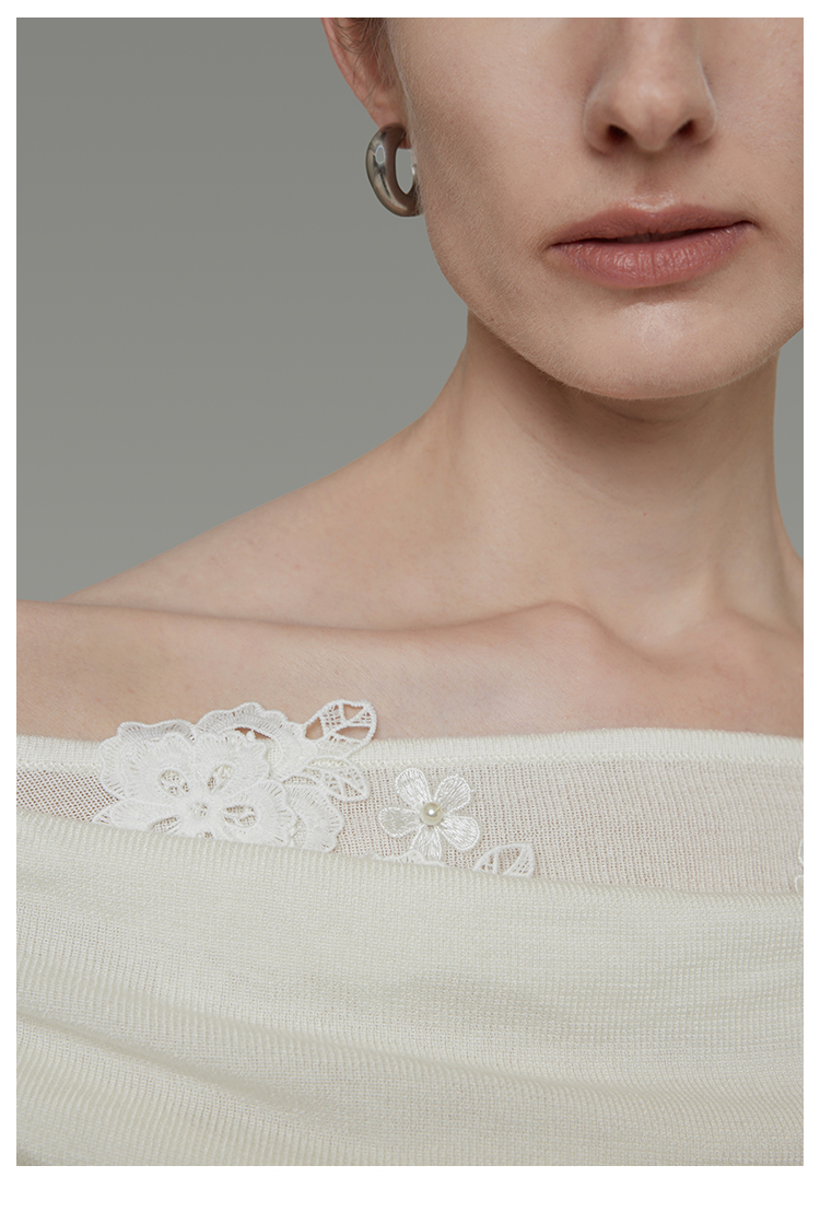 The three-dimensional flower decoration on the shoulder is modest yet cute and stylish.