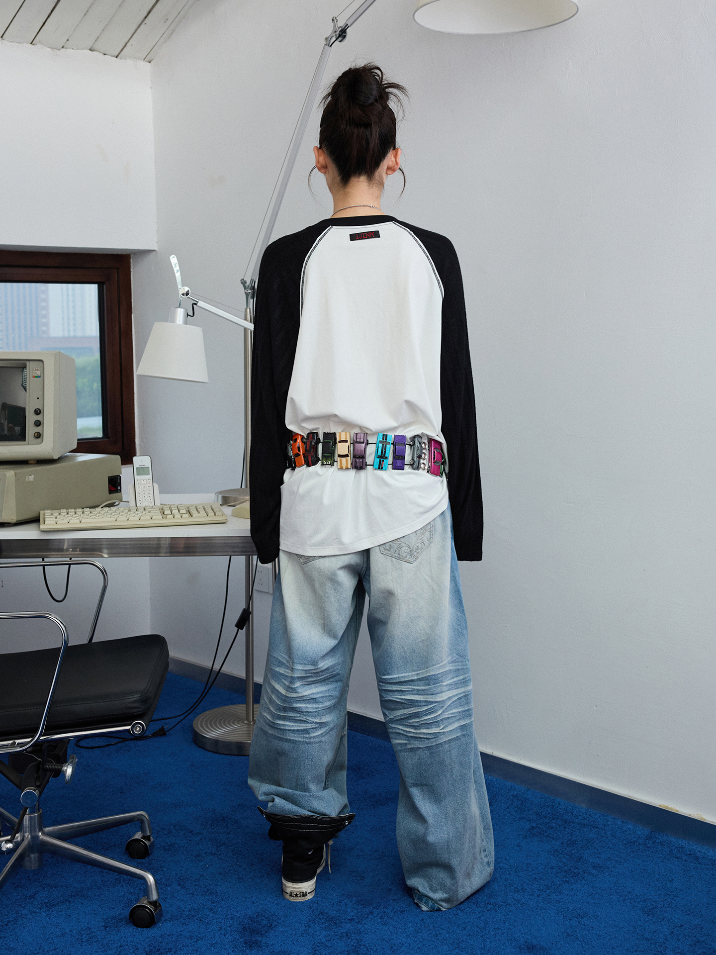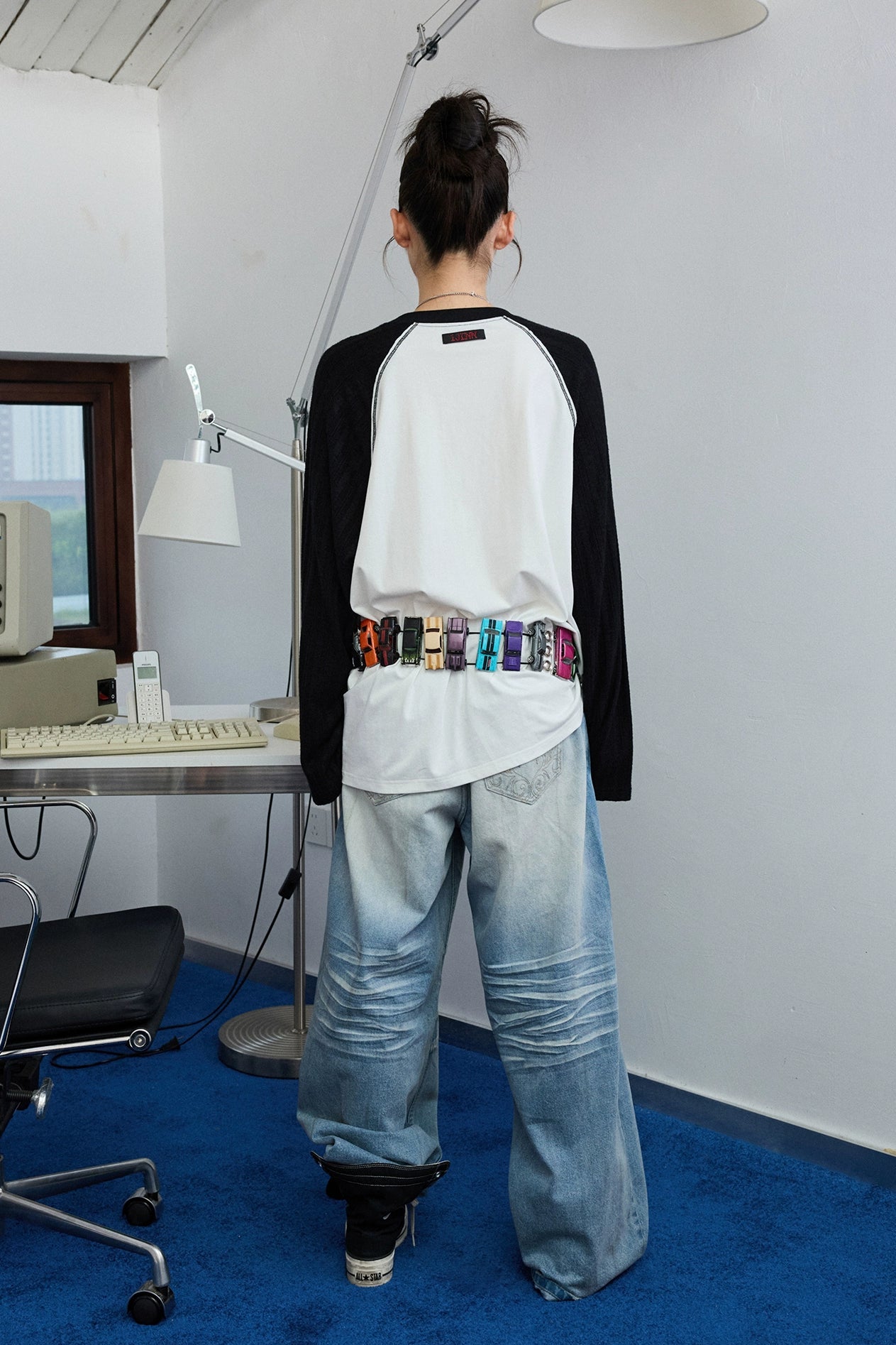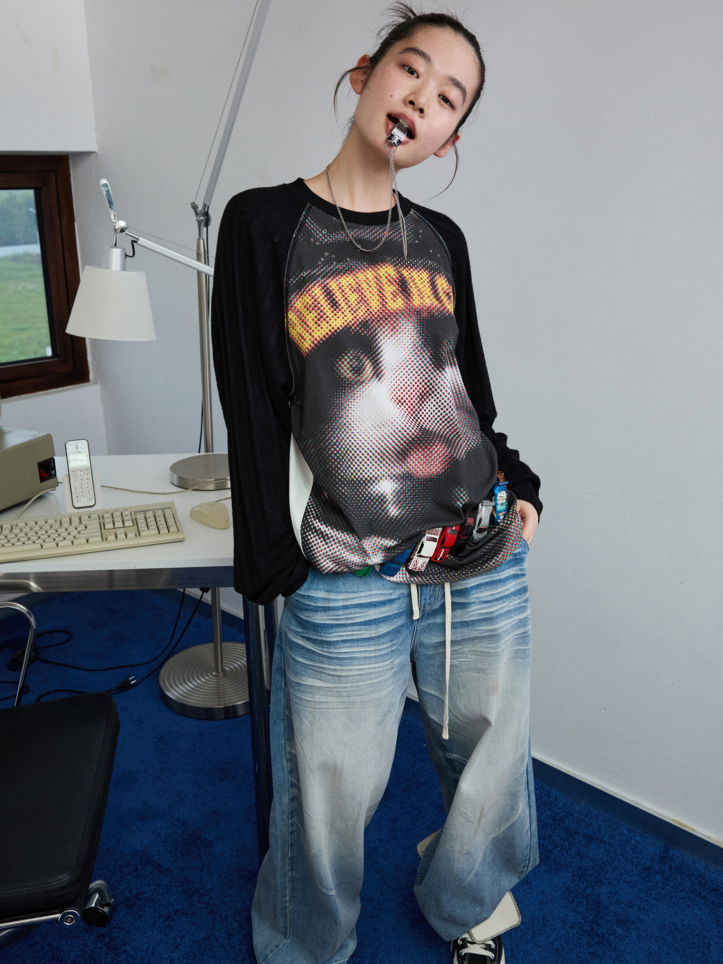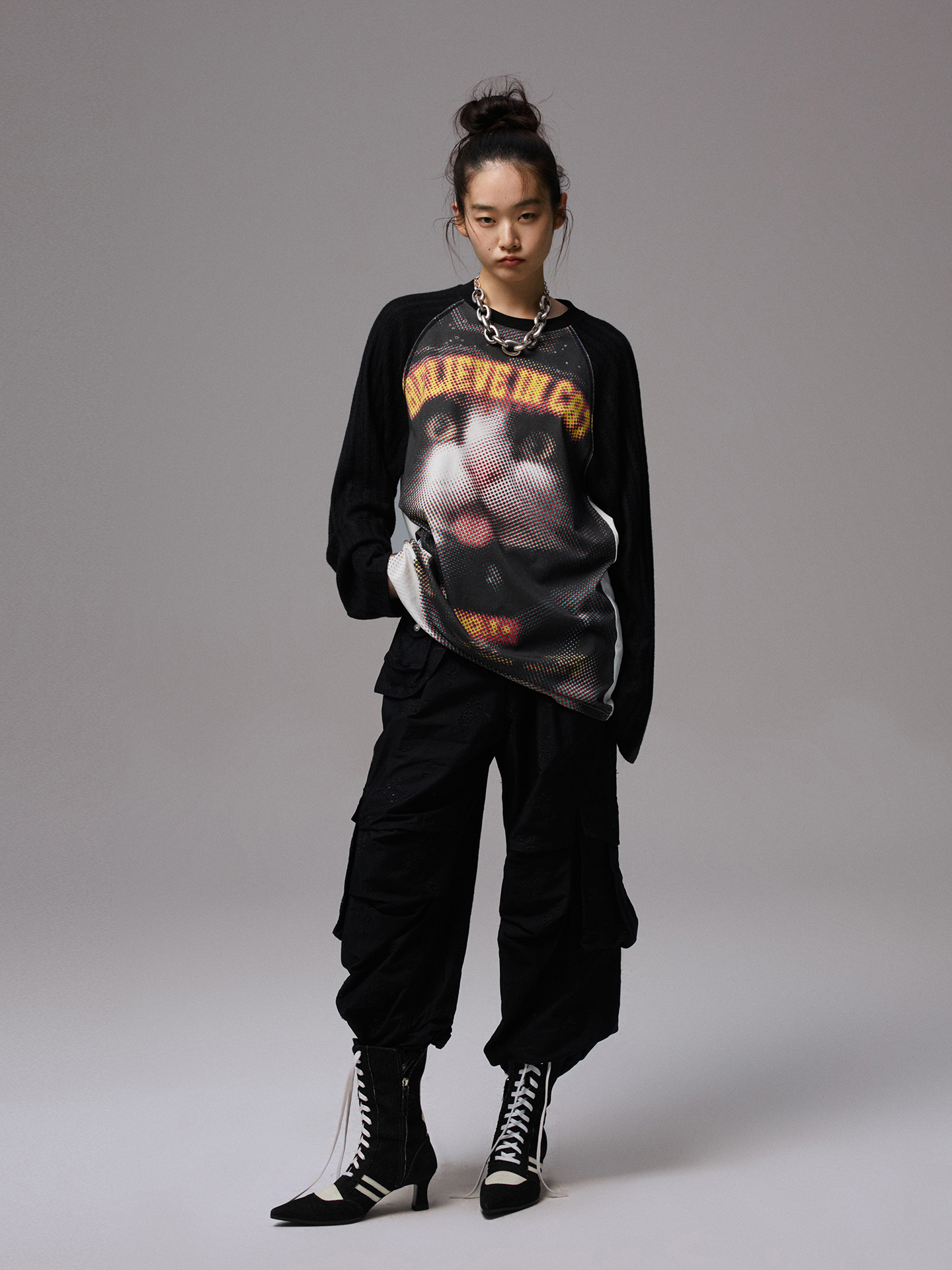 Biker Cat Print Raglan Sleeve T-Shirt B4319