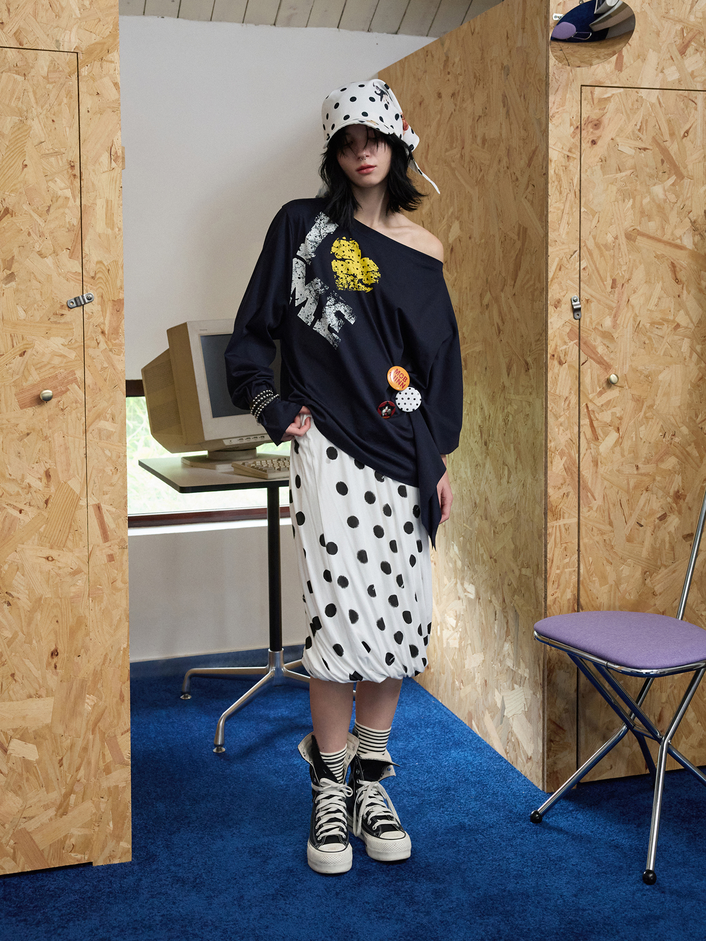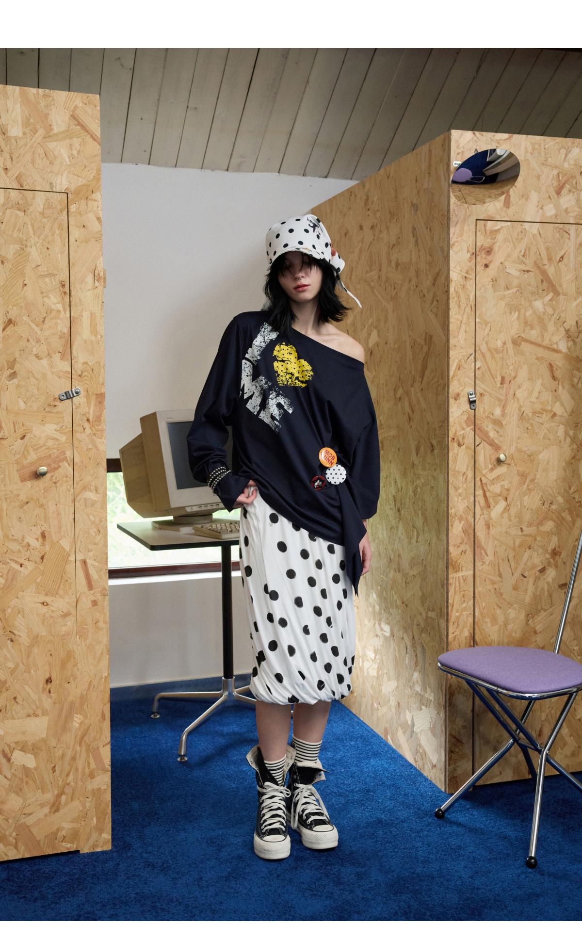 Off-the-shoulder top (made of high-density cotton, wrinkle-resistant and gentle on the skin)