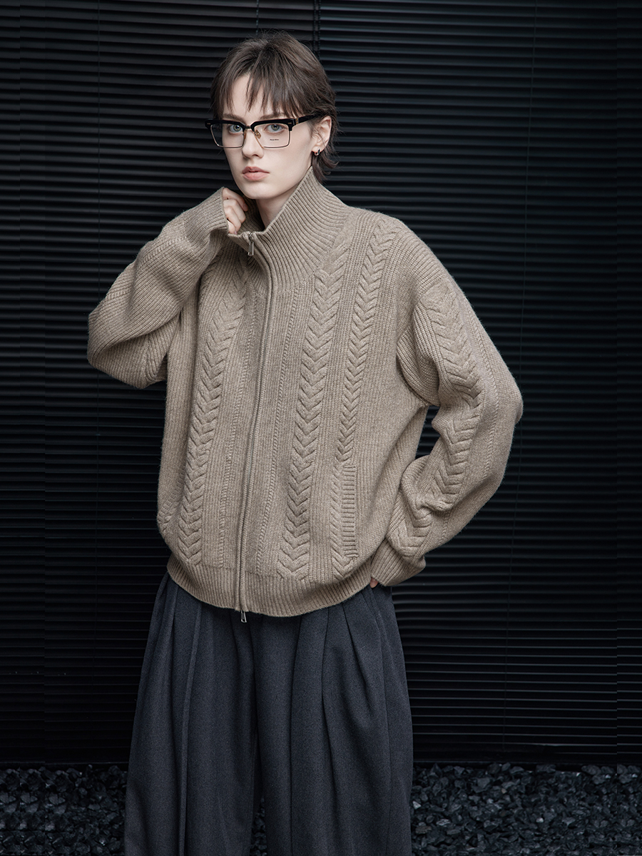 Oatmeal Loose Cable Knit Jacket B4361