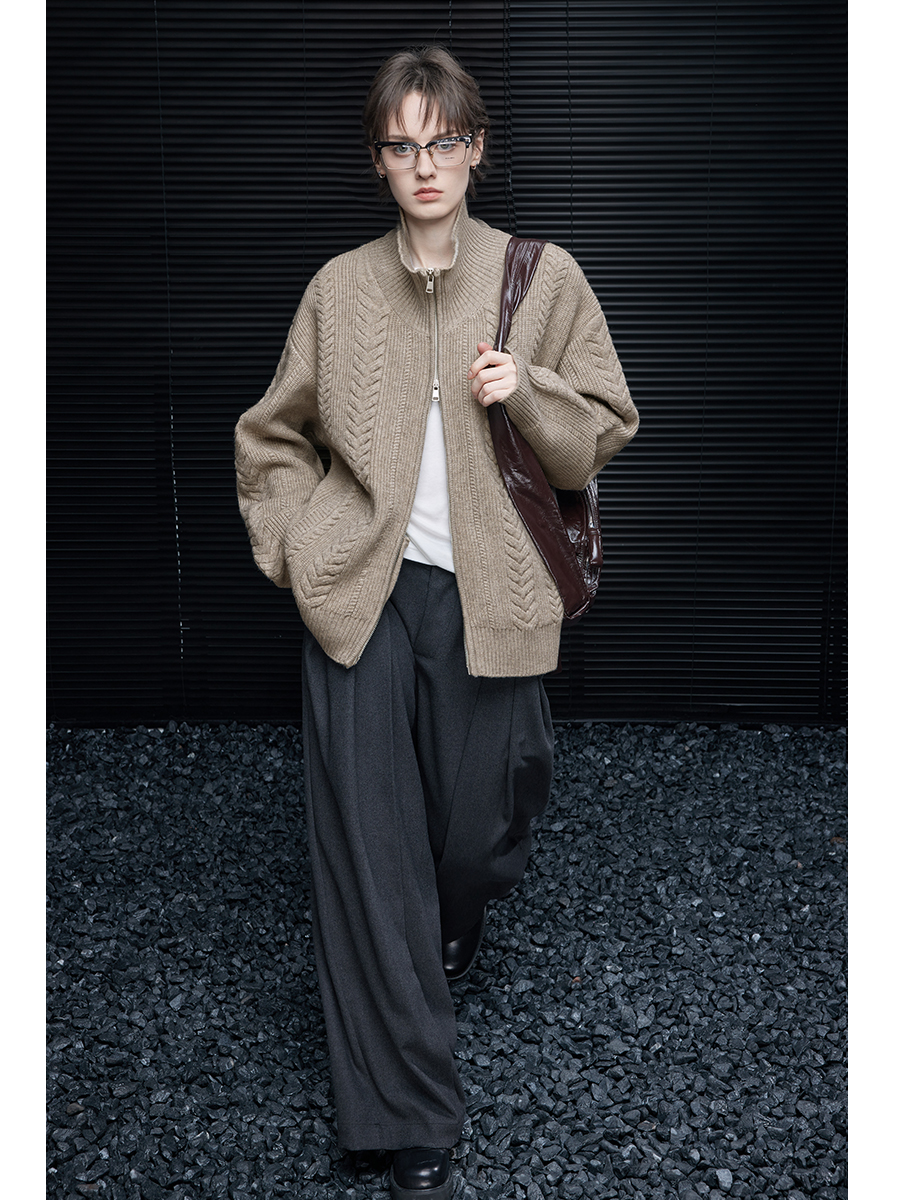 Knit jacket (stylish with double zipper)
