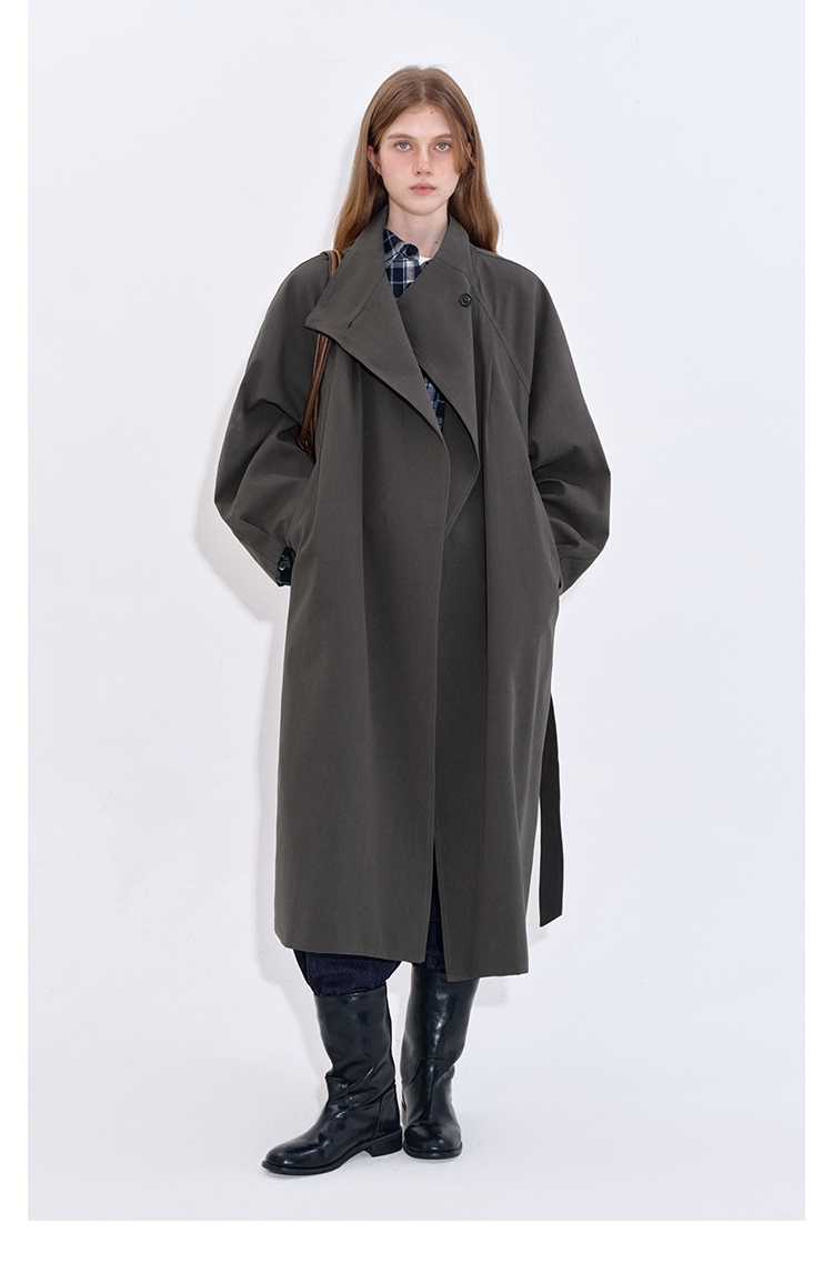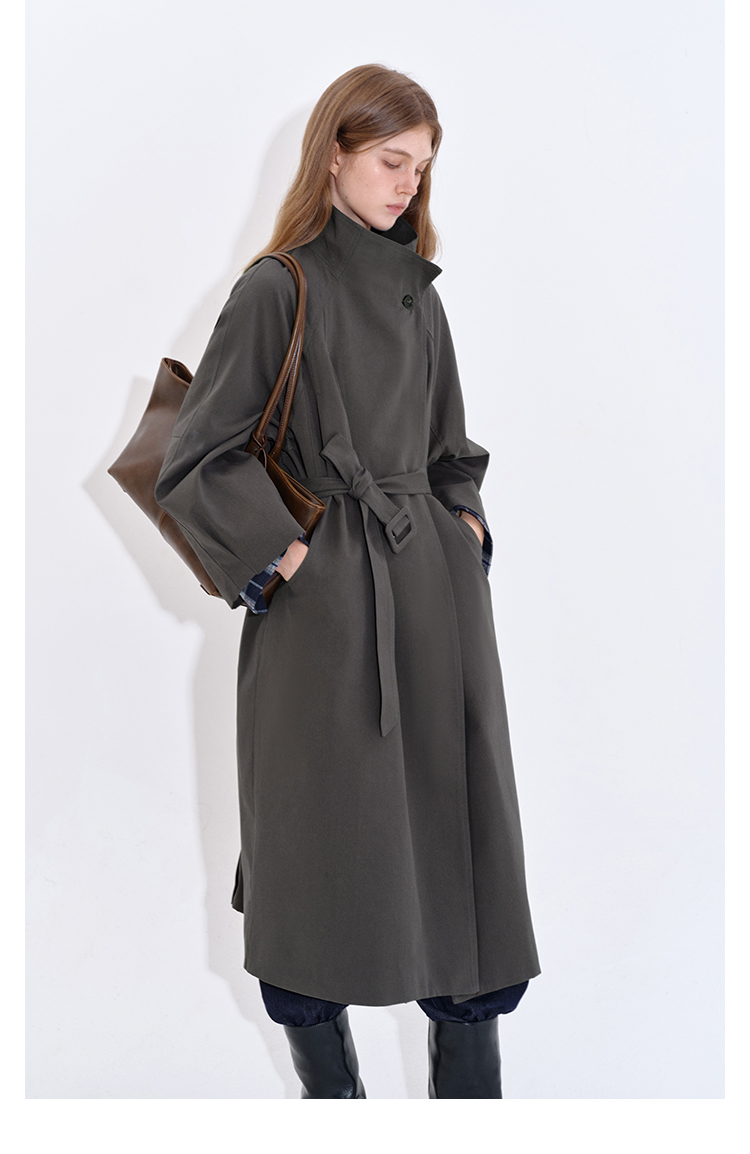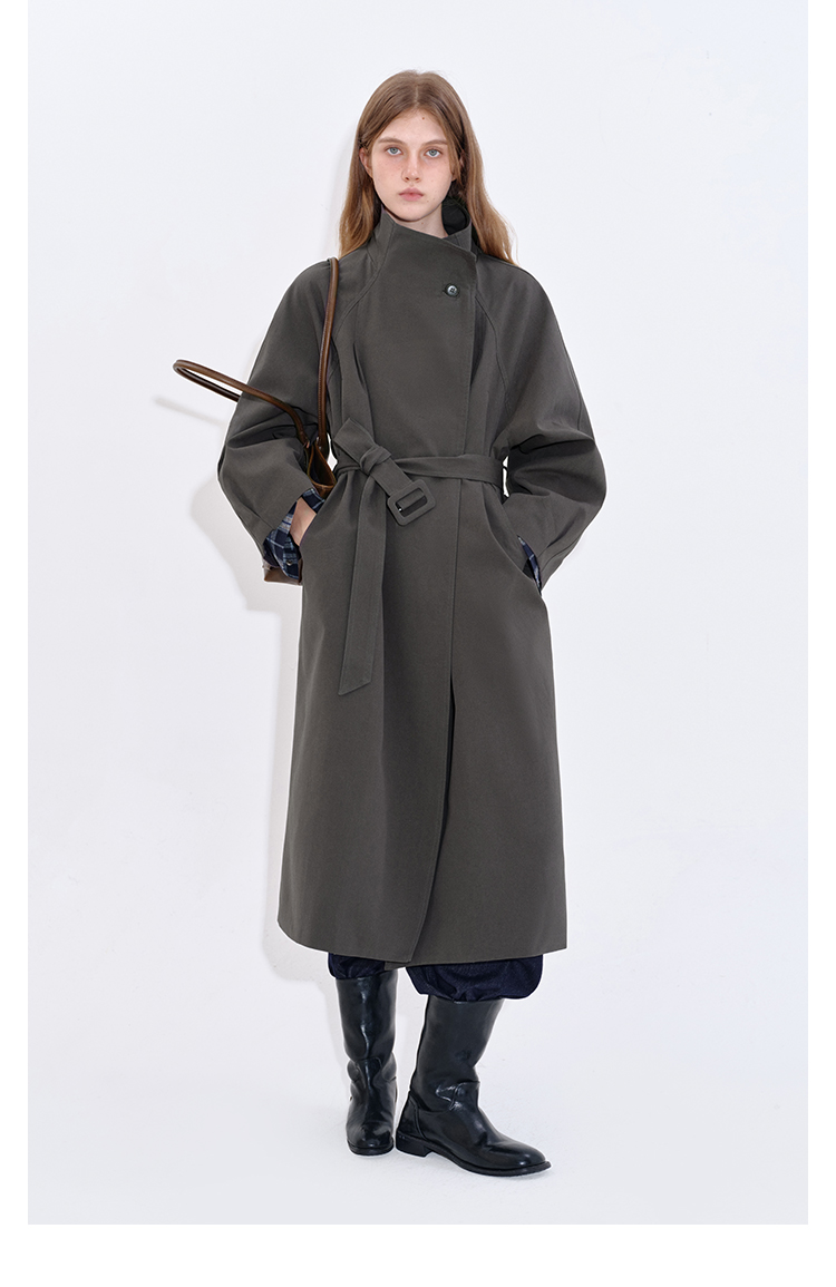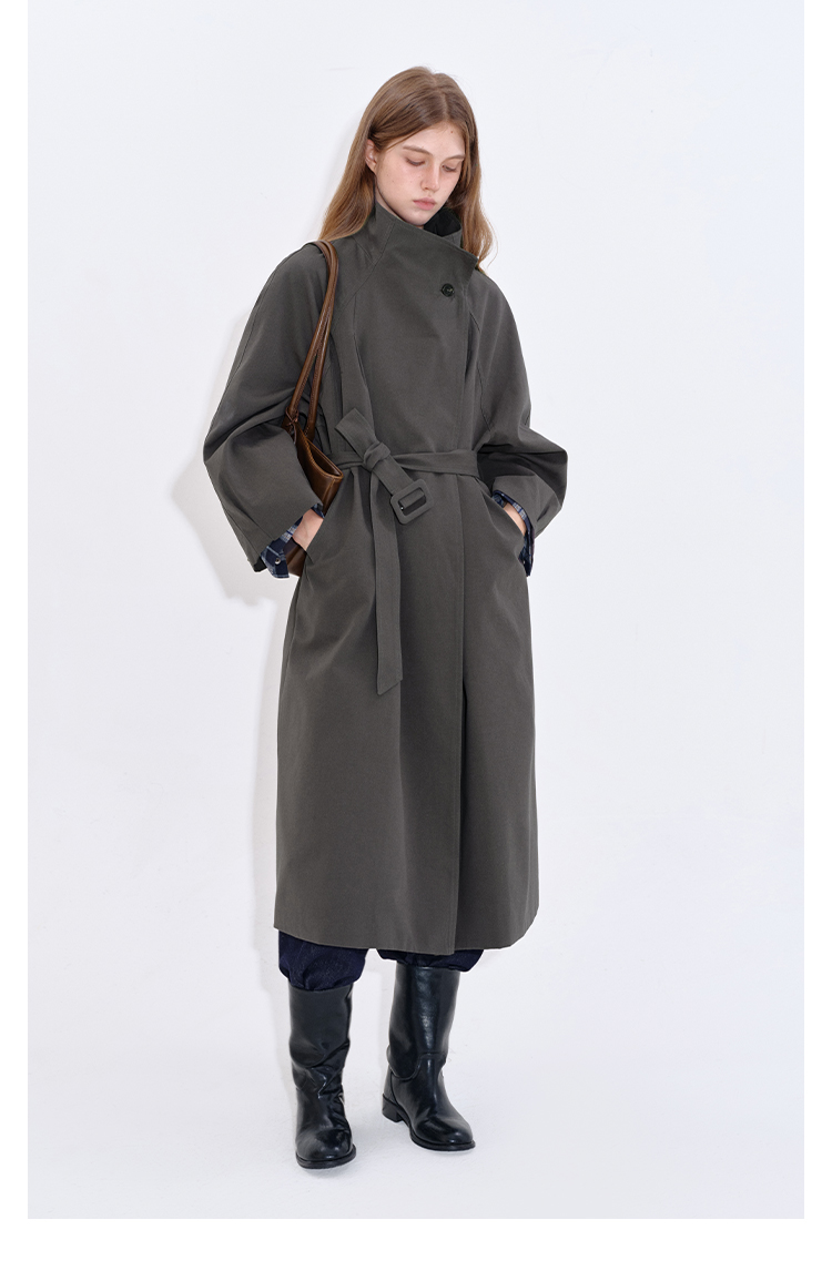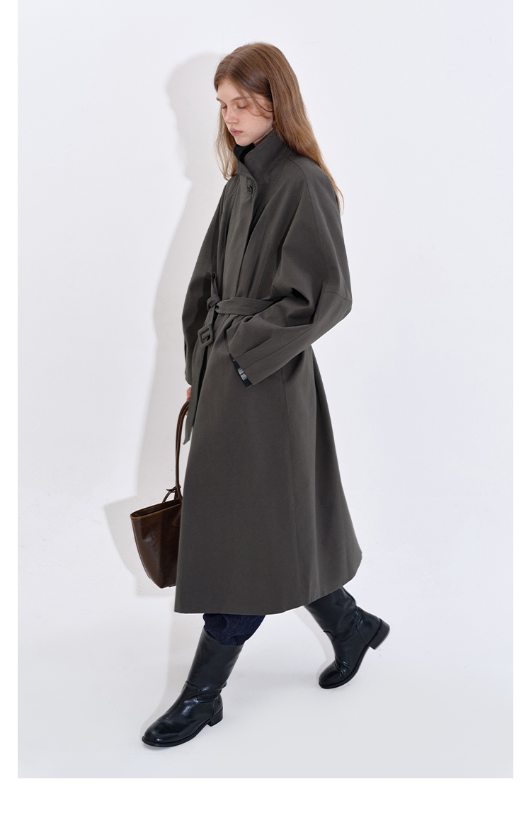 Stand collar long windbreaker coat B4397