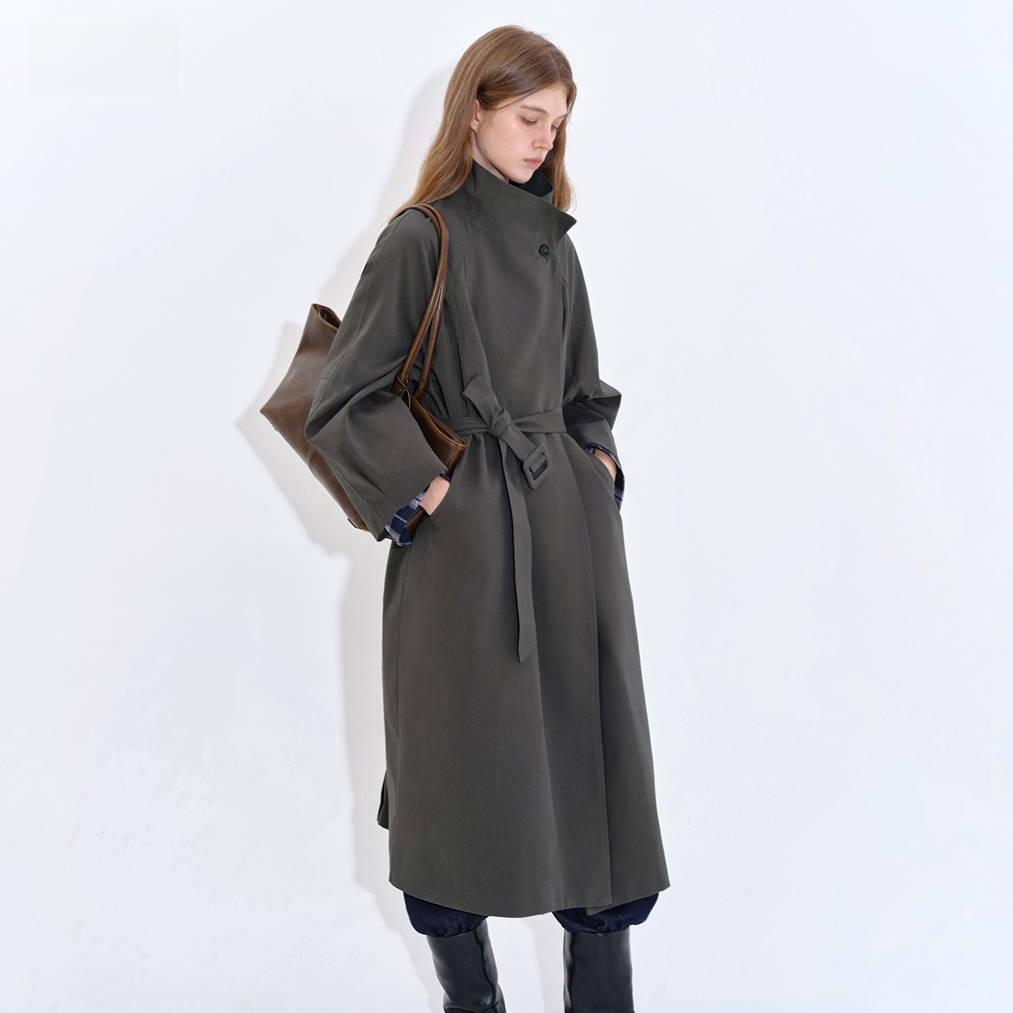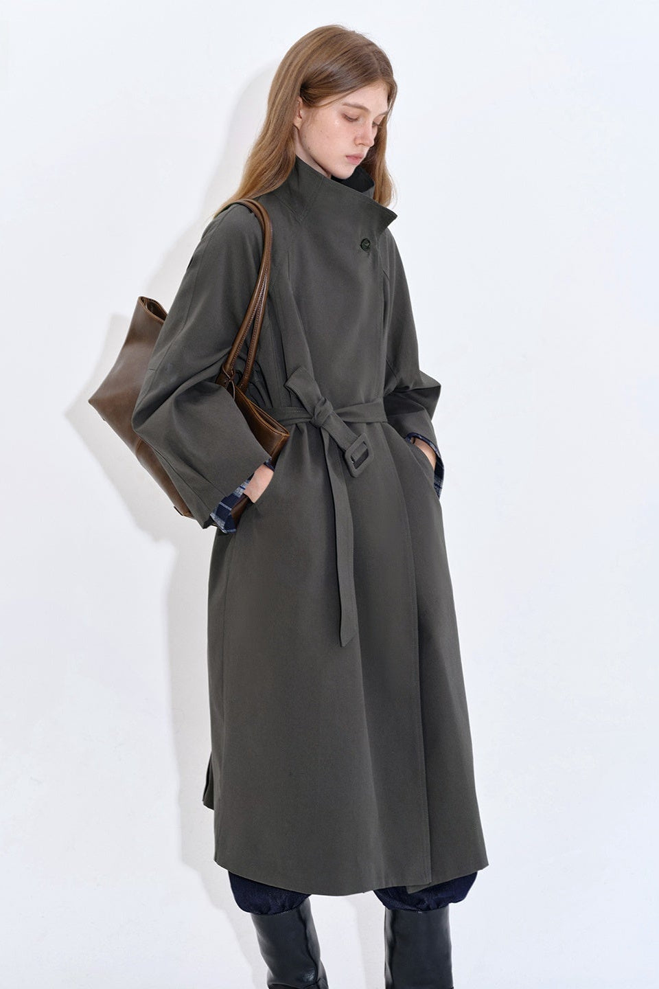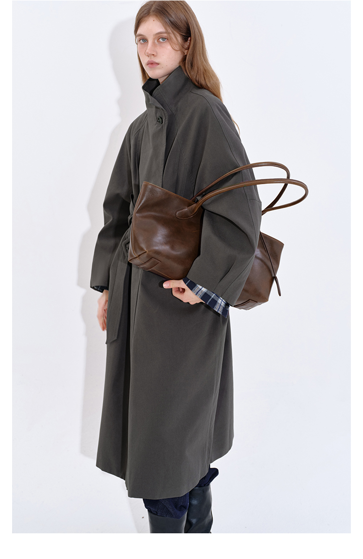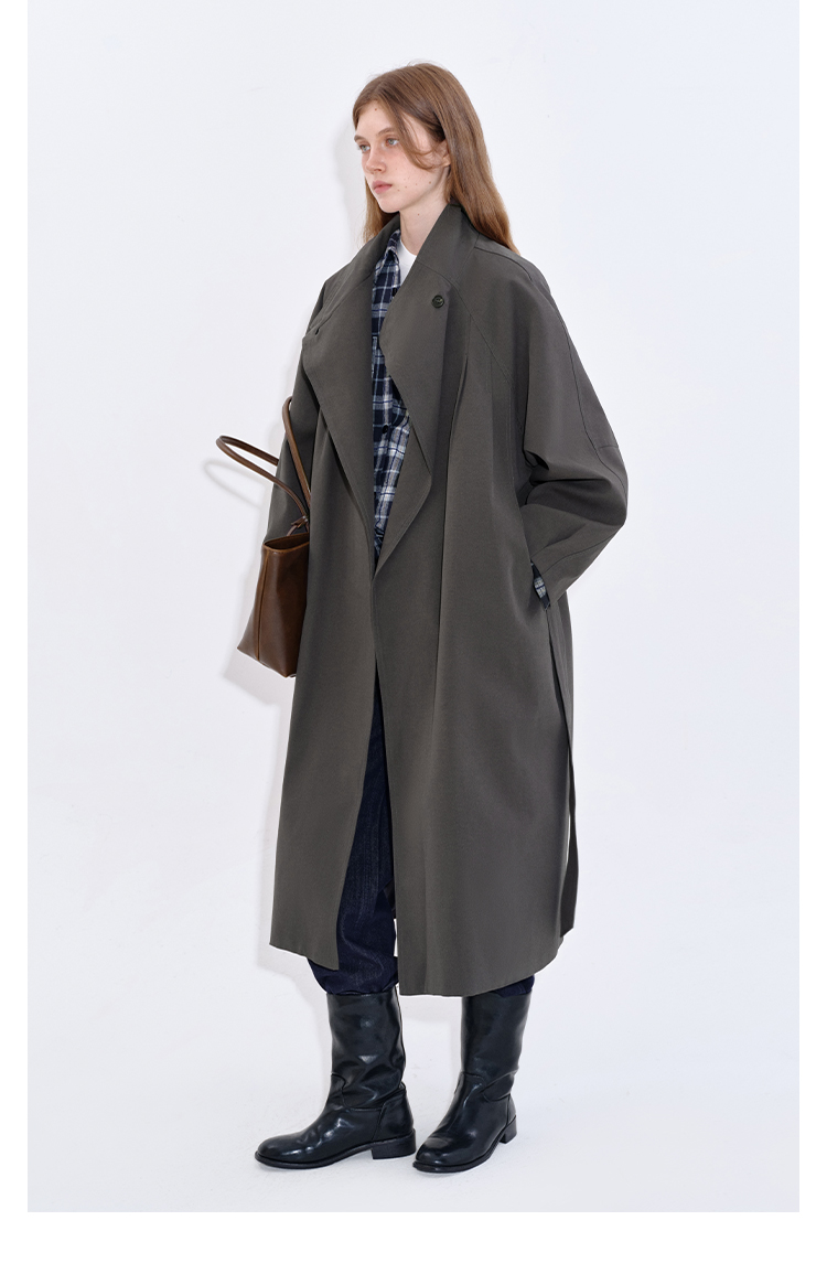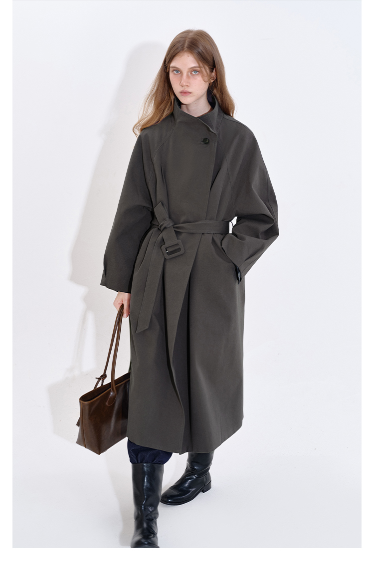 Stand collar long windbreaker coat B4397