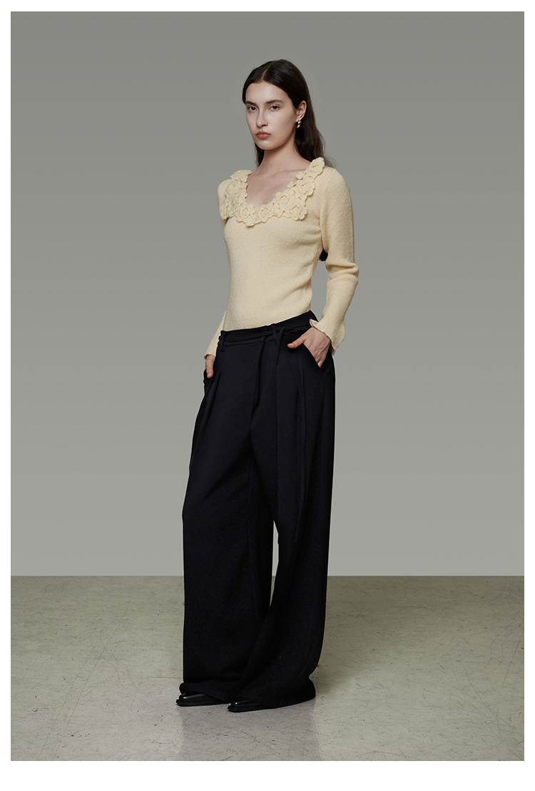 Asymmetrical Placket Slimming Wide Pants B4436