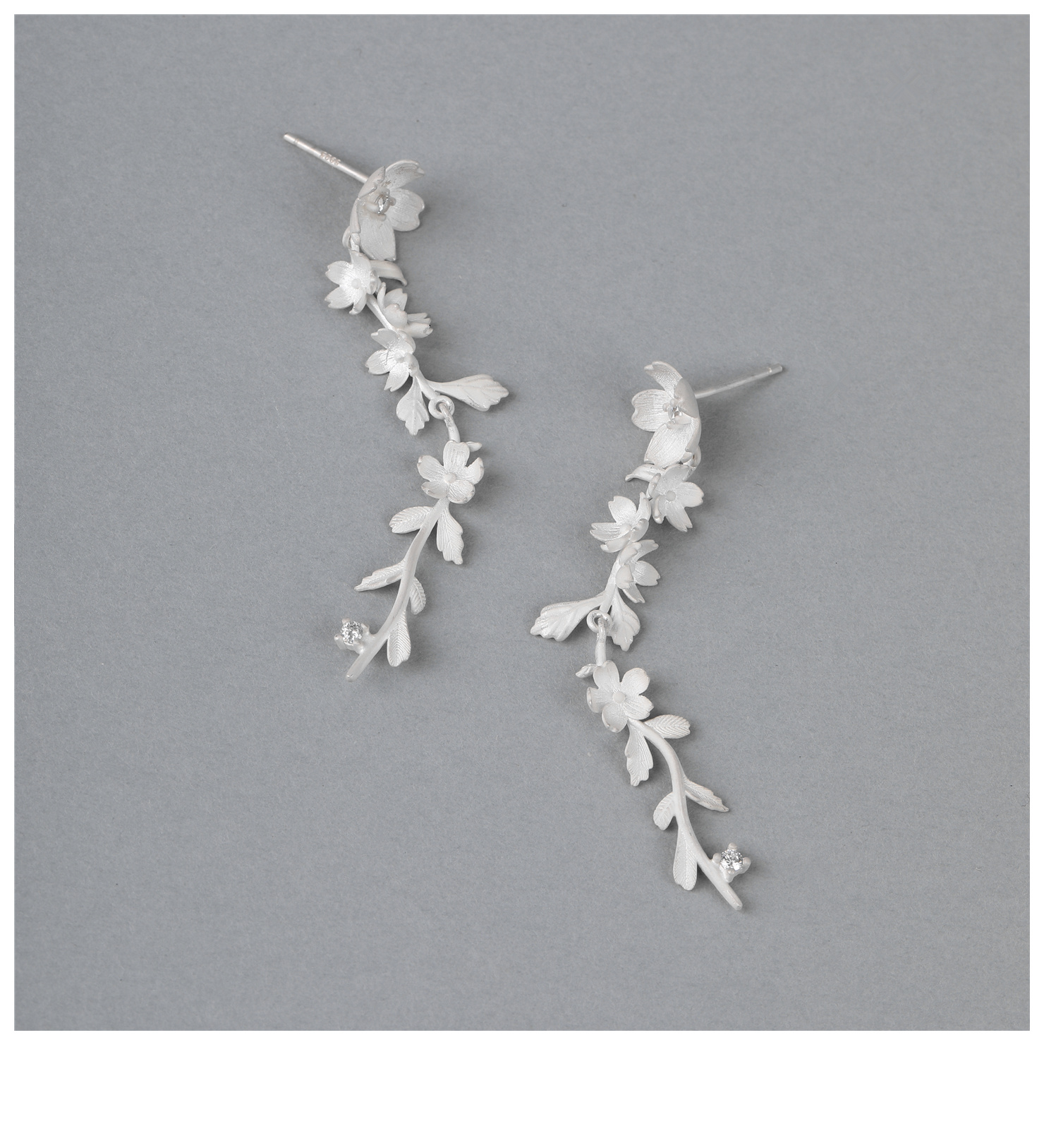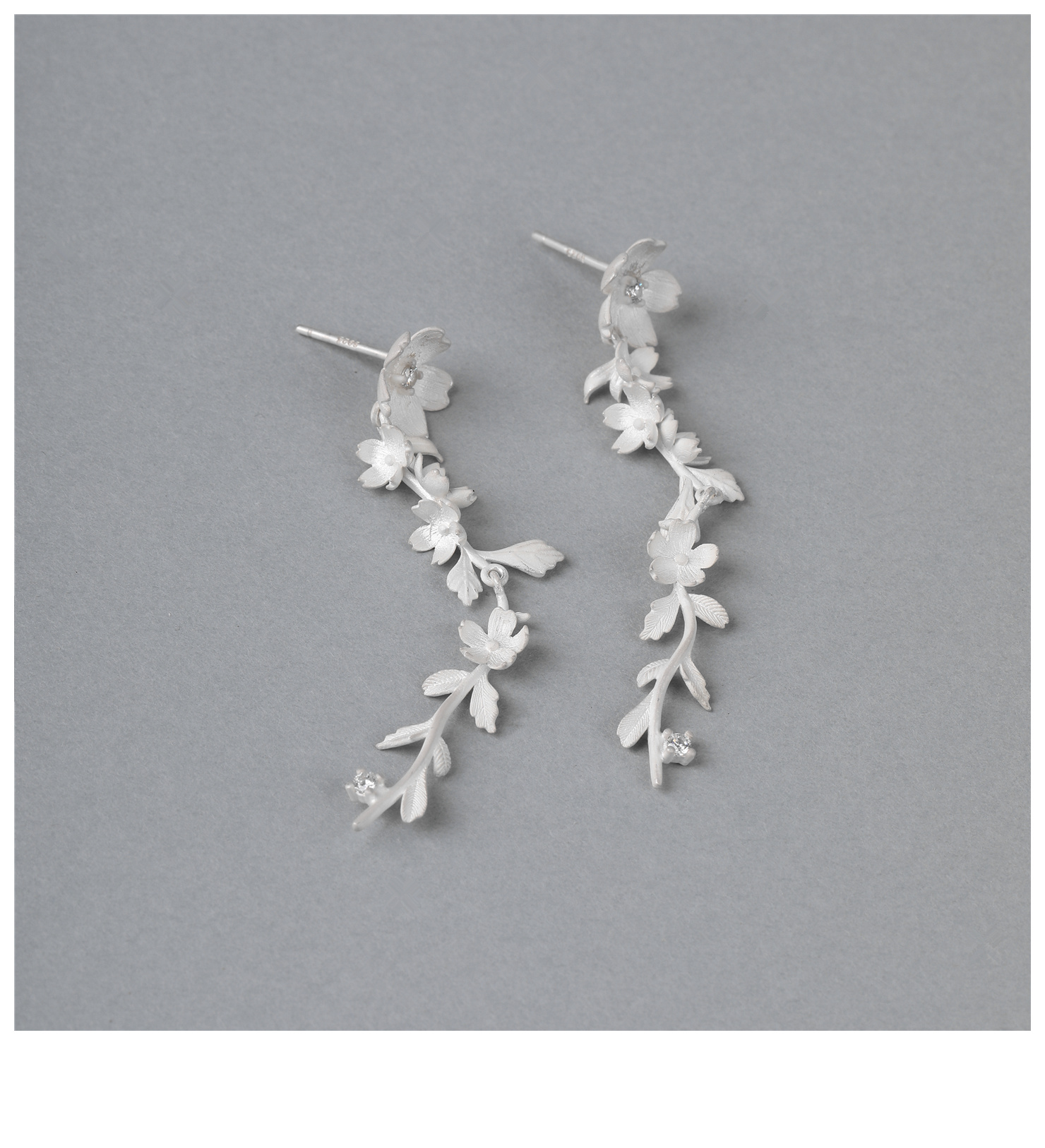 S925 Burnt White Waterfall Vine Flower Earrings B4515