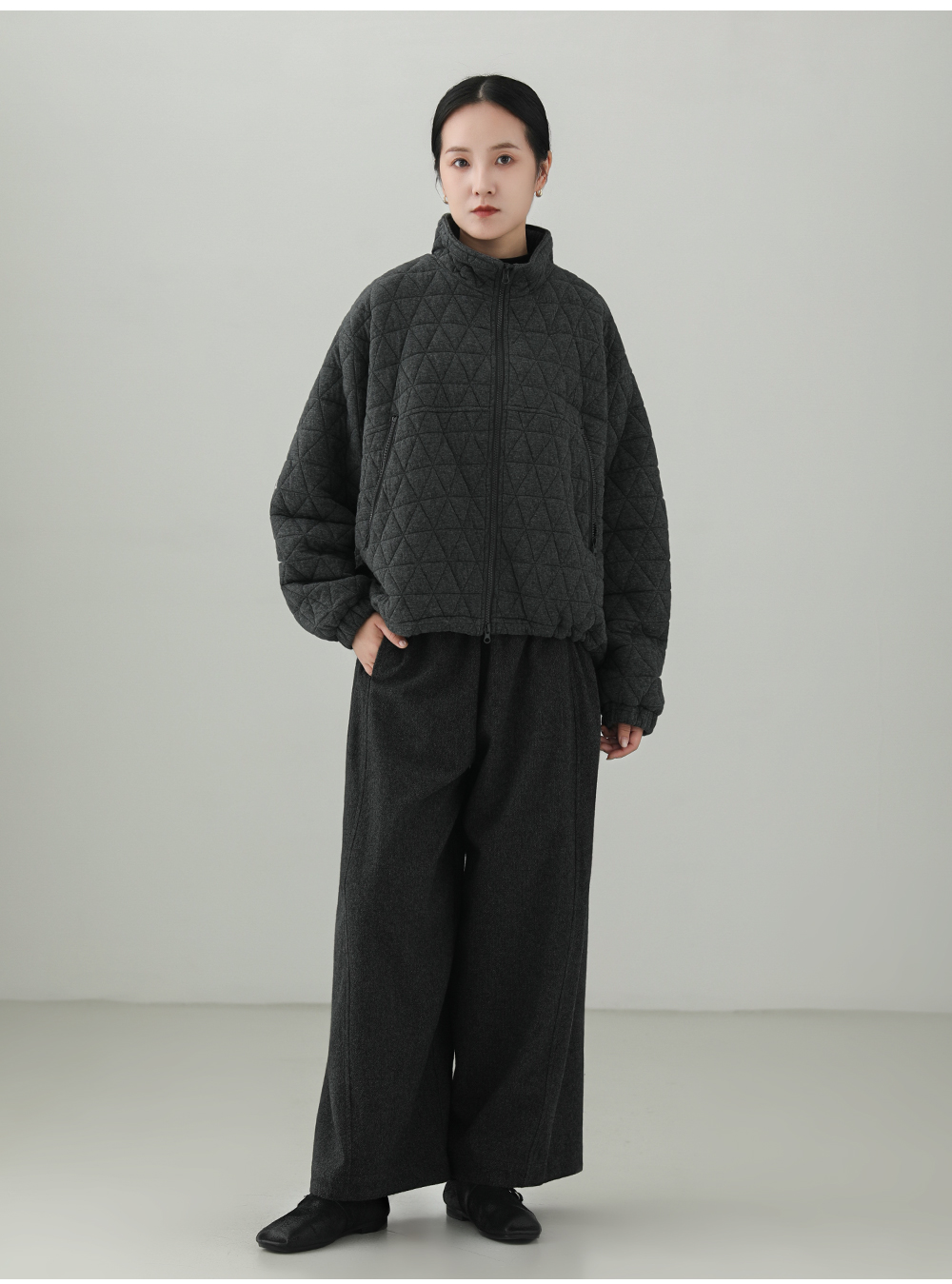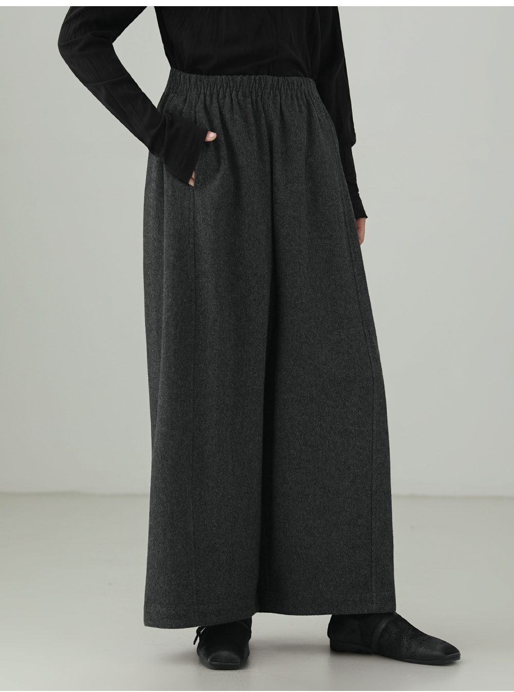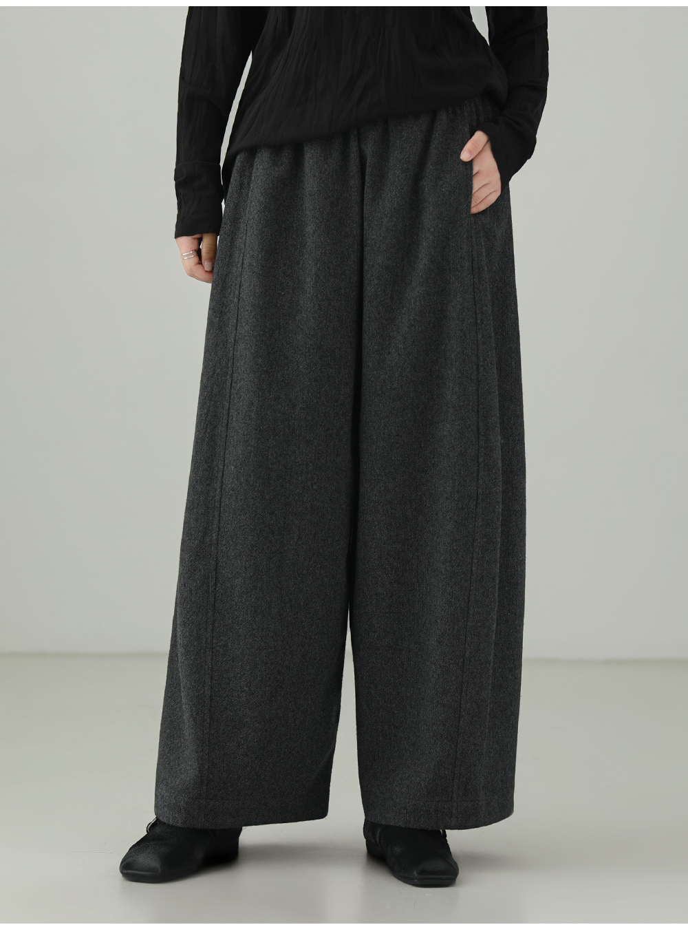 Minimalist wool blend wide pants B4526
