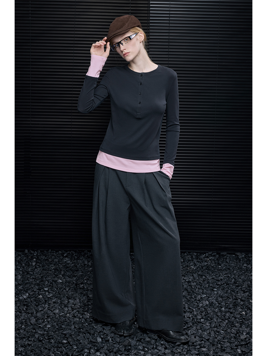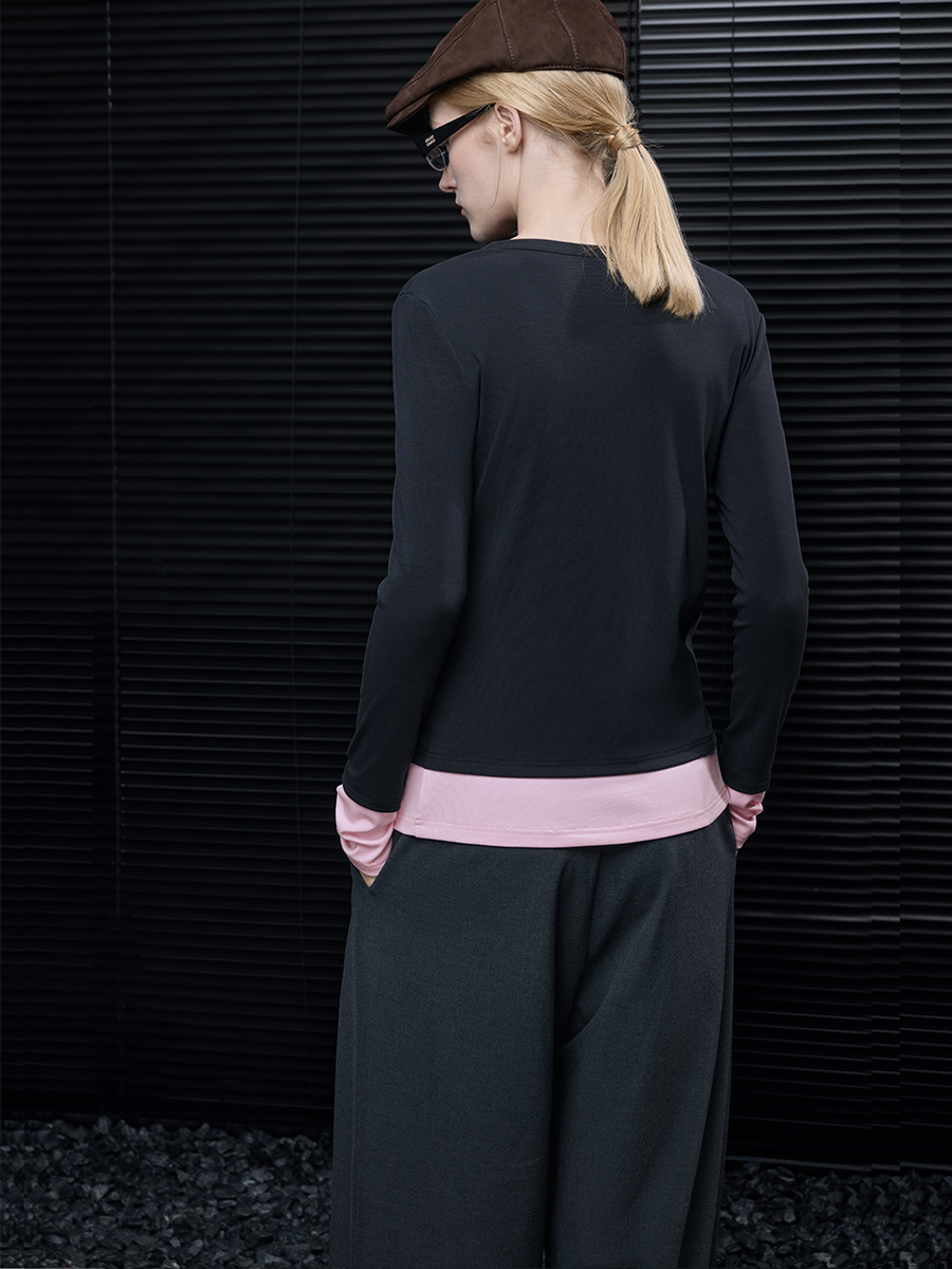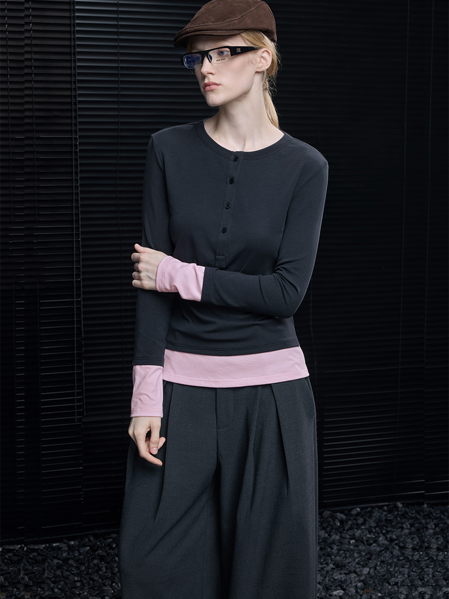 Gray Pink Fake Two-Piece T-Shirt B4551