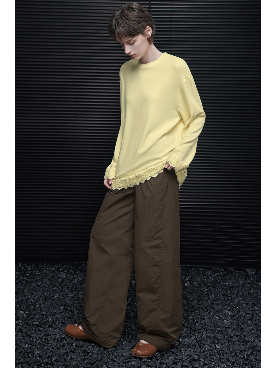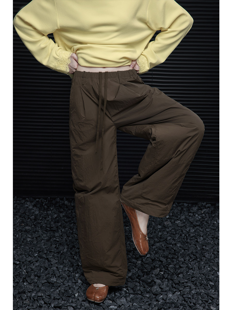 Brown padded wrinkled wide pants B4558