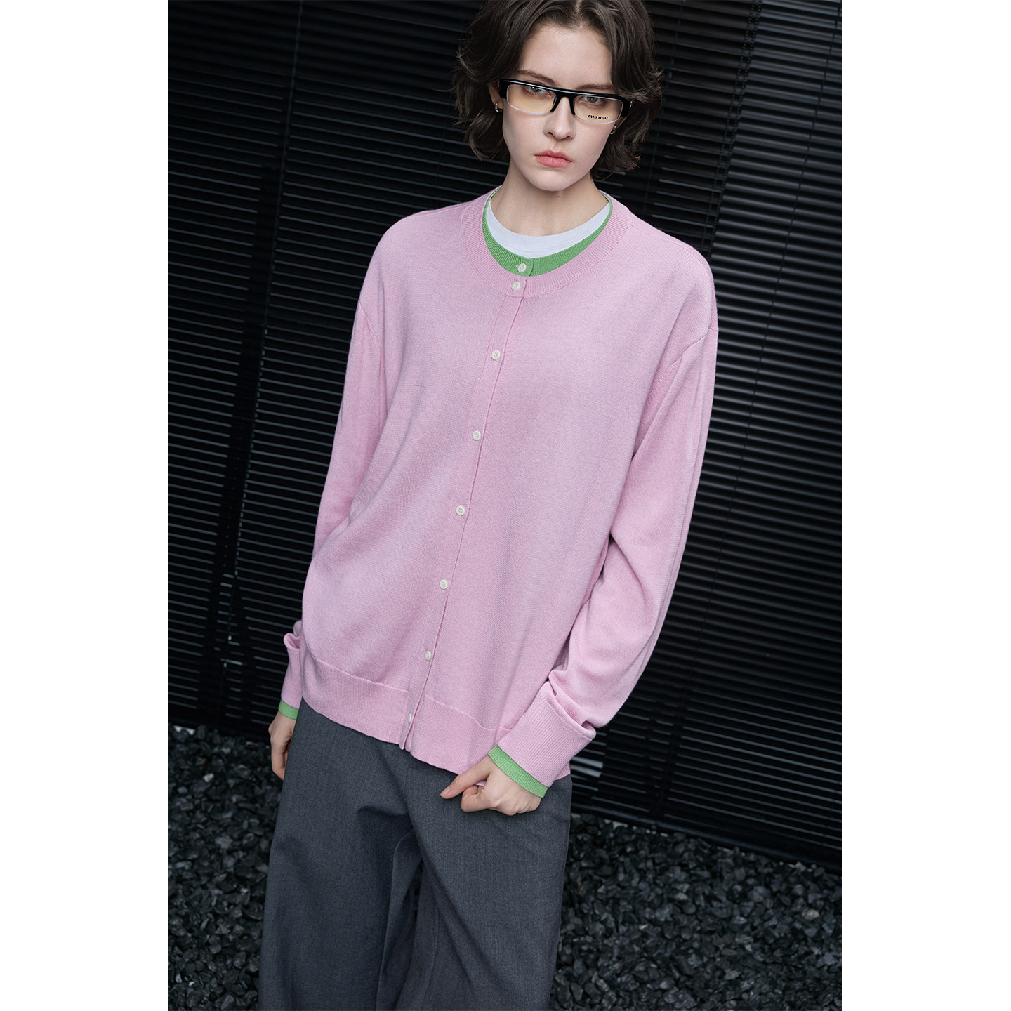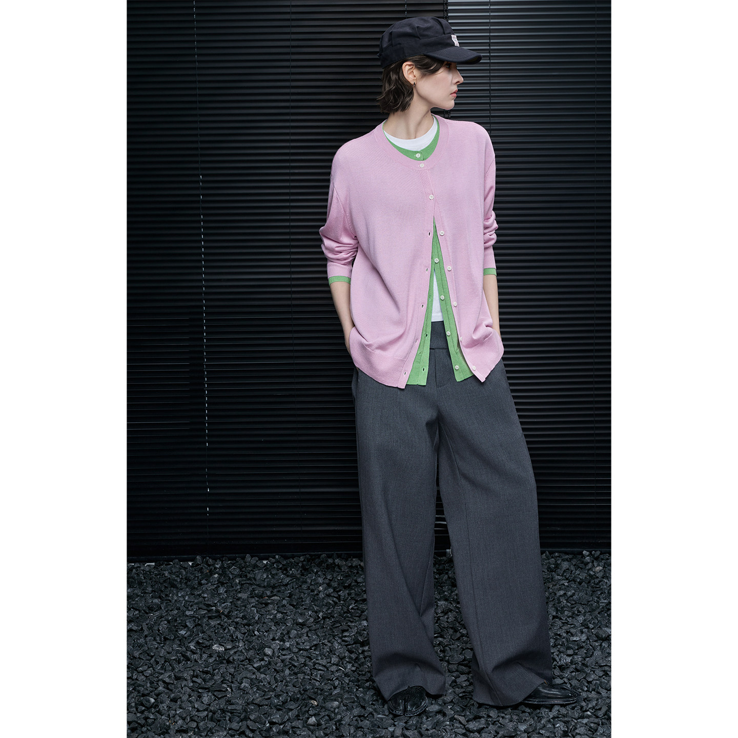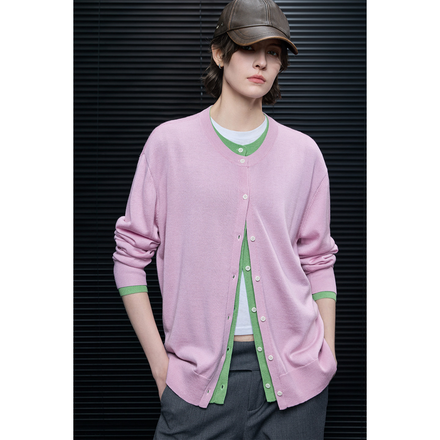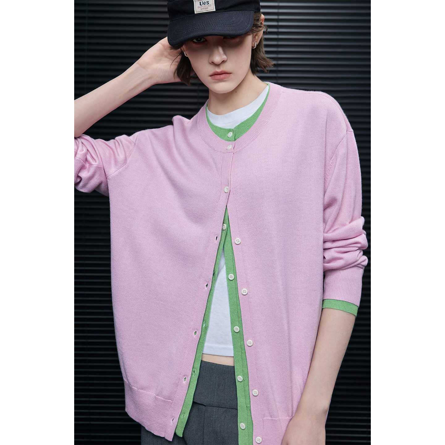 Fake two-piece color block cardigan B4605