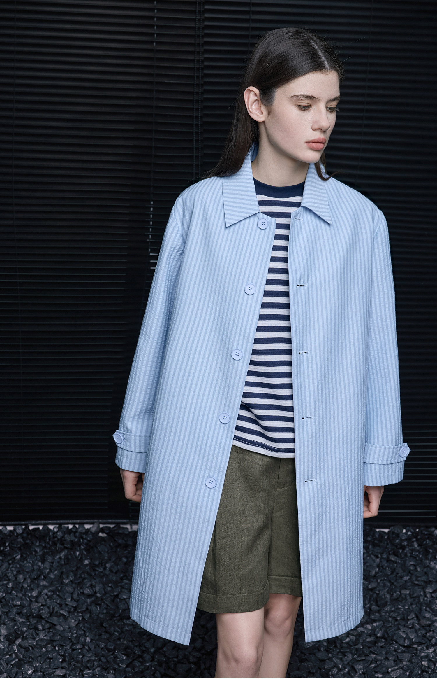 Sax Blue Puff Stripe Mid-Length Coat B4713