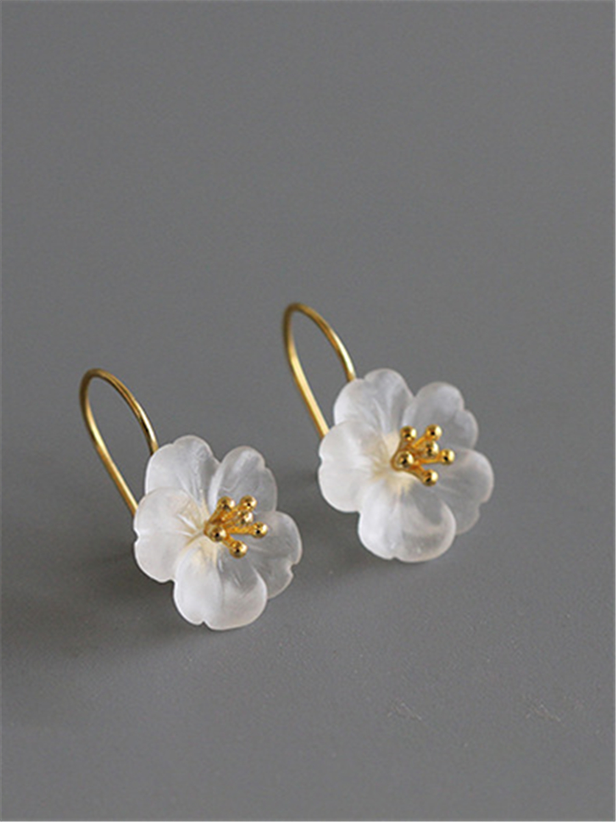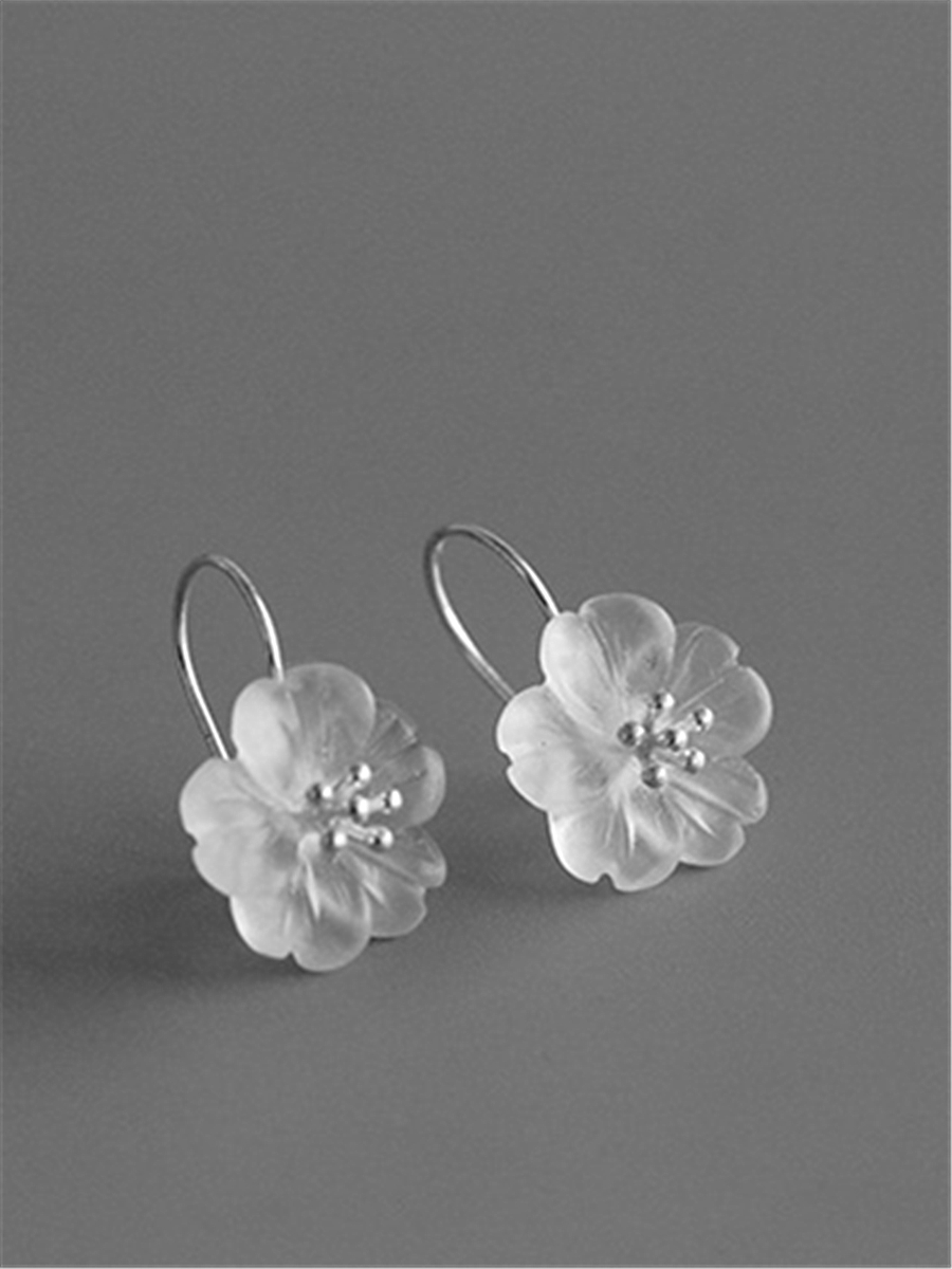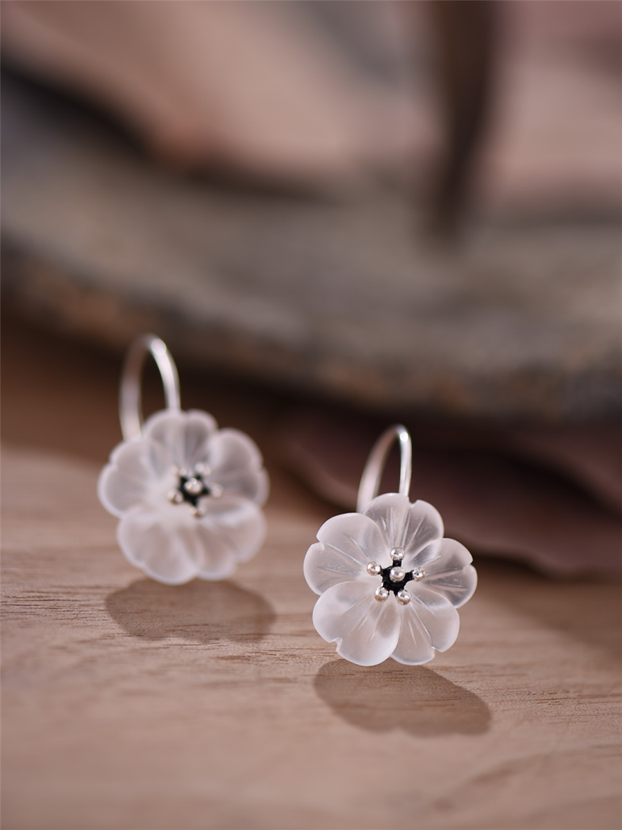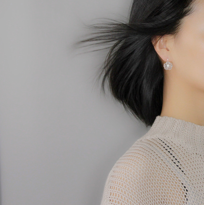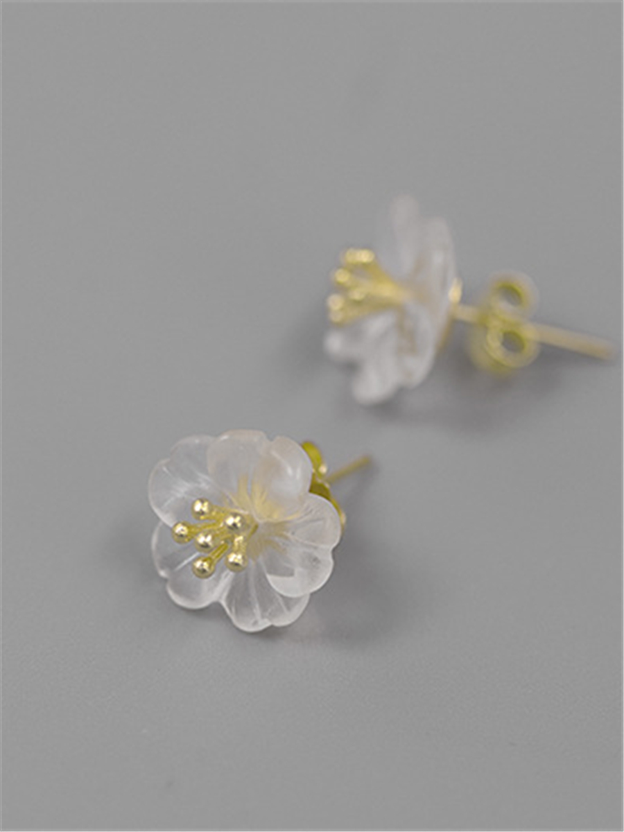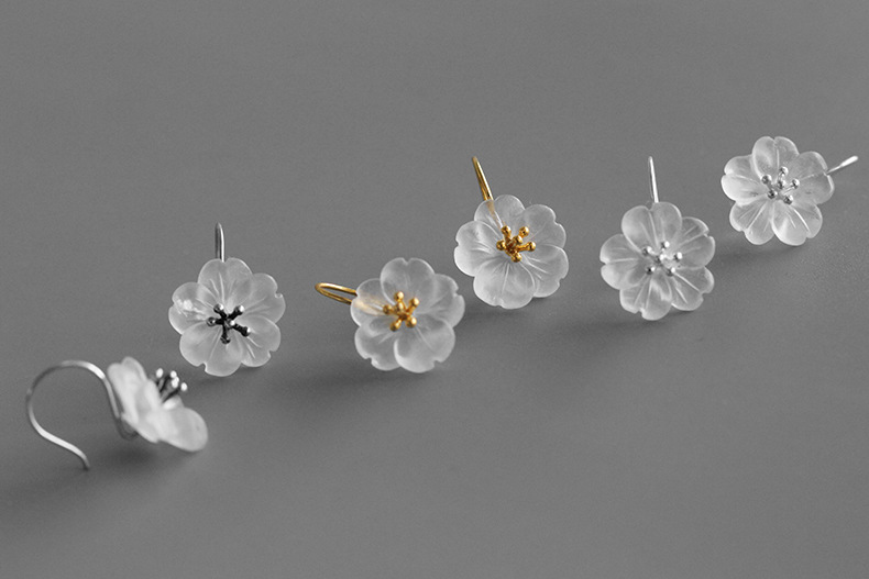 スタッドピアス(手彫りのフロストクリスタルの花)