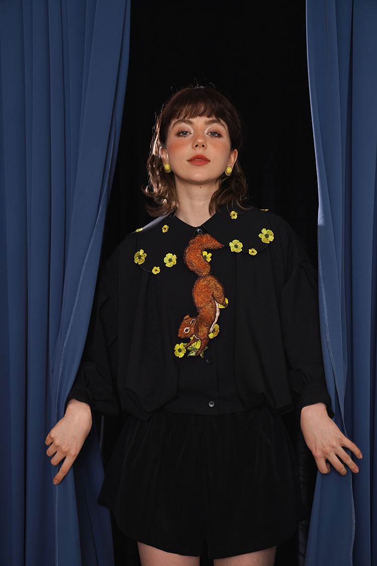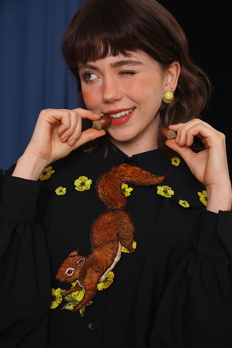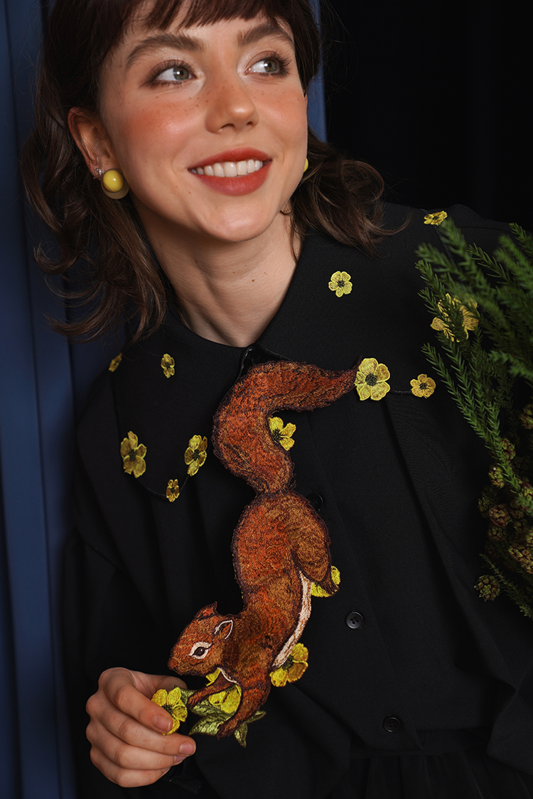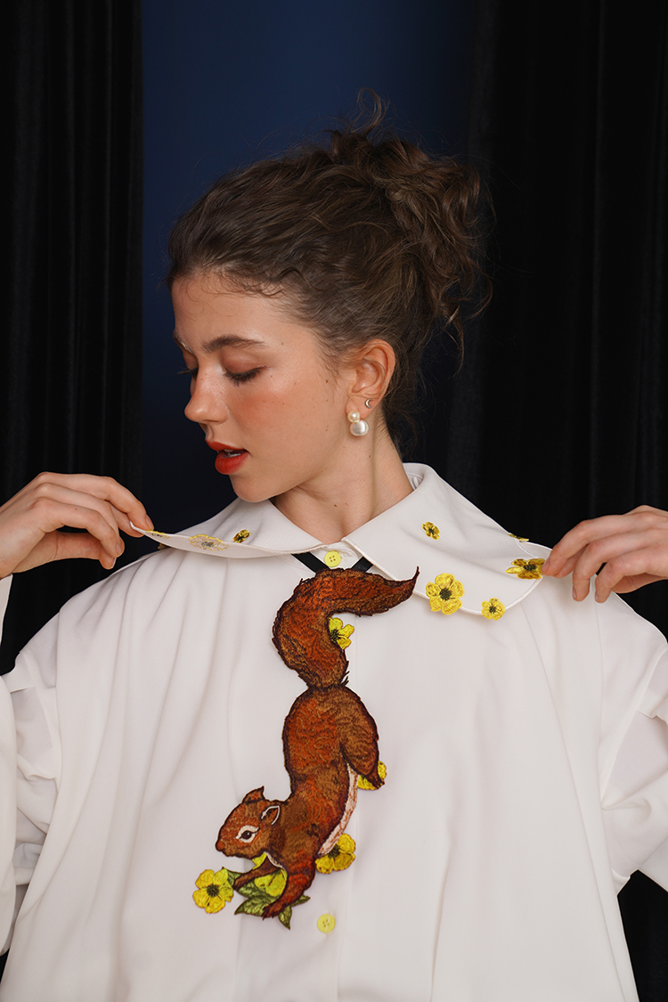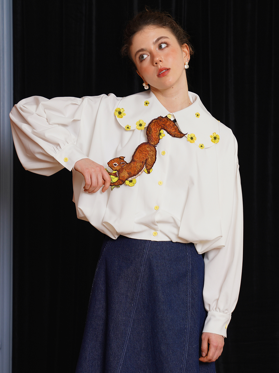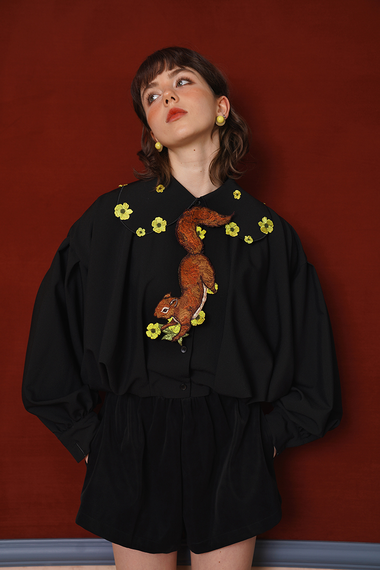 レトロスクイレル&フラワー刺繡ネクタイ B3521