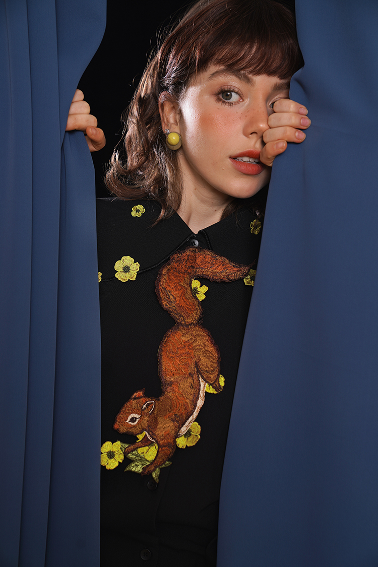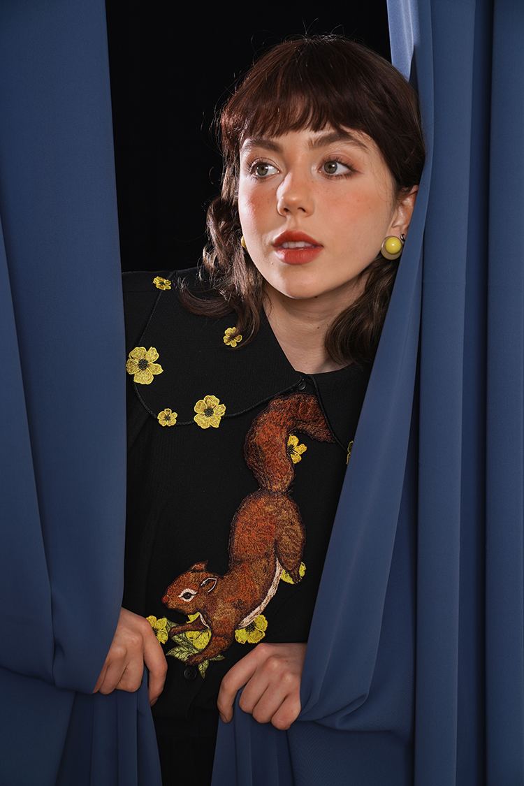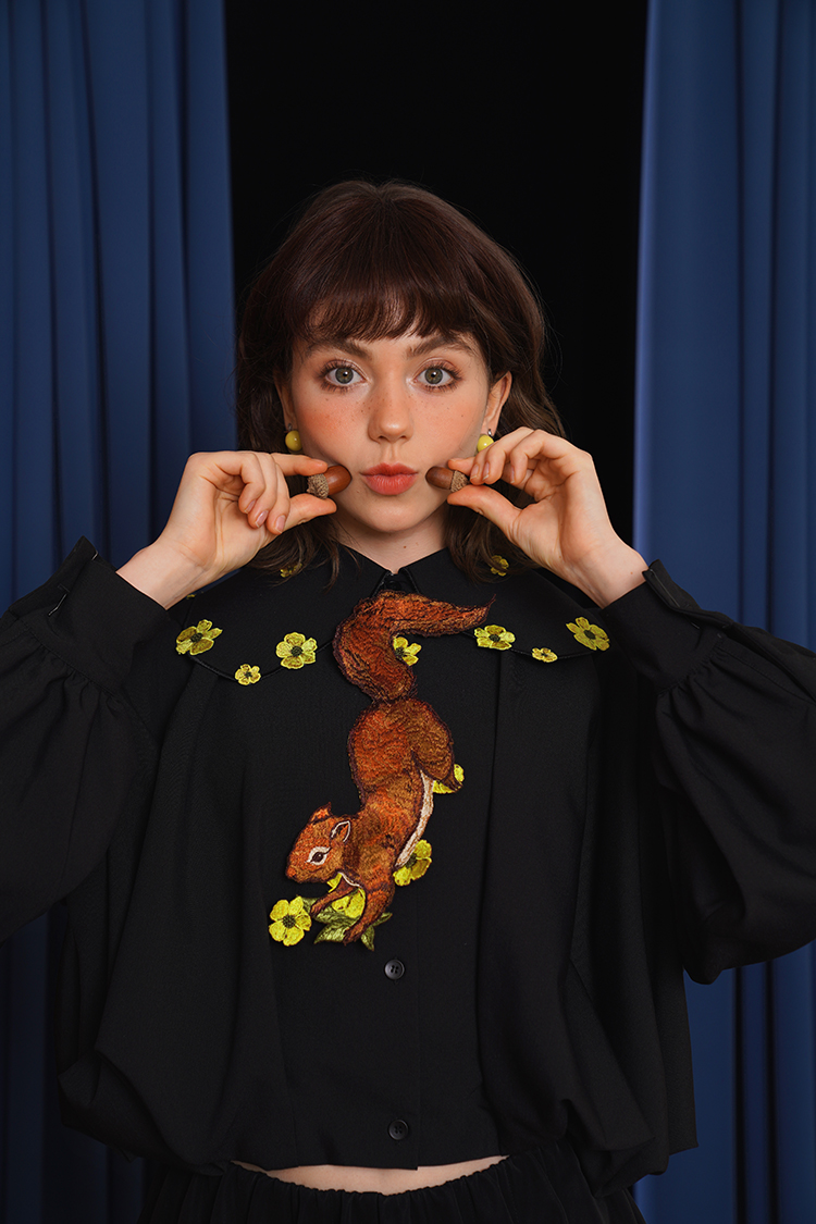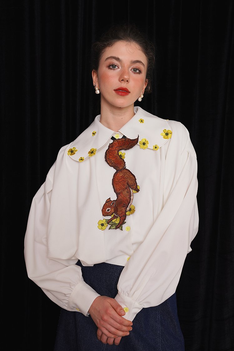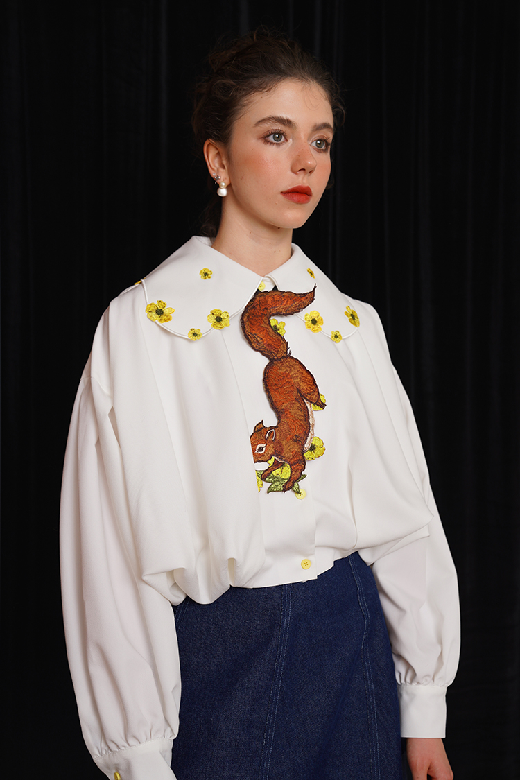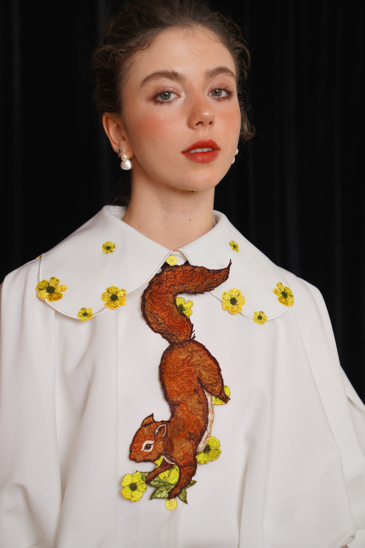 レトロスクイレル&フラワー刺繡ネクタイ B3521