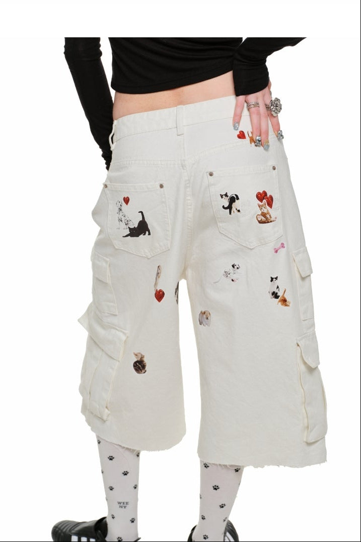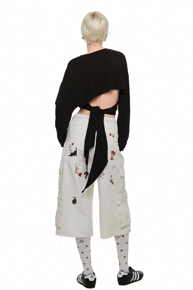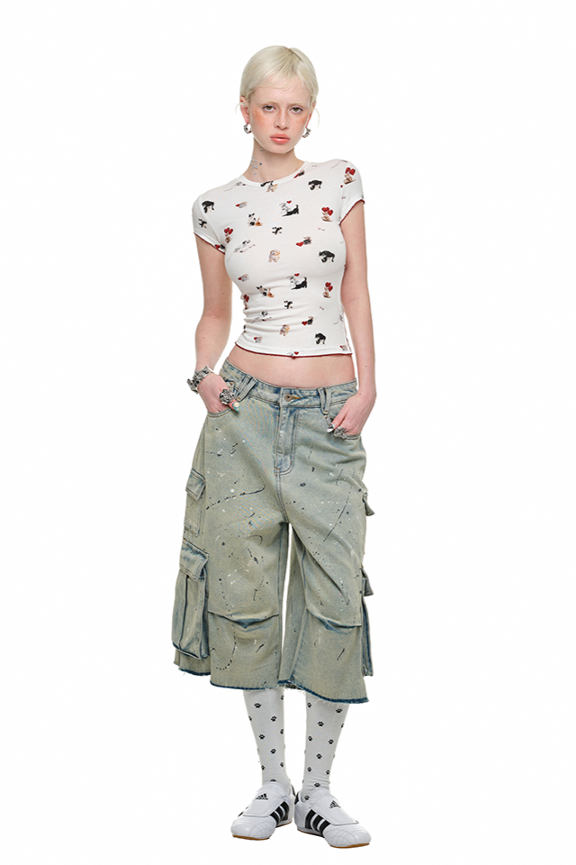 アニマルプリントダメージウオッシュクロップドパンツ B3794