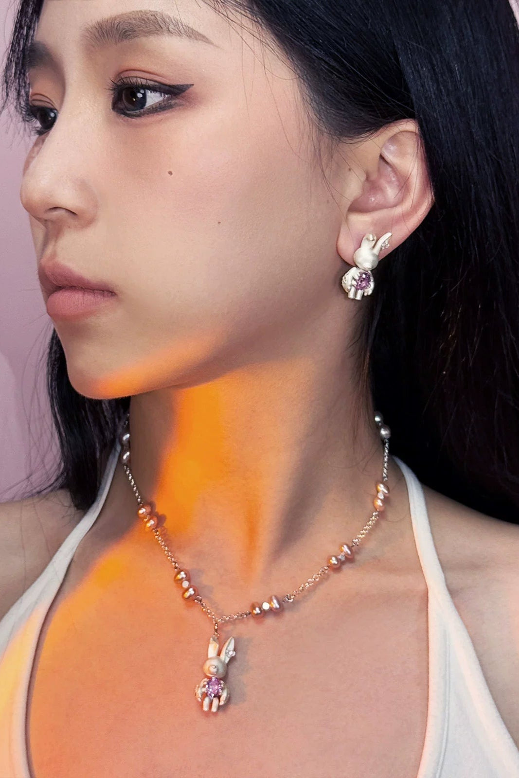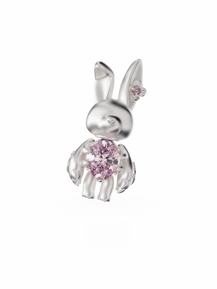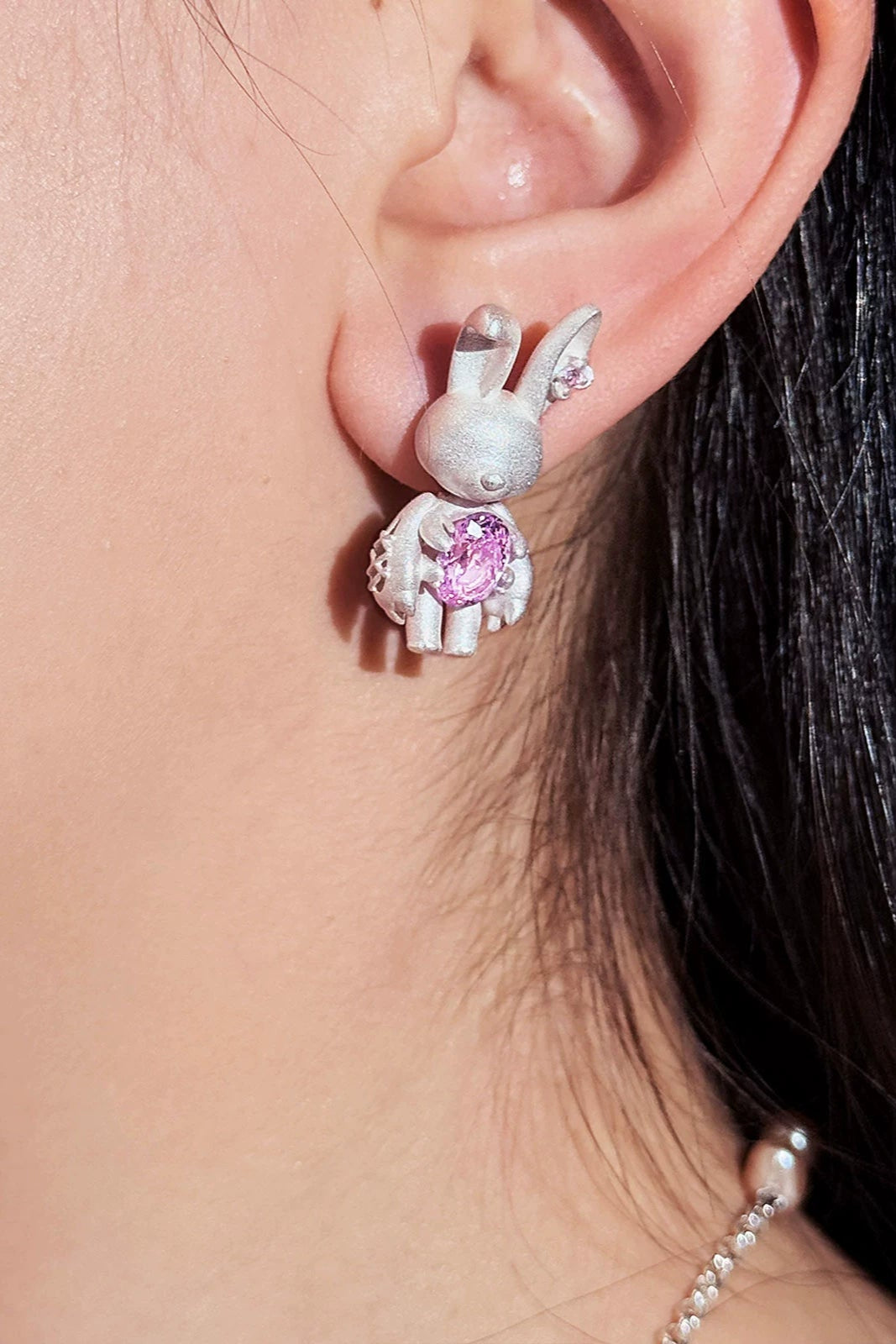 Pink Zircon 925 Silver Rabbit Smacking Stud Earrings(シングル)
