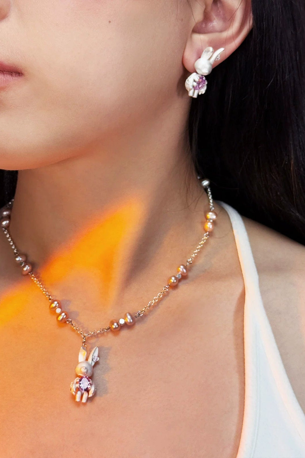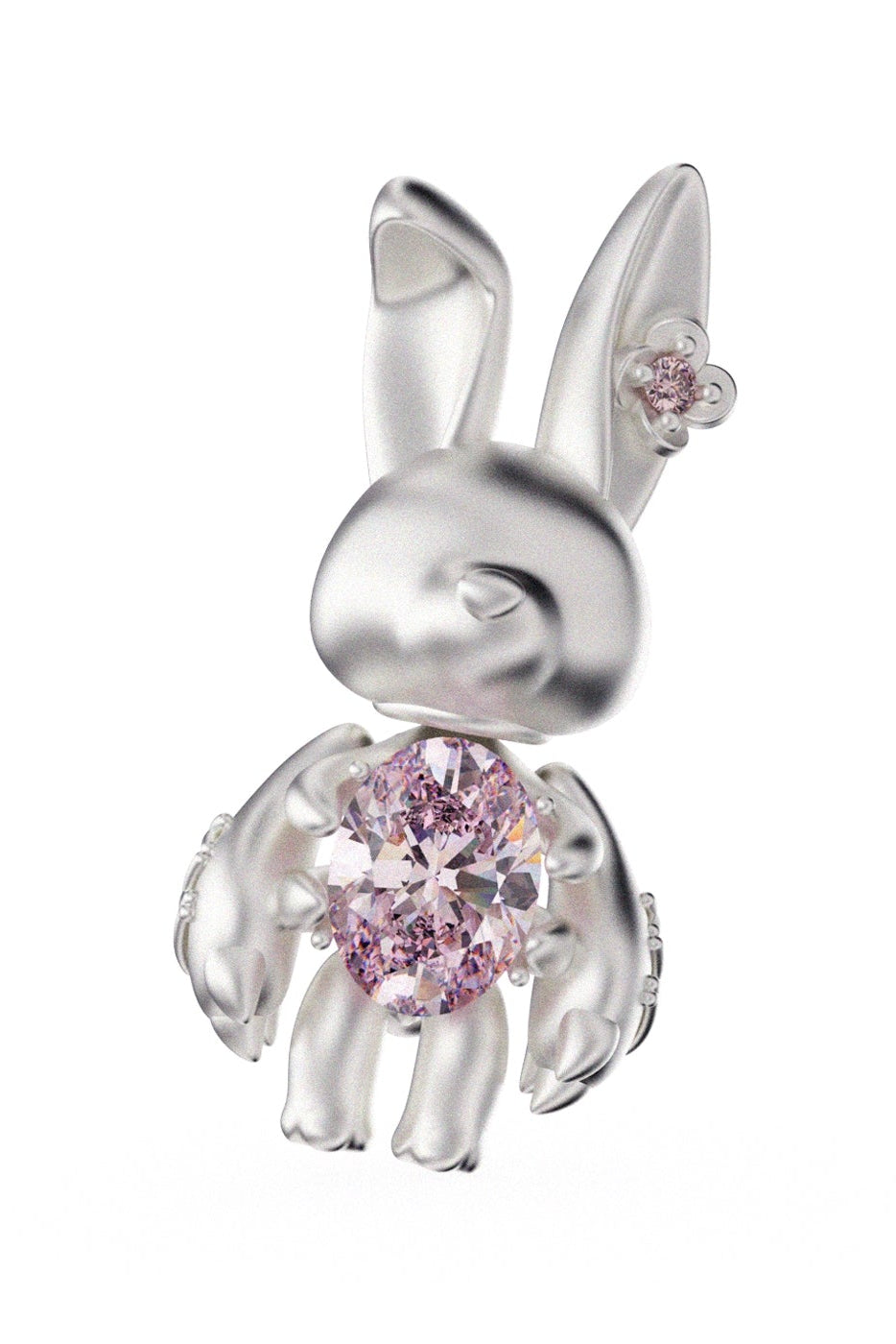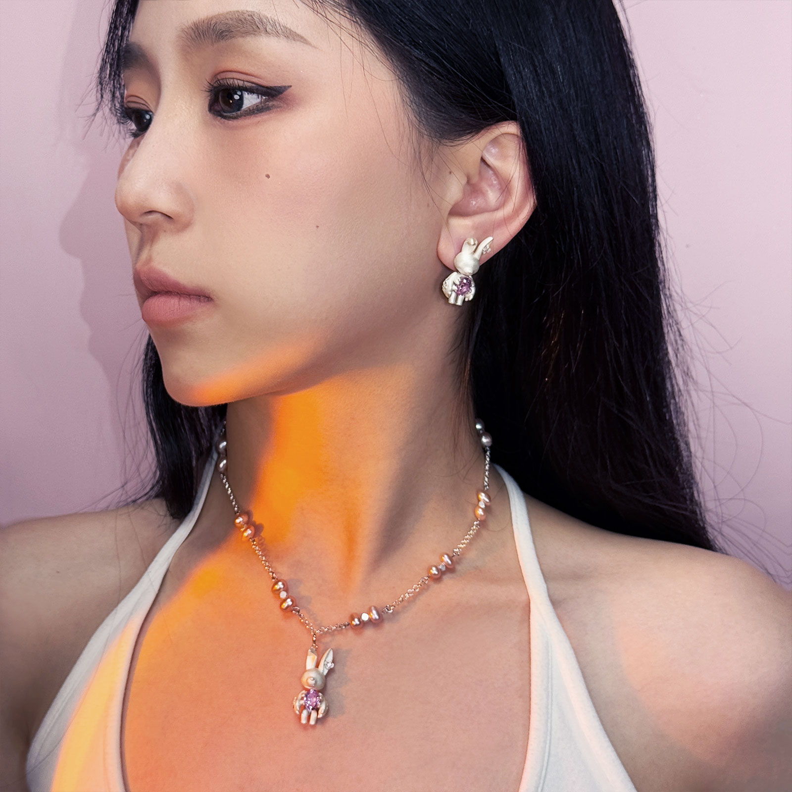 Pink Zircon 925 Silver Rabbit Smacking Stud Earrings(シングル)