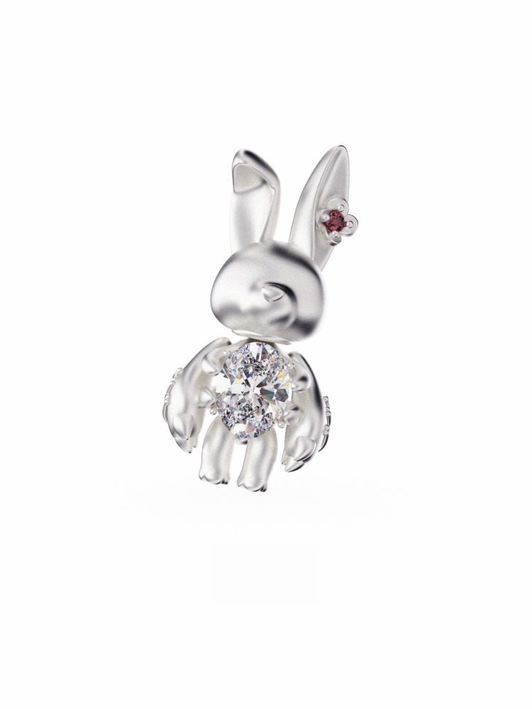 White Zircon 925 Silver Rabbit Smacking Stud Earrings(シングル)