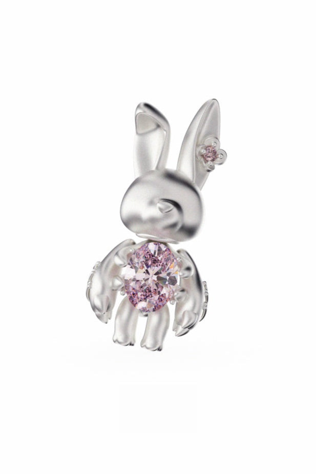 Pink Zircon 925 Silver Rabbit Smacking Ear Clip (シングル)