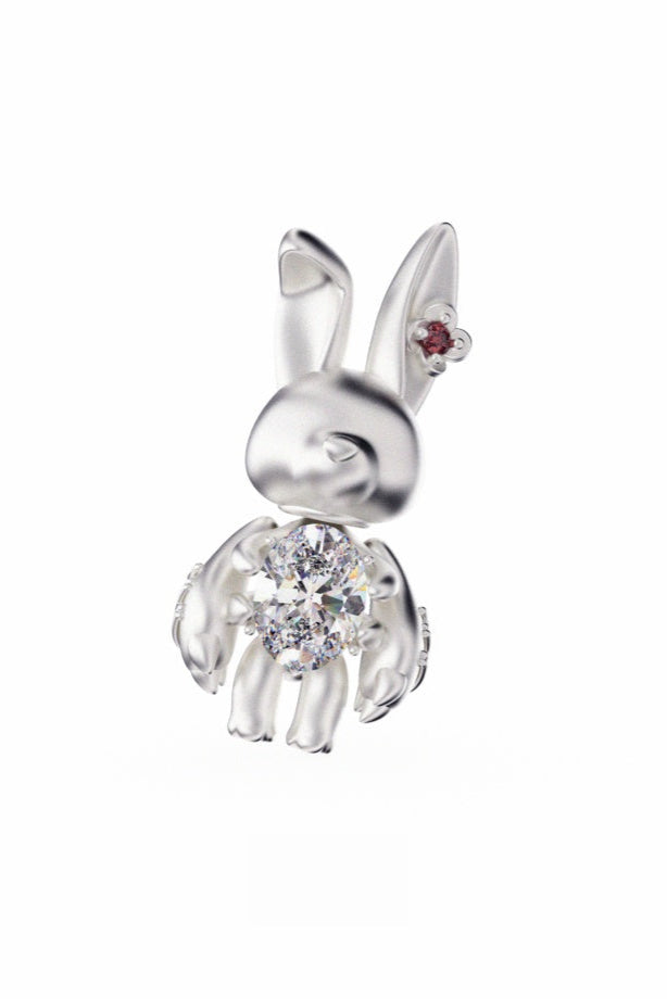 White Zircon 925 Silver Rabbit Smacking Ear Clip (シングル)