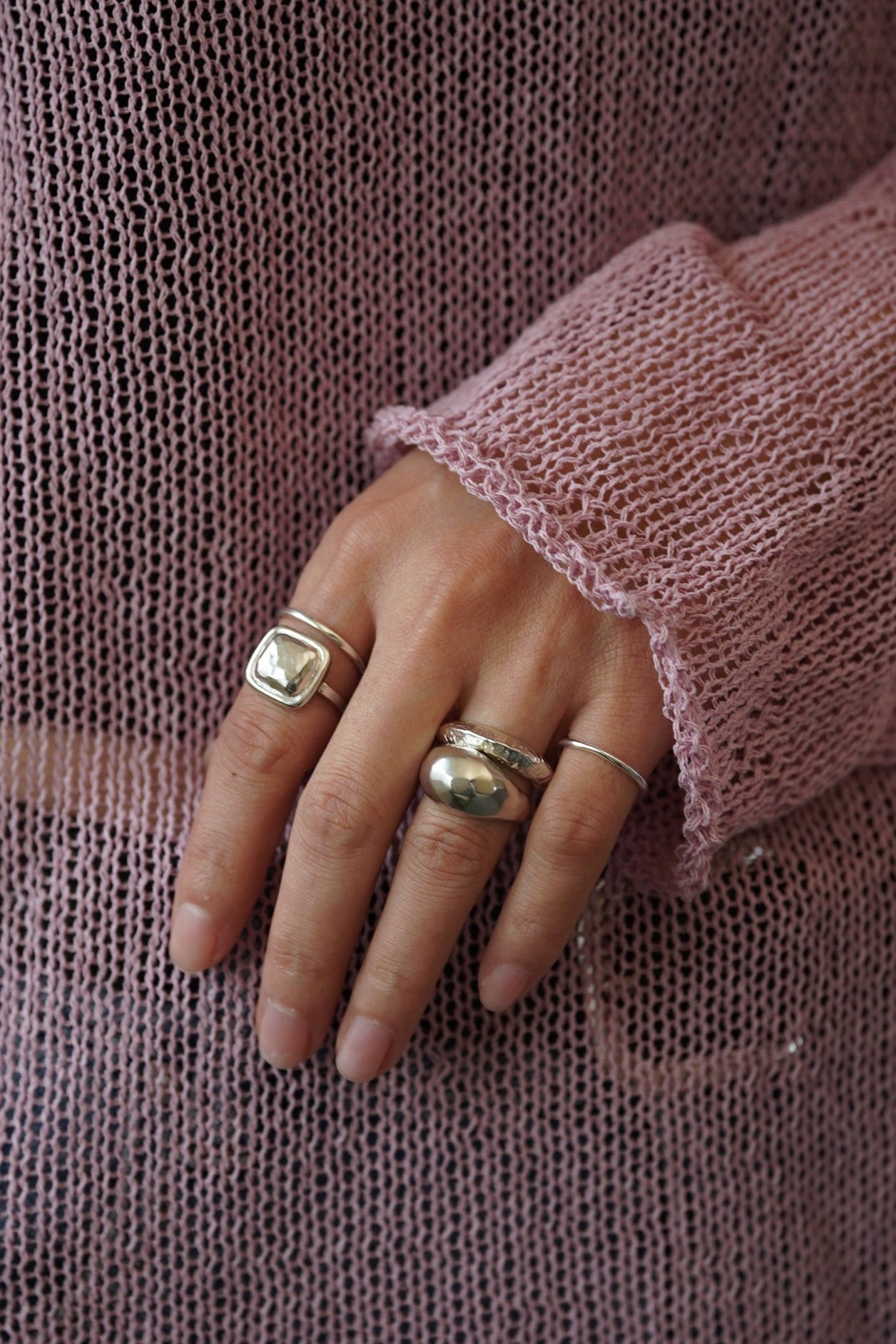 925 Silver Spherical Hammer Ring