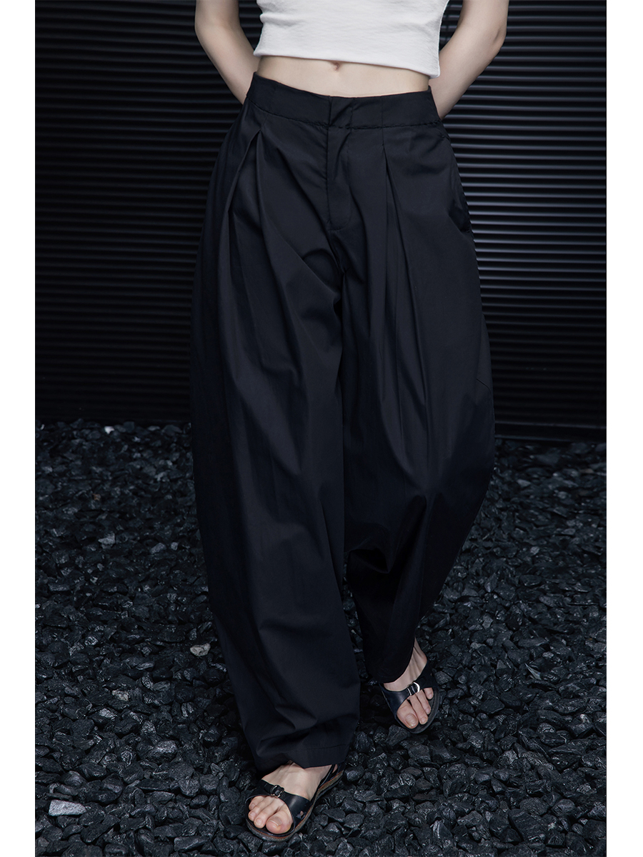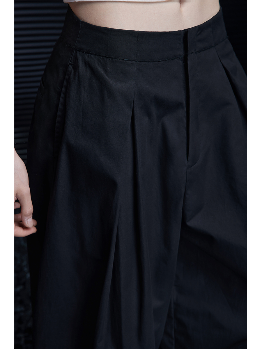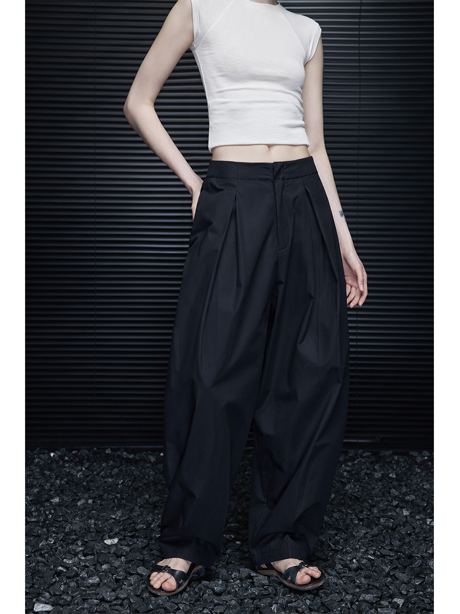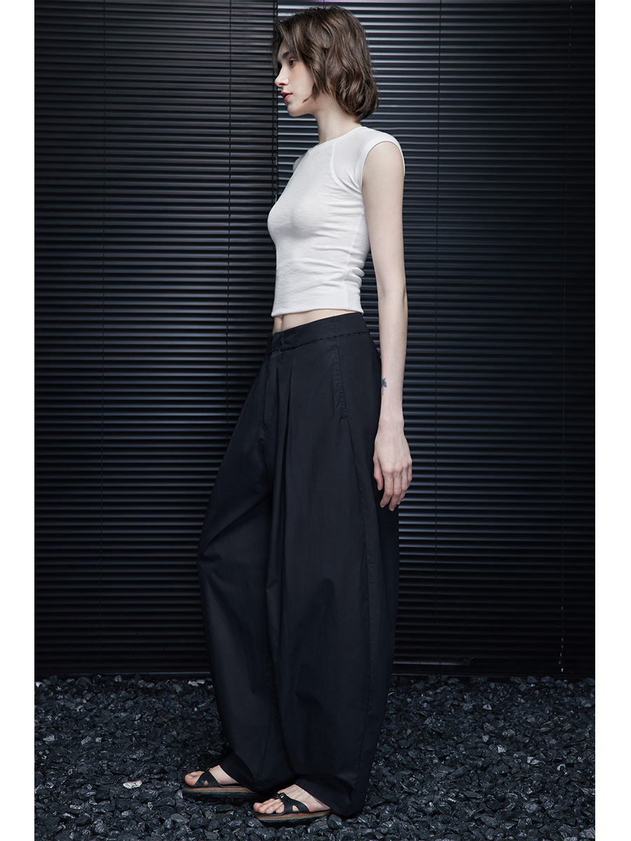 ブラックコットンコクーンタイプルーズハンサムパンツ B4062
