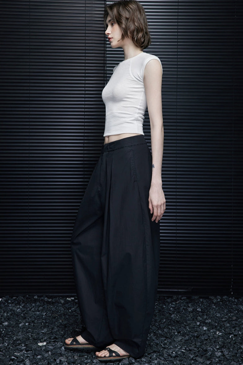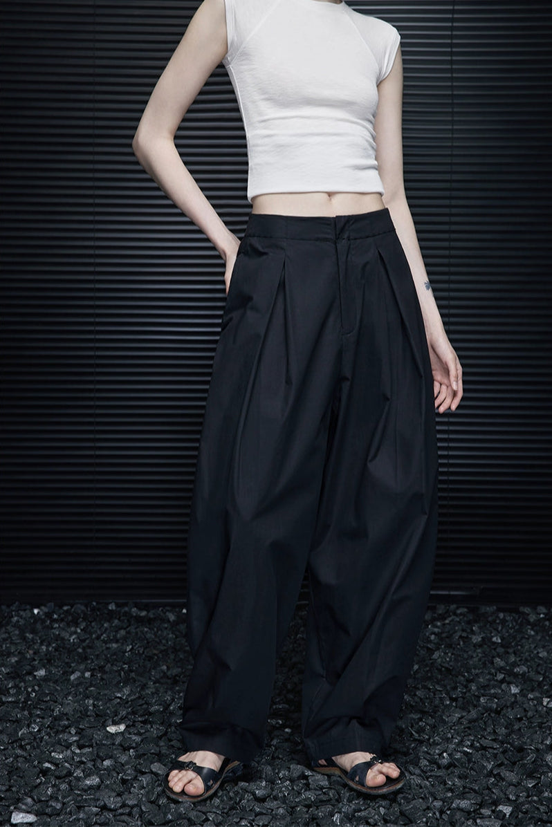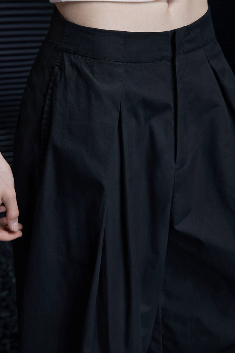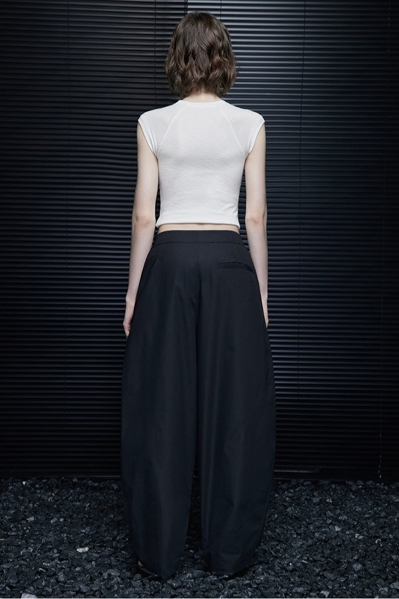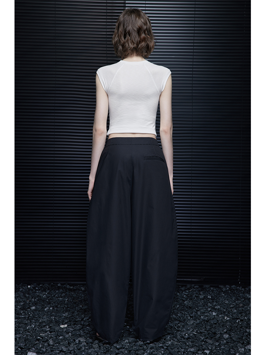 ブラックコットンコクーンタイプルーズハンサムパンツ B4062