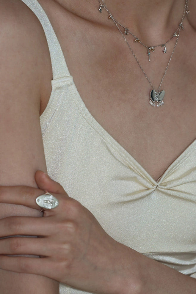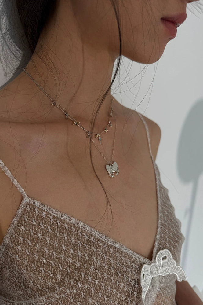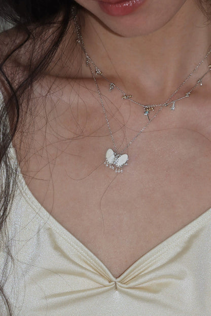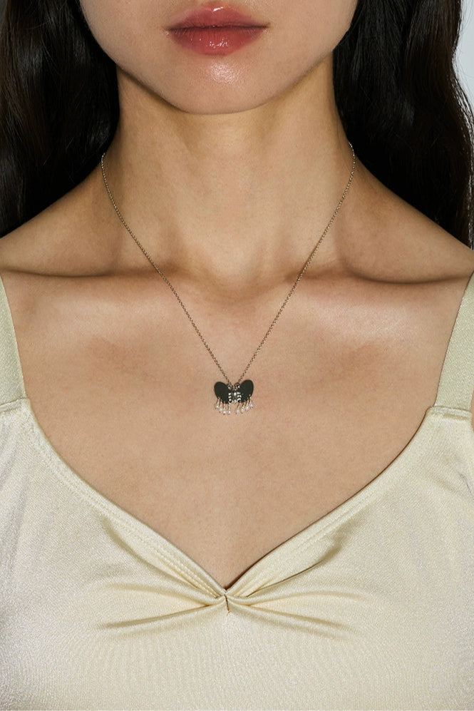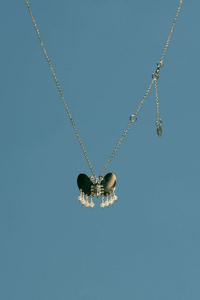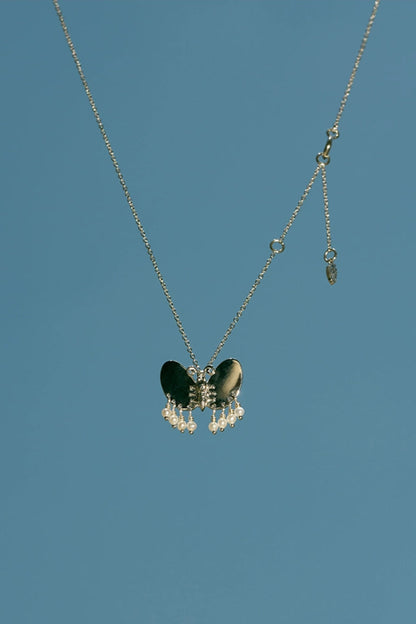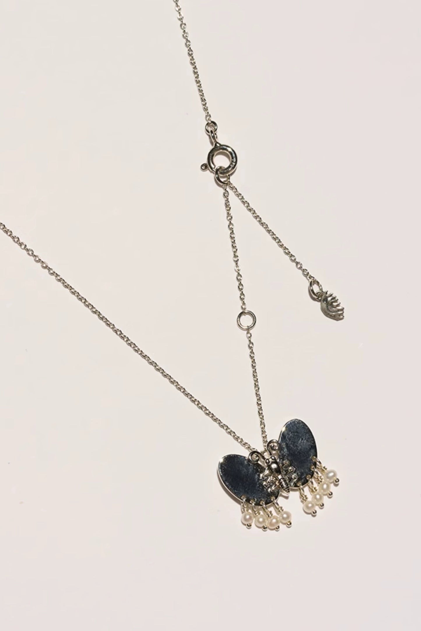 S925シルバーバタフライパールタッセルネックレス(先行販売)