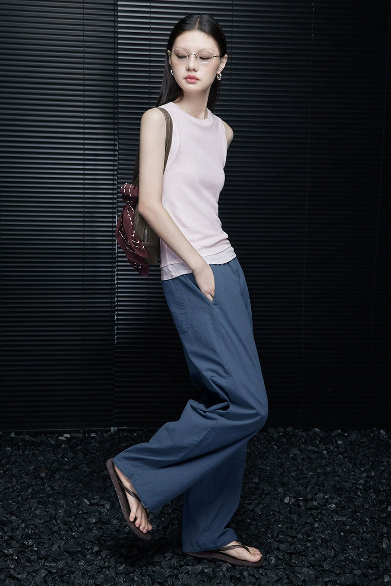 ピンクフェイクツーピースノースリーブニットトップス B4089